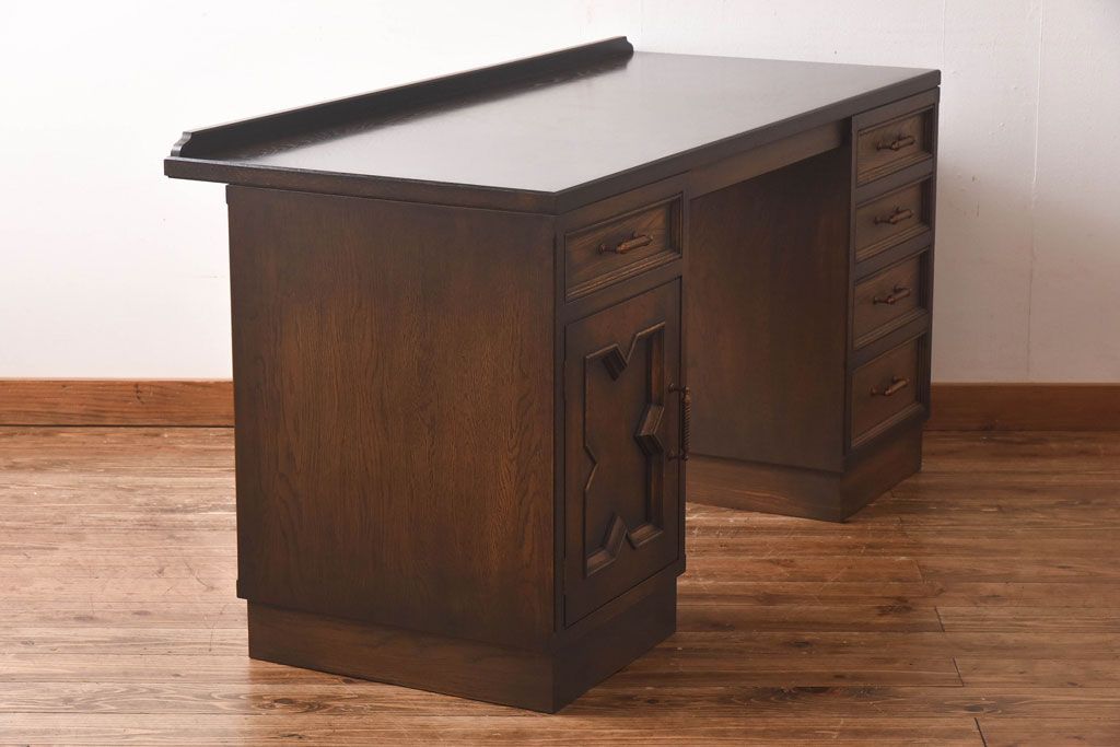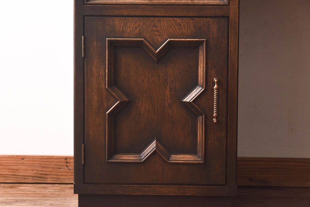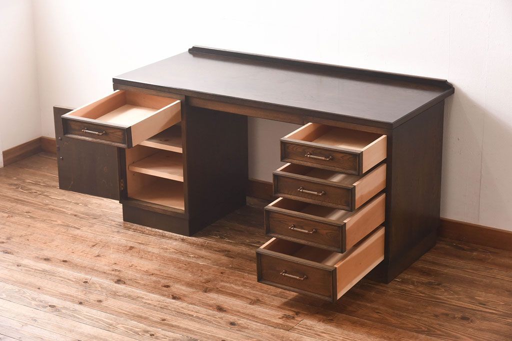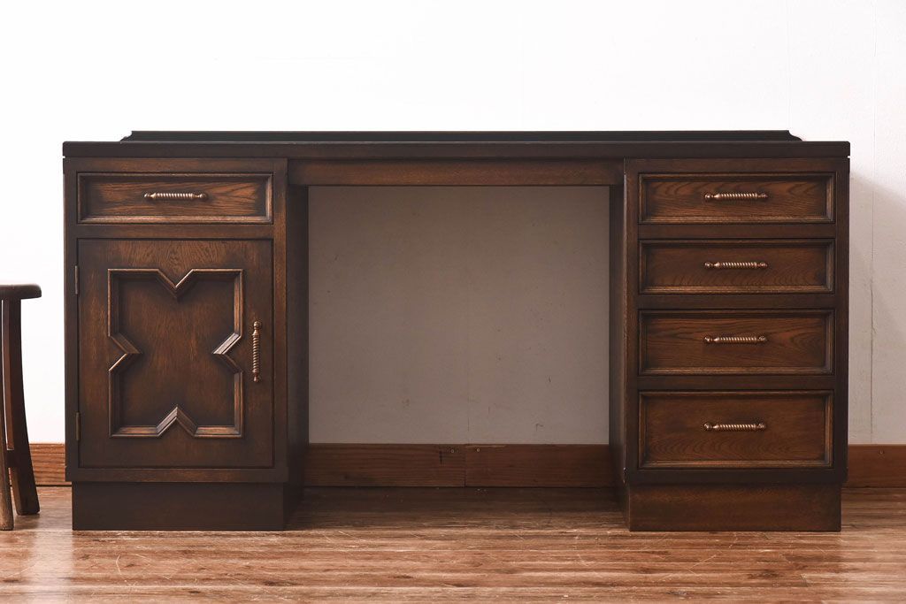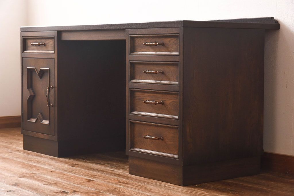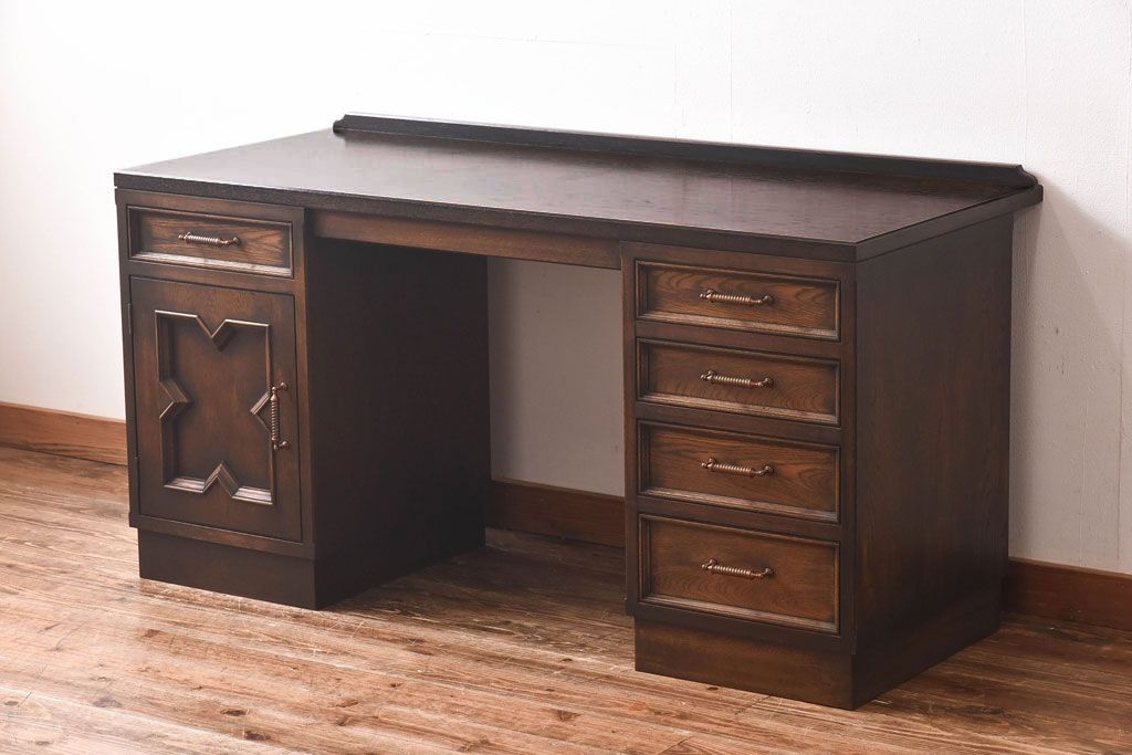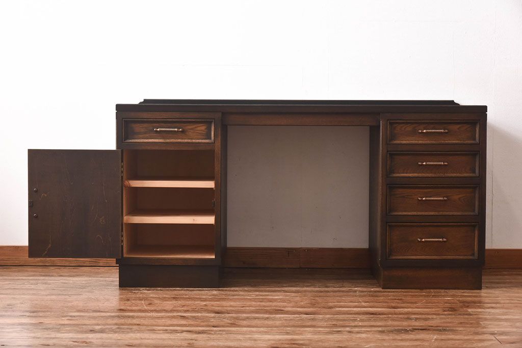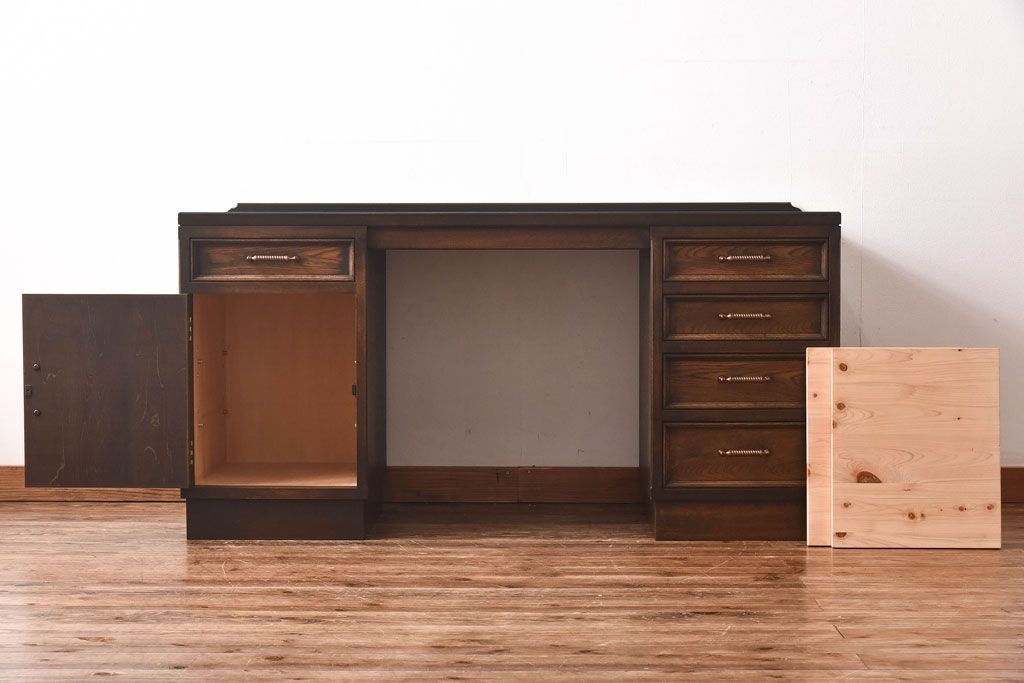 中古 神戸洋家具 永田良介商店 開き戸付きデスク(両袖机、在宅ワーク、在宅用ワークデスク)