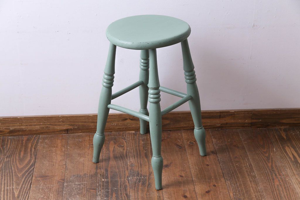 アンティーク家具 イギリスアンティーク ナチュラルテイストにぴったりなペイントスツール(花台)(2)