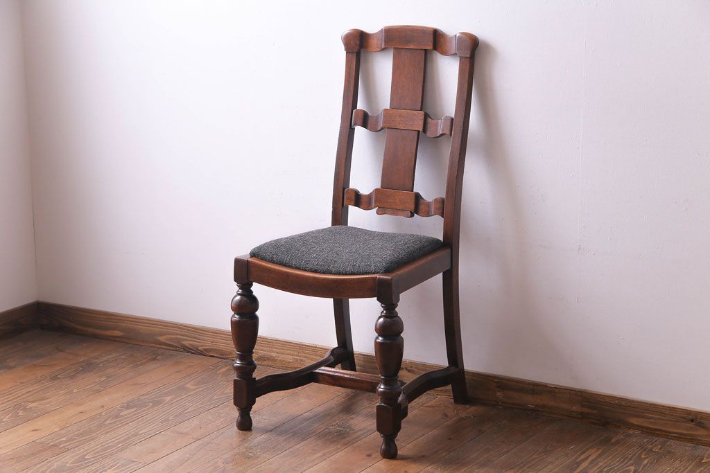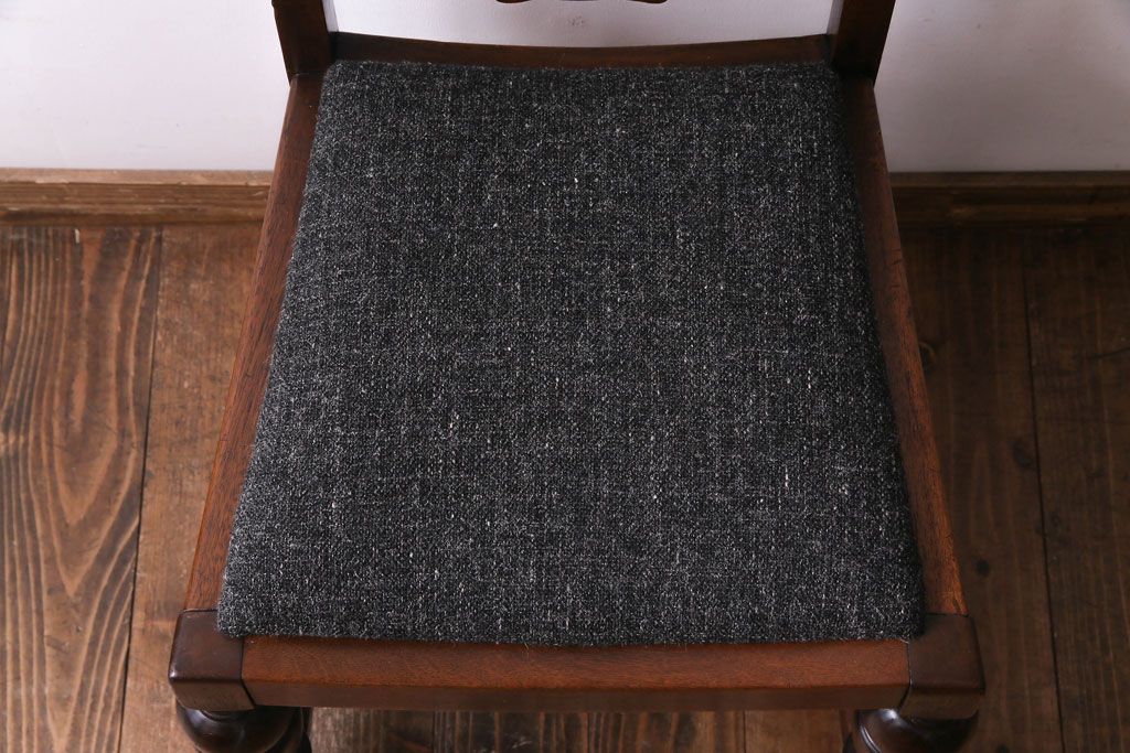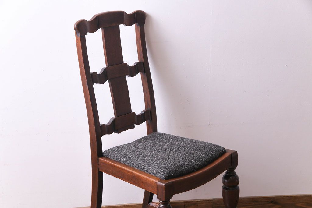 ラフジュ工房> 椅子・ベンチ> ダイニングチェア > アンティーク家具 イギリスアンティーク ウォールナット材 リボンのような背もたれがエレガントなチェア(ダイニングチェア、ワークチェア、椅子)(1)