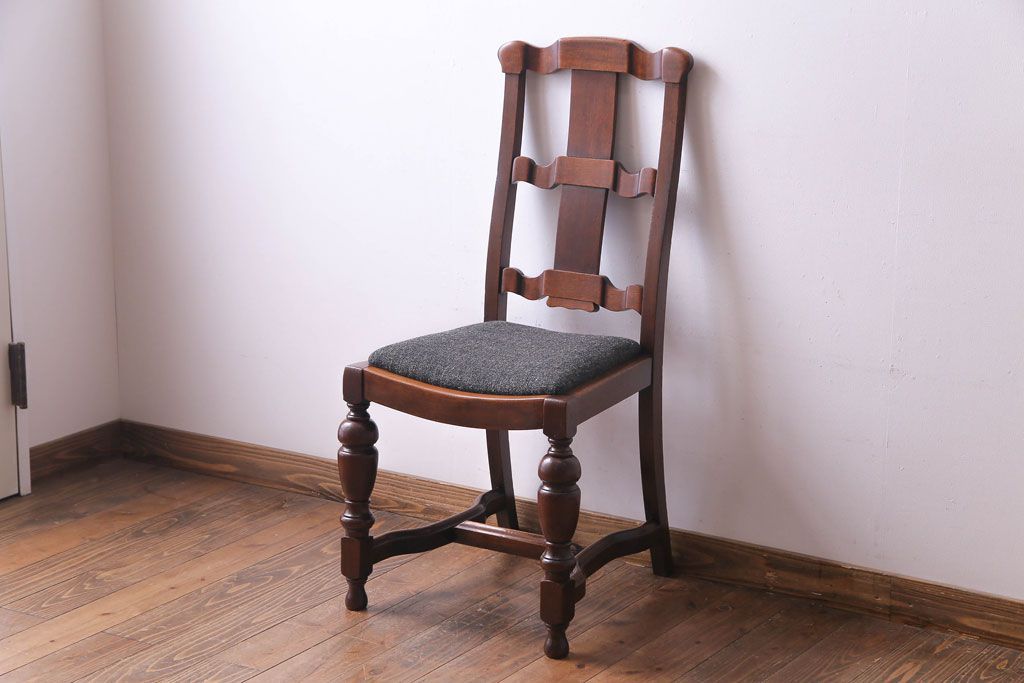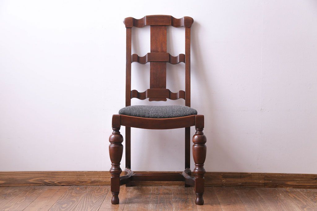 ラフジュ工房> 椅子・ベンチ> ダイニングチェア > アンティーク家具 イギリスアンティーク ウォールナット材 リボンのような背もたれがエレガントなチェア(ダイニングチェア、ワークチェア、椅子)(3)
