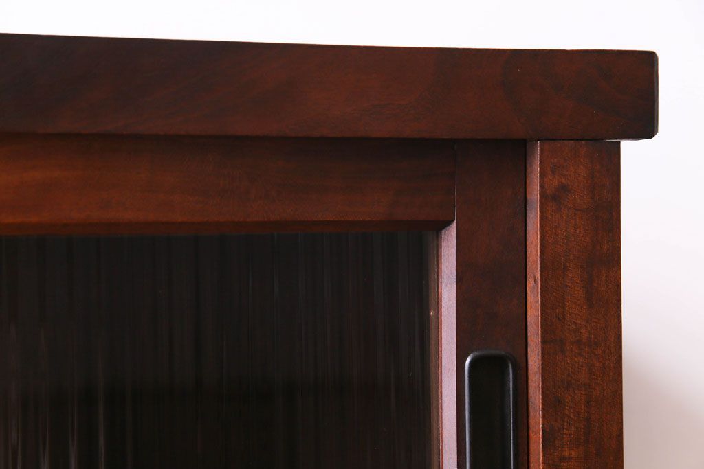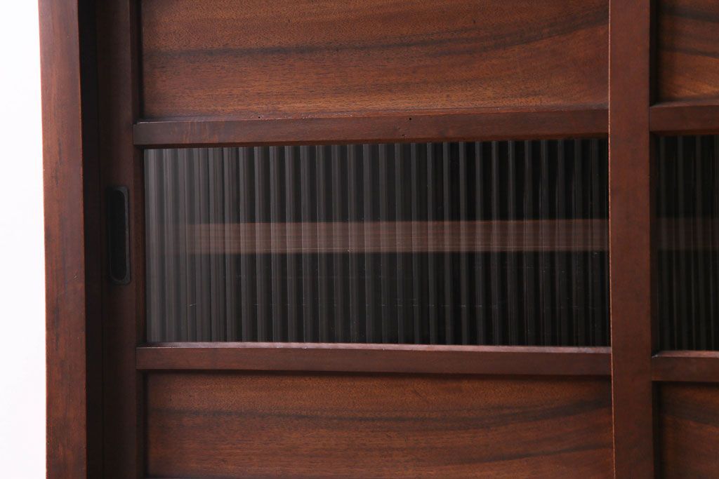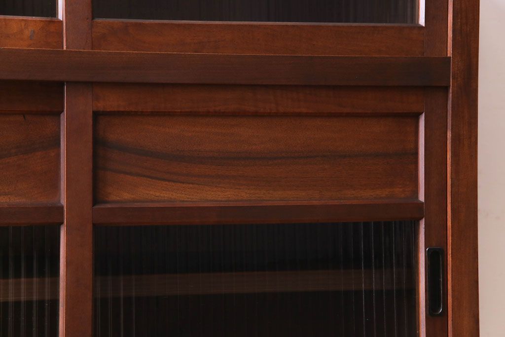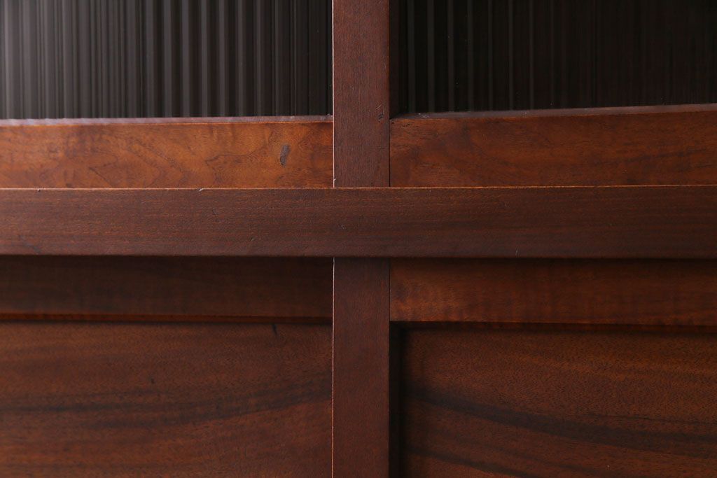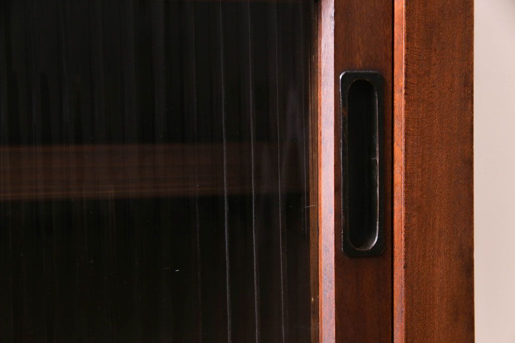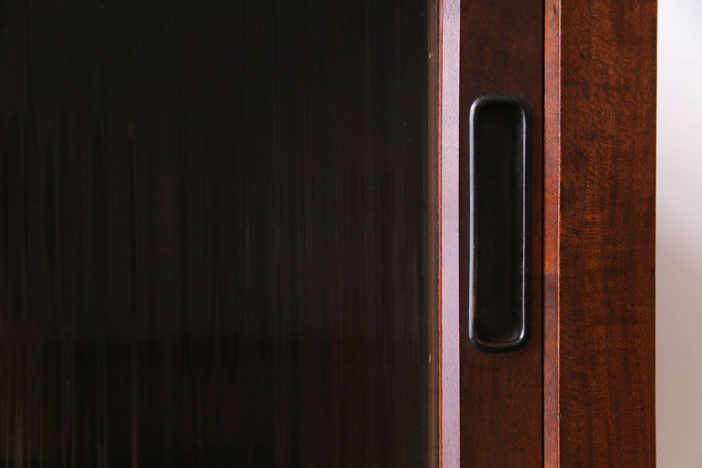 キャビネット・戸棚 > アンティーク家具 昭和中期 モールガラス入り スッキリとした和のテイストが魅力のガラス戸棚(収納棚、リビングボード)