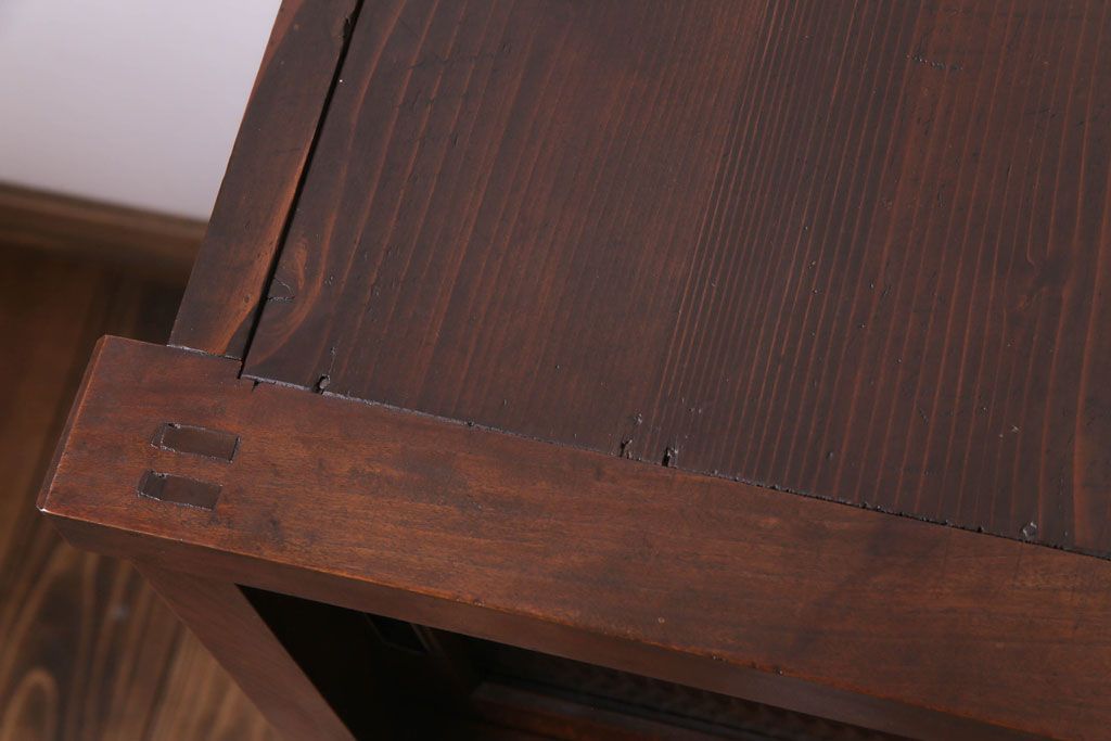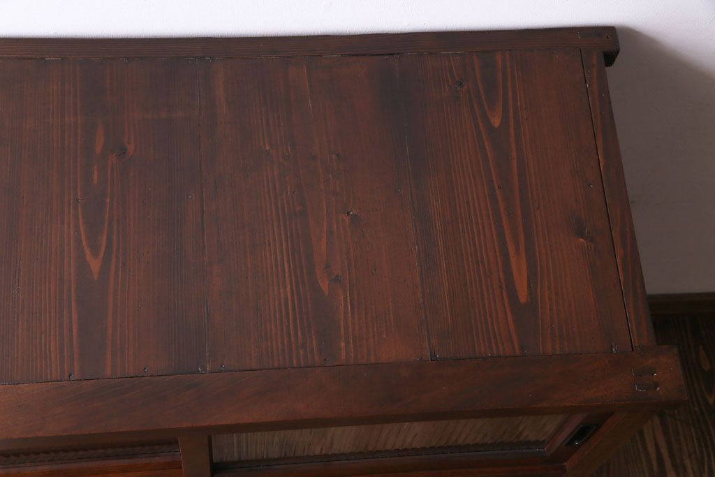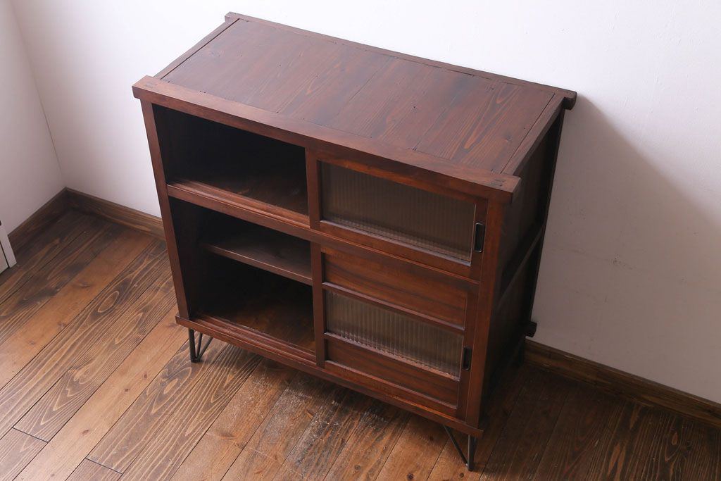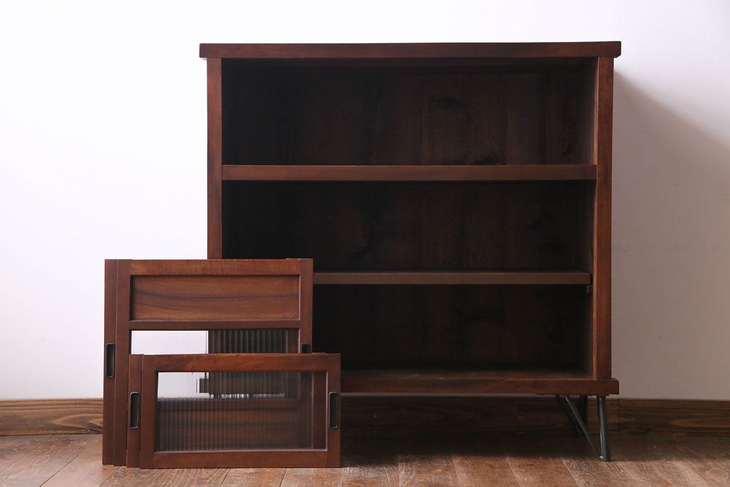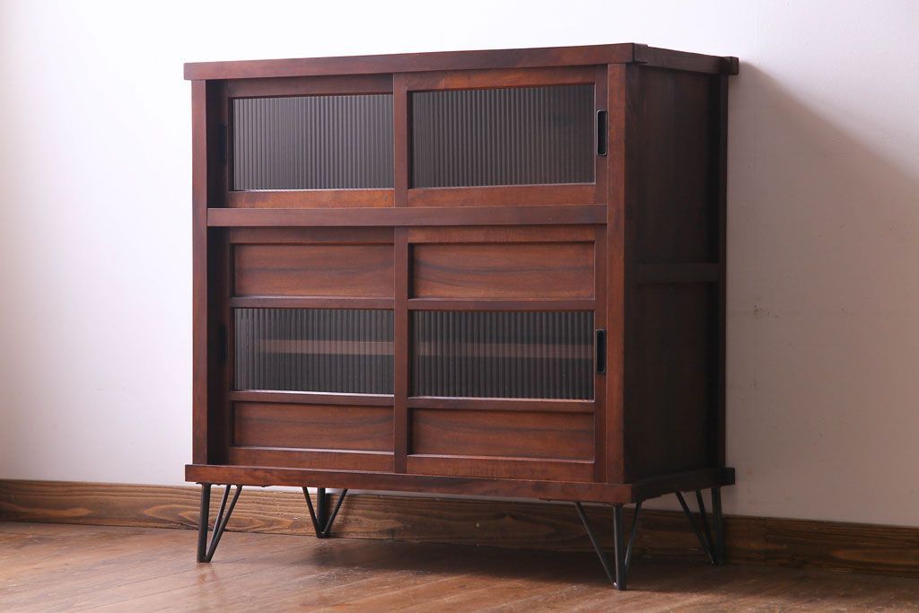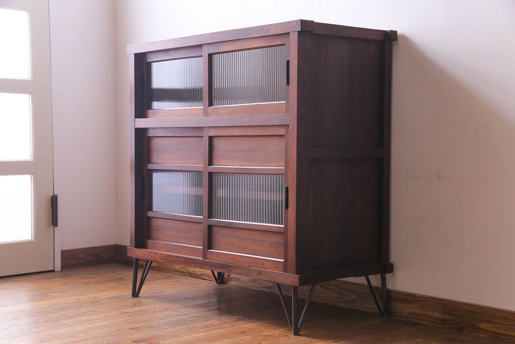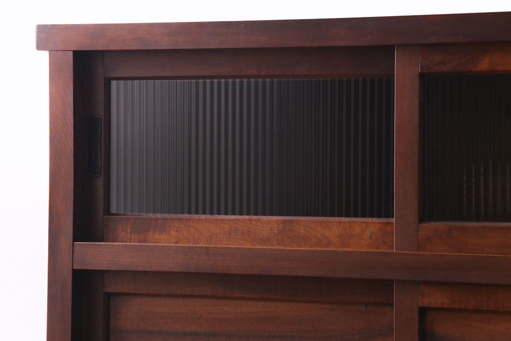 キャビネット・戸棚 > アンティーク家具 昭和中期 モールガラス入り スッキリとした和のテイストが魅力のガラス戸棚(収納棚、リビングボード)