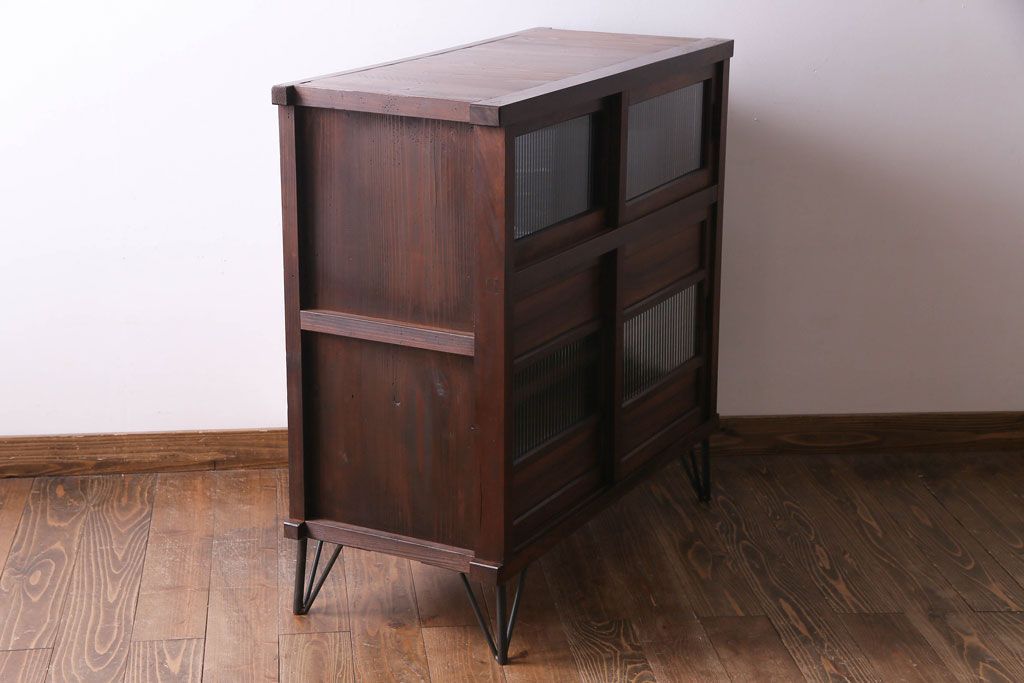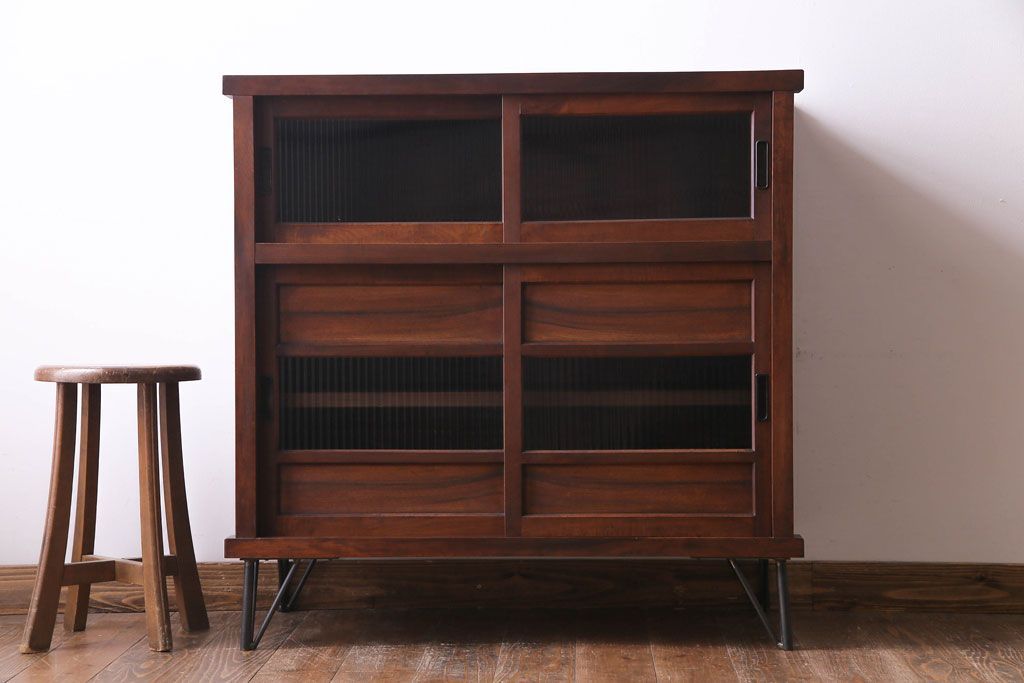 昭和中期 モールガラス入り スッキリとした和のテイストが魅力のガラス戸棚(収納棚、リビングボード)です。