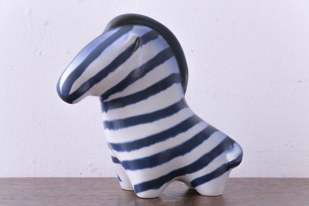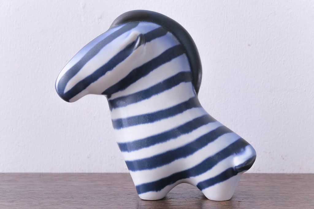 アンティーク雑貨 北欧ビンテージ アラビア(ARABIA) Taisto Kaasinen シマウマのオブジェ(ブルー)