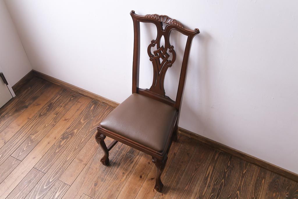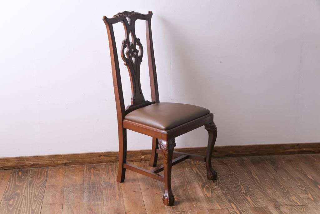 イギリスビンテージ 繊細で上品な彫りが目を引くダイニングチェア(椅子)(1)です。