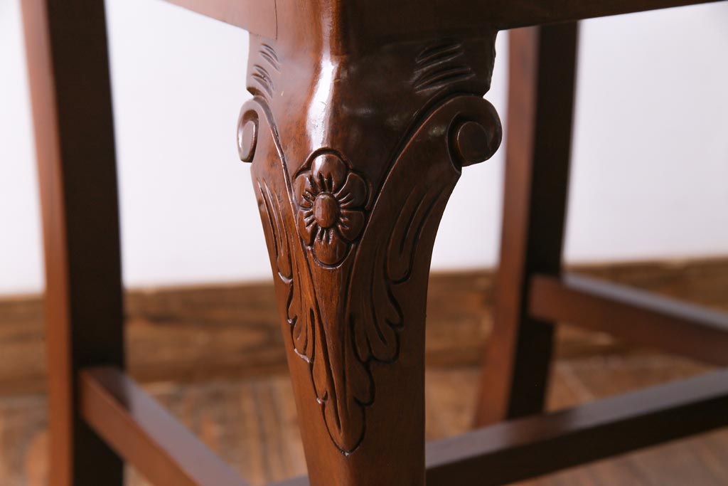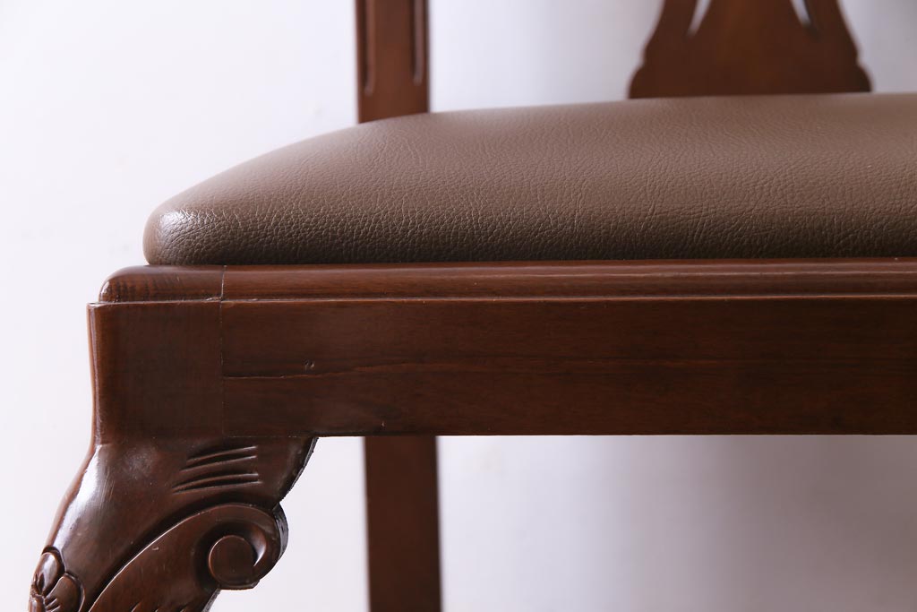 上品な彫りのデザインが目を引くダイニングチェアです。