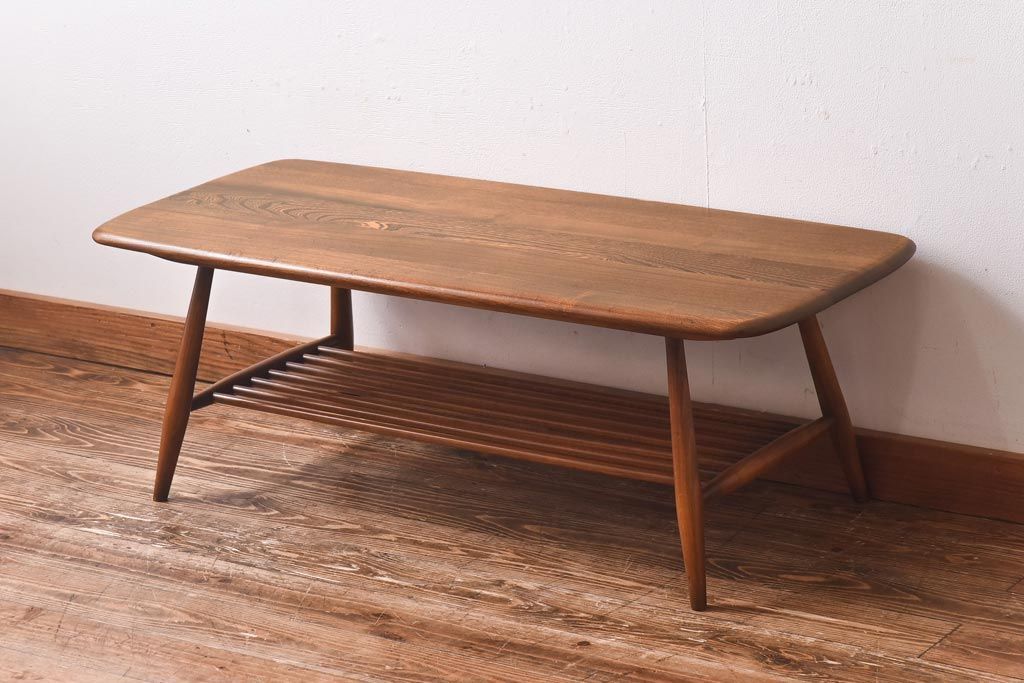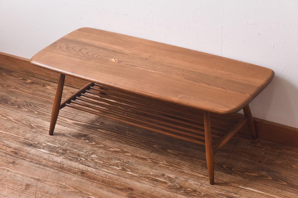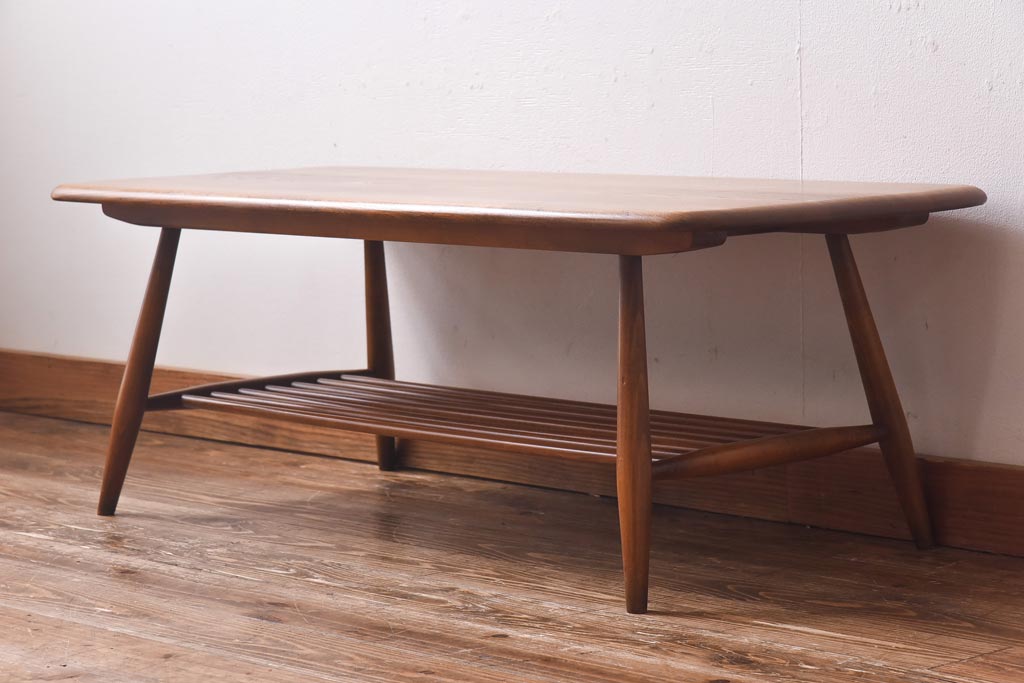 ヴィンテージ家具 ERCOL(アーコール) イギリスビンテージ マガジンラック付きローテーブル(センターテーブル、コーヒーテーブル)