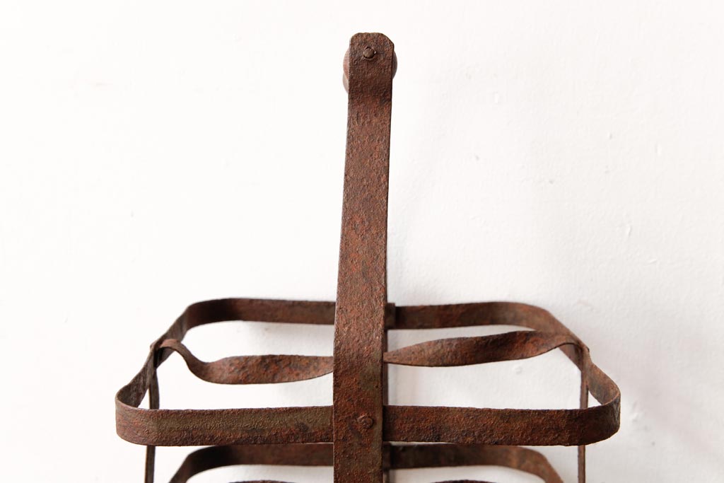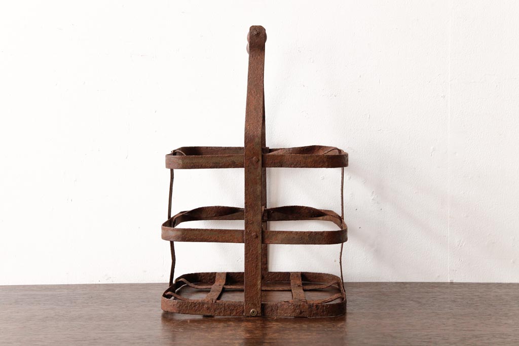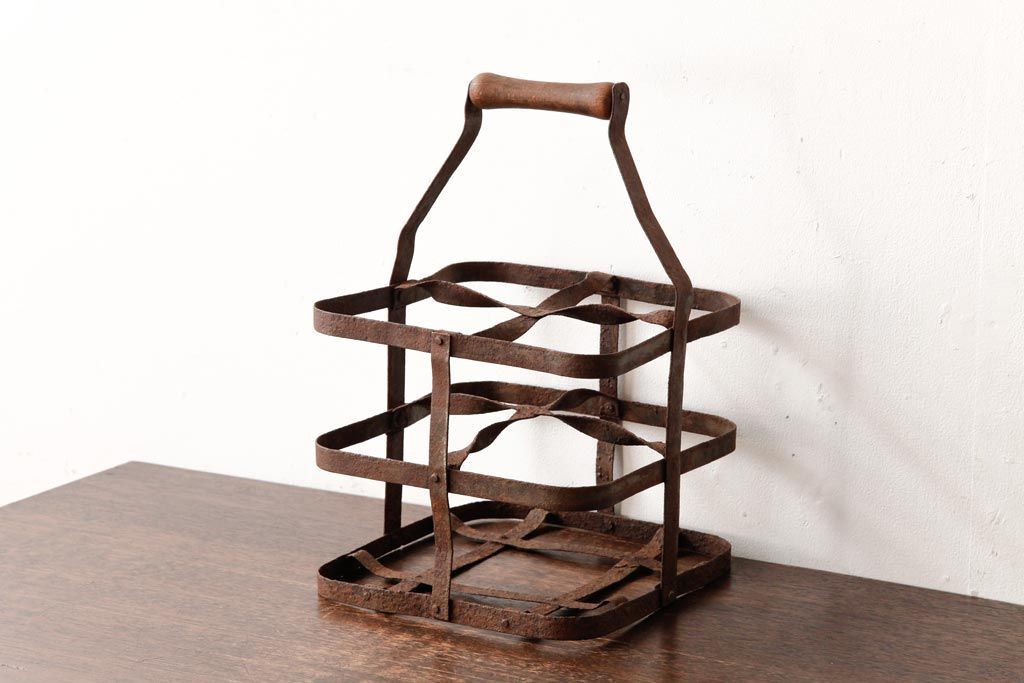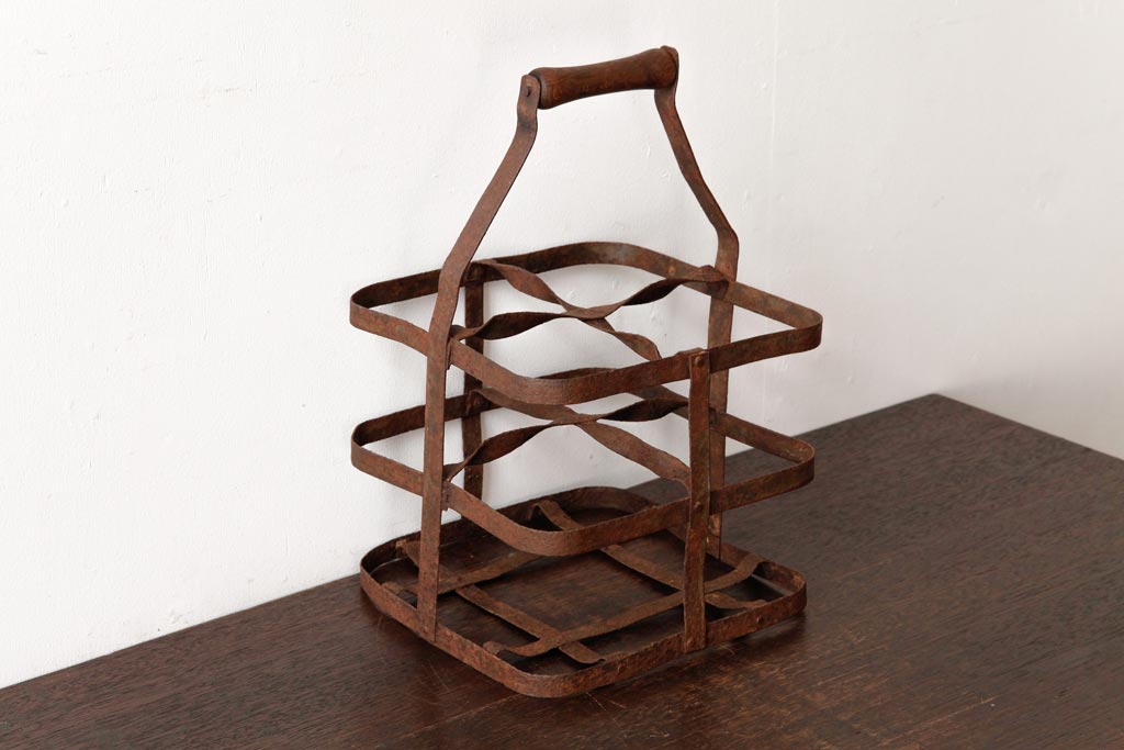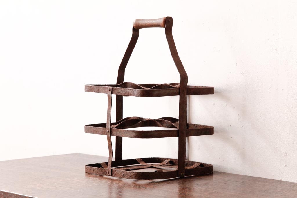ラフジュ工房> 小物収納・トランク> バスケット > アンティーク雑貨 イギリスビンテージ 4連 ブロカントスタイルにぴったりなアイアン製ボトルラック(ボトルケース)(1)