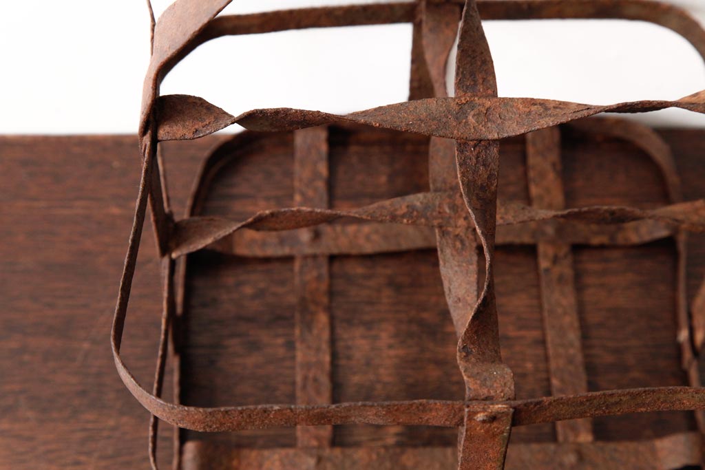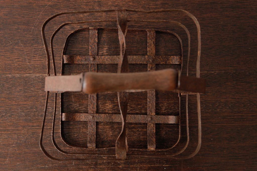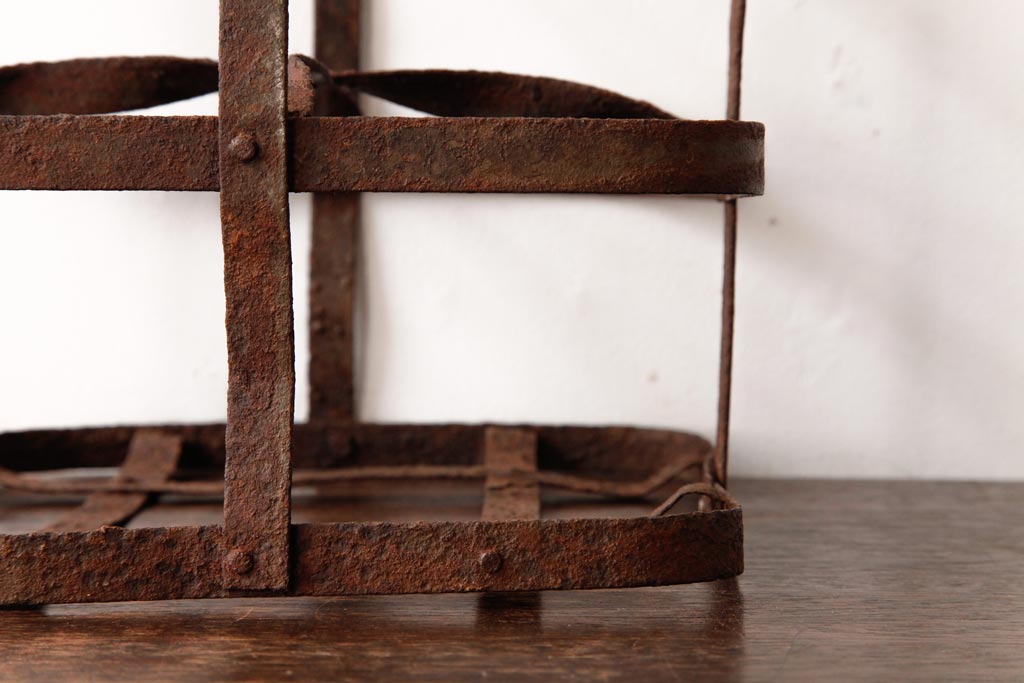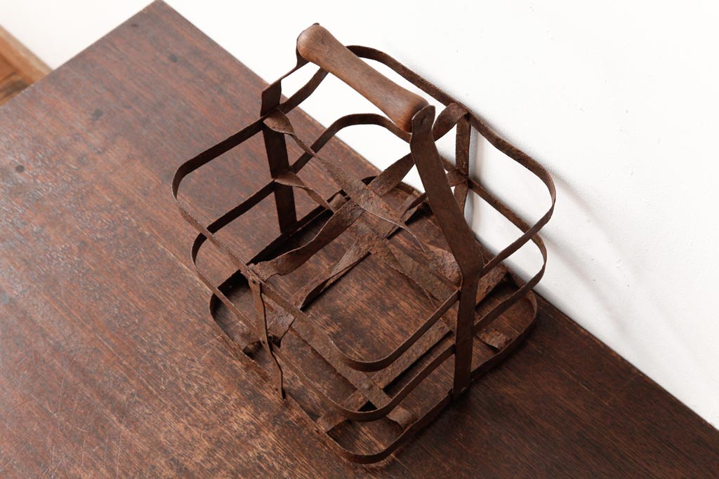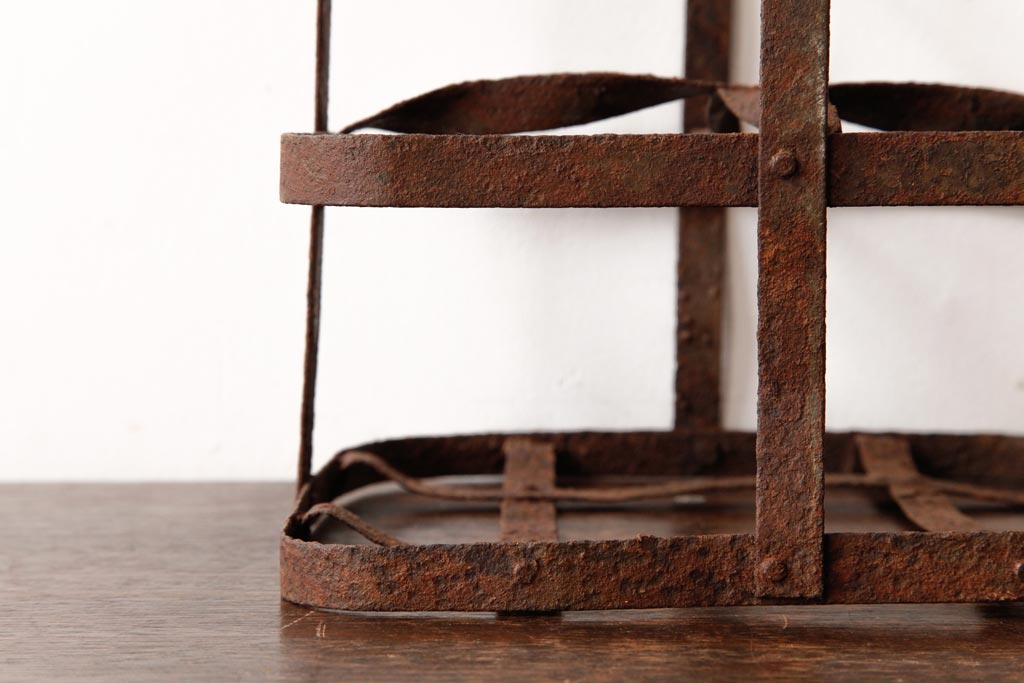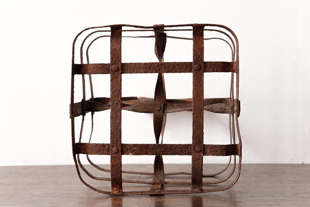 ラフジュ工房> 小物収納・トランク> バスケット > アンティーク雑貨 イギリスビンテージ 4連 ブロカントスタイルにぴったりなアイアン製ボトルラック(ボトルケース)(1)