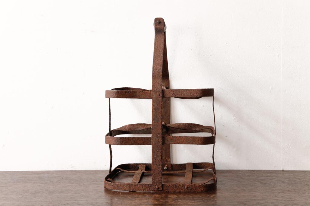 ラフジュ工房> 小物収納・トランク > アンティーク雑貨 イギリスビンテージ 4連 ブロカントスタイルにぴったりなアイアン製ボトルラック(ボトルケース)(1)