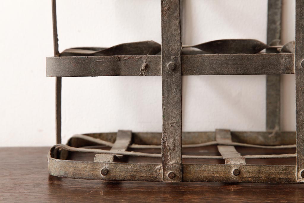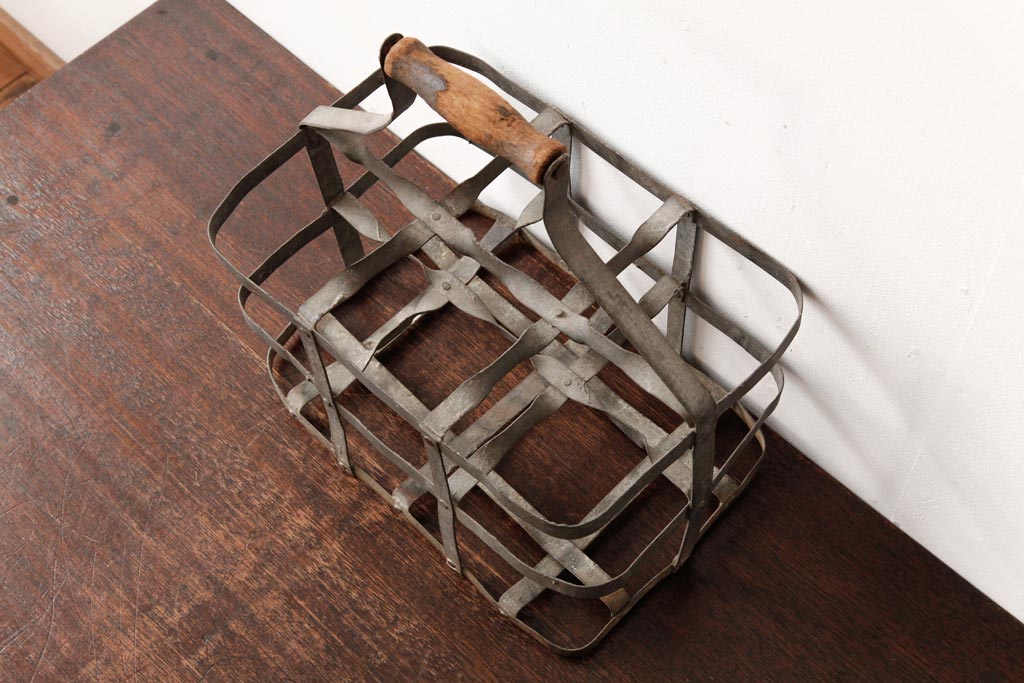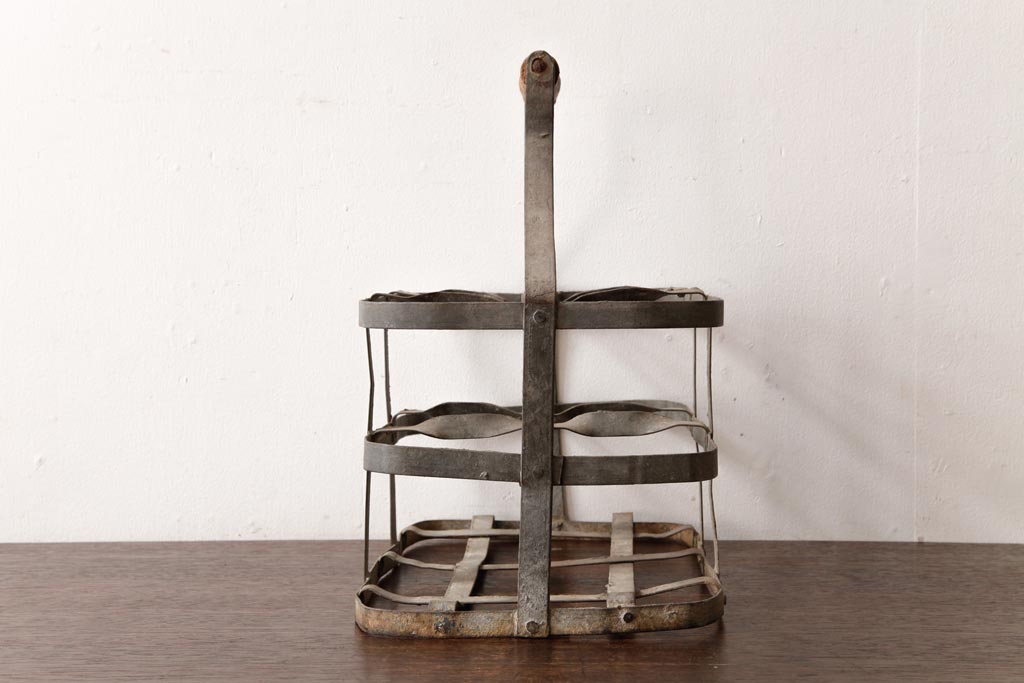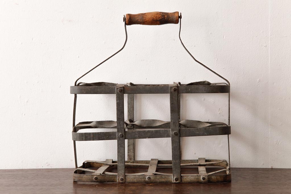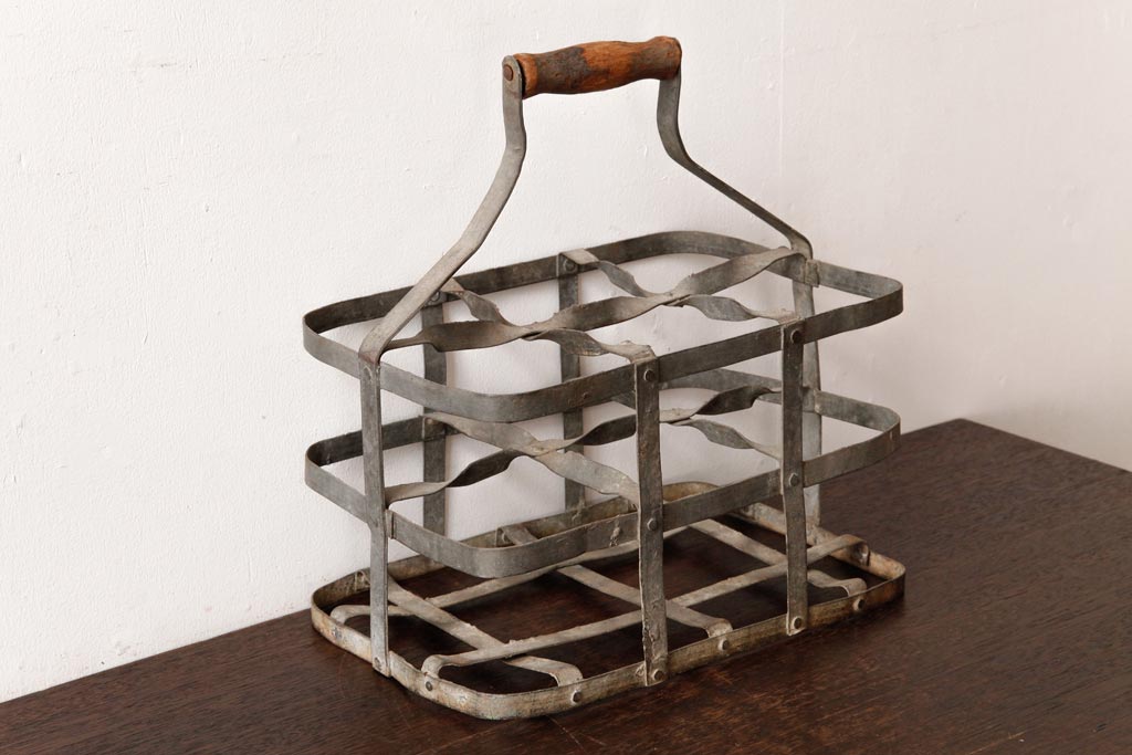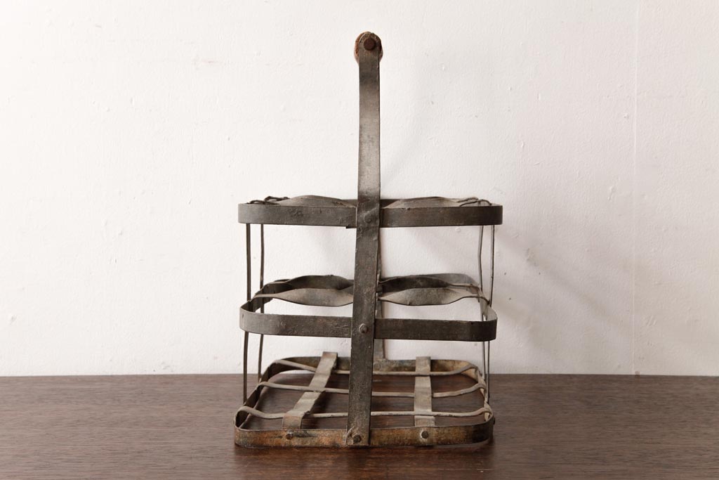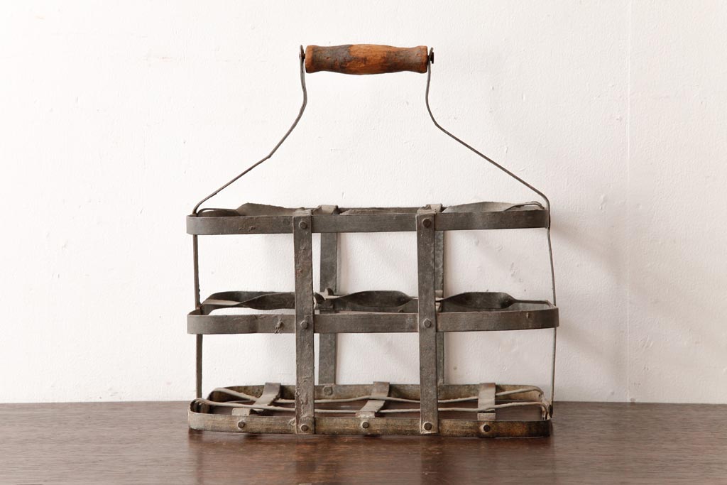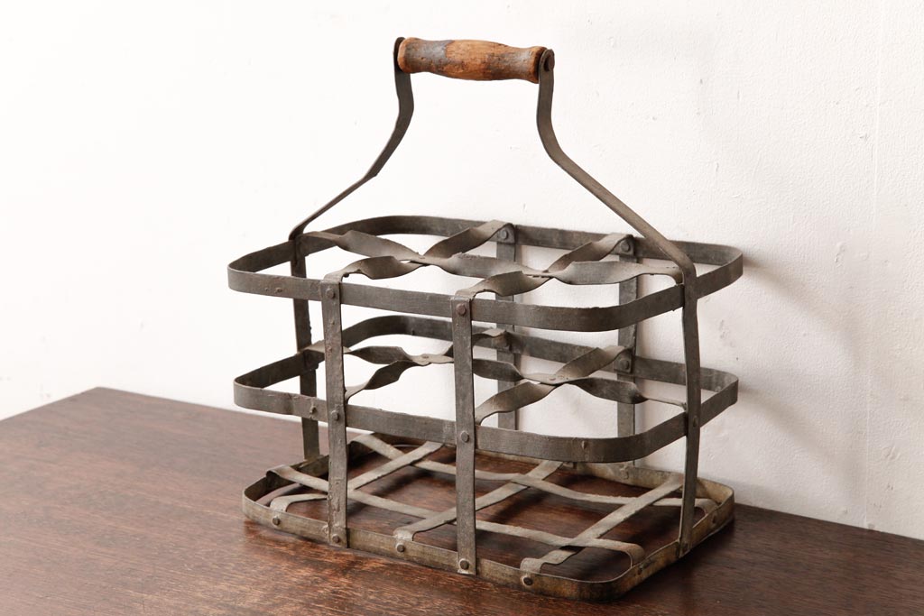 ラフジュ工房> 小物収納・トランク> バスケット > アンティーク雑貨 イギリスビンテージ 6連 ブロカントスタイルにぴったりなアイアン製ボトルラック(ボトルケース)(3)