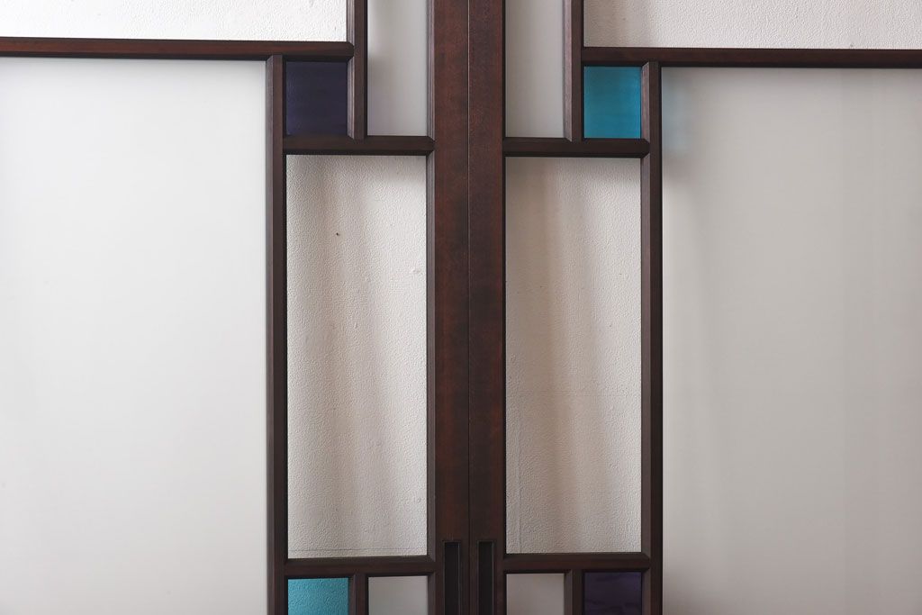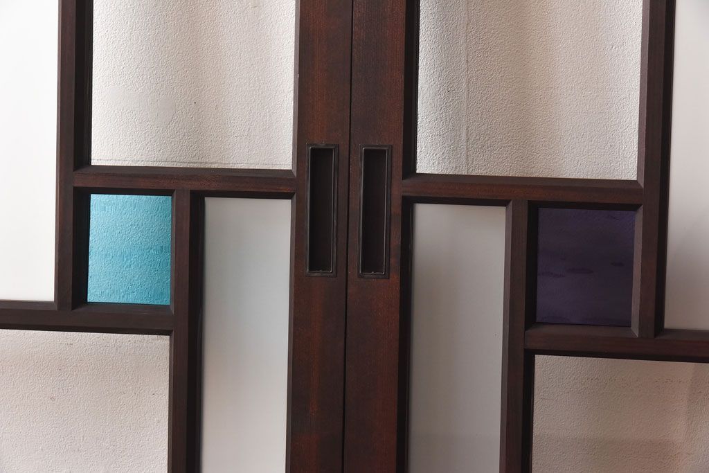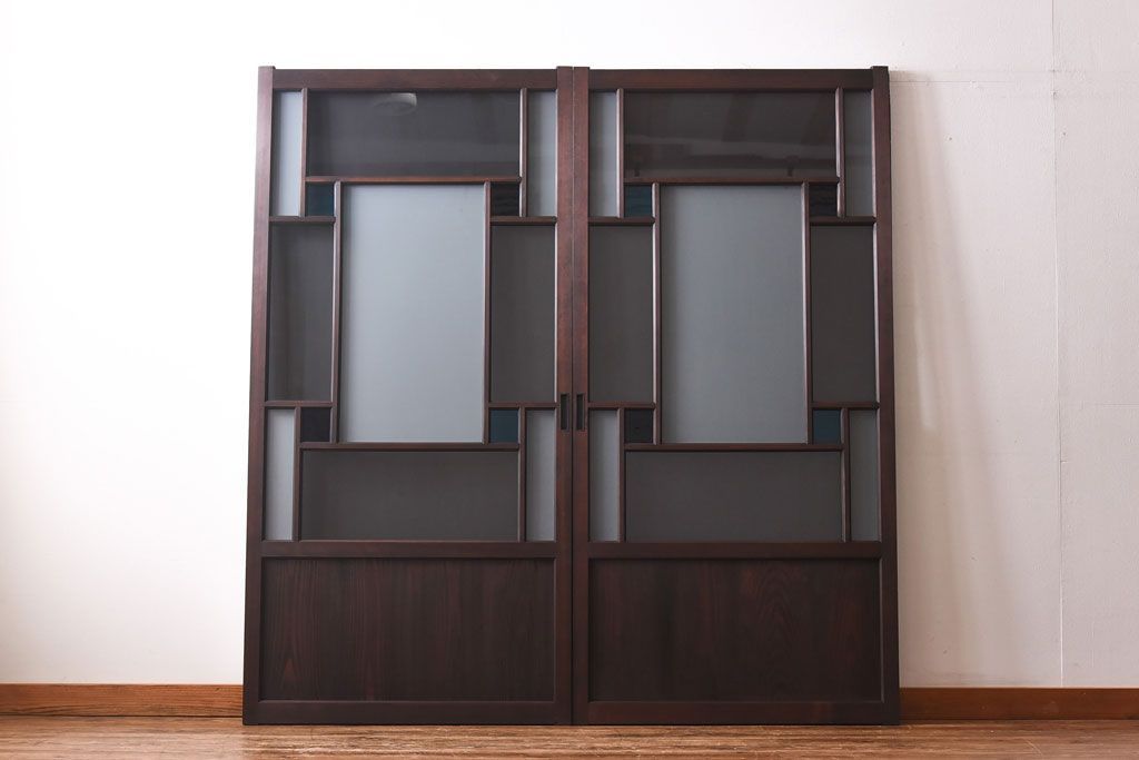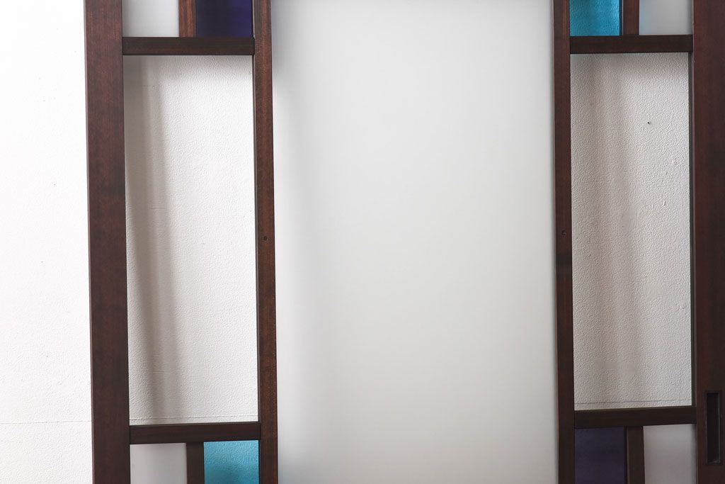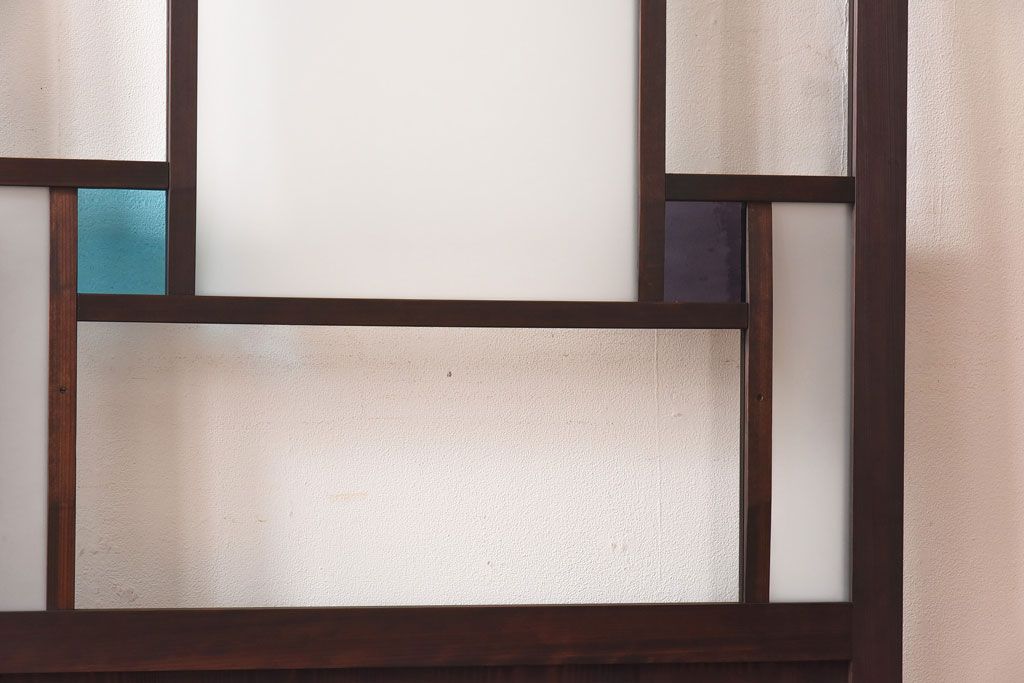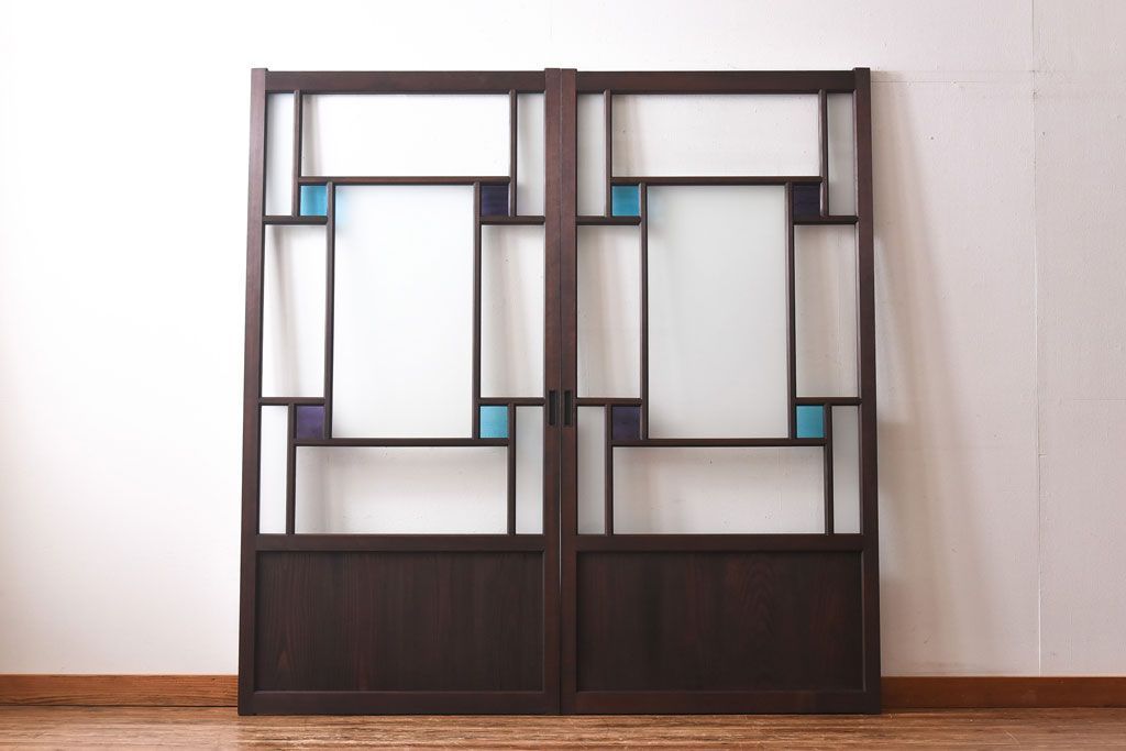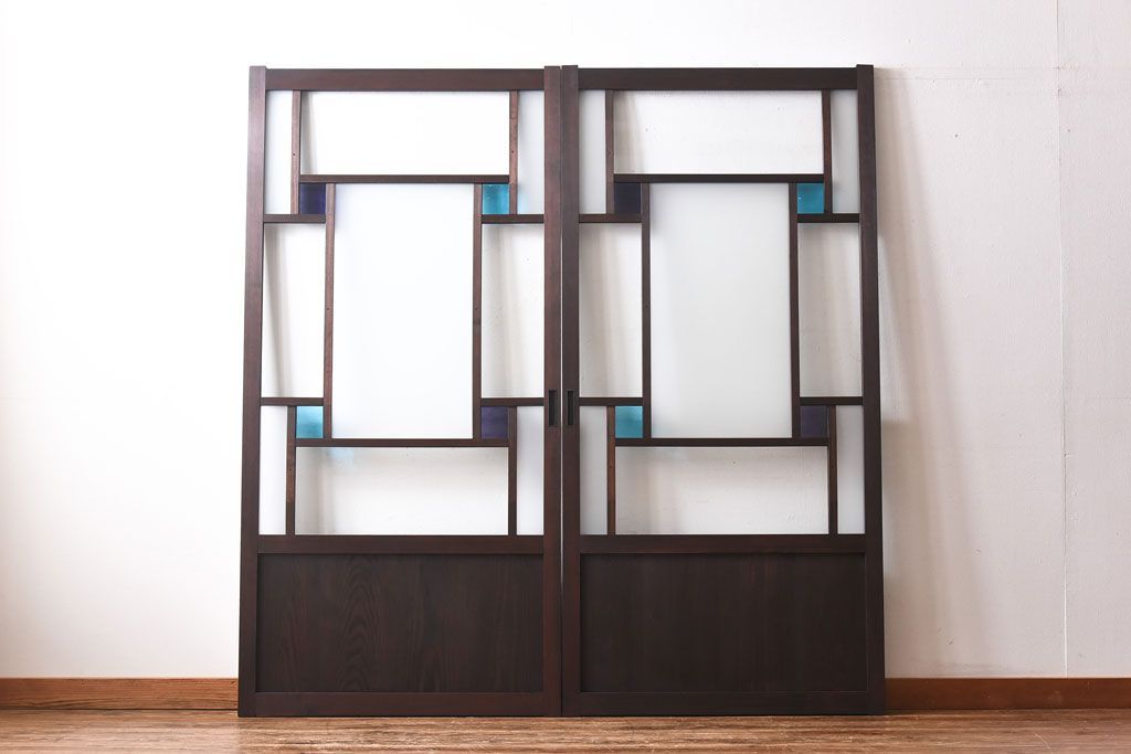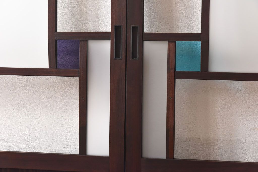 ラフジュ工房オリジナル 色ガラスがポイントになったレトロな引き戸(建具、ガラス戸)2枚セット(1)