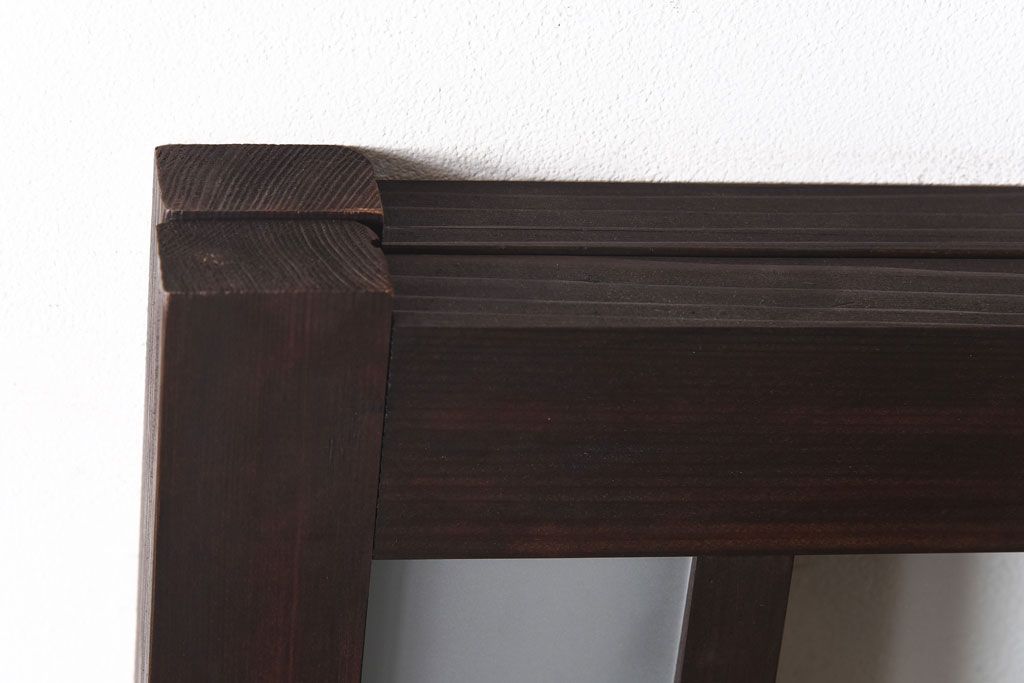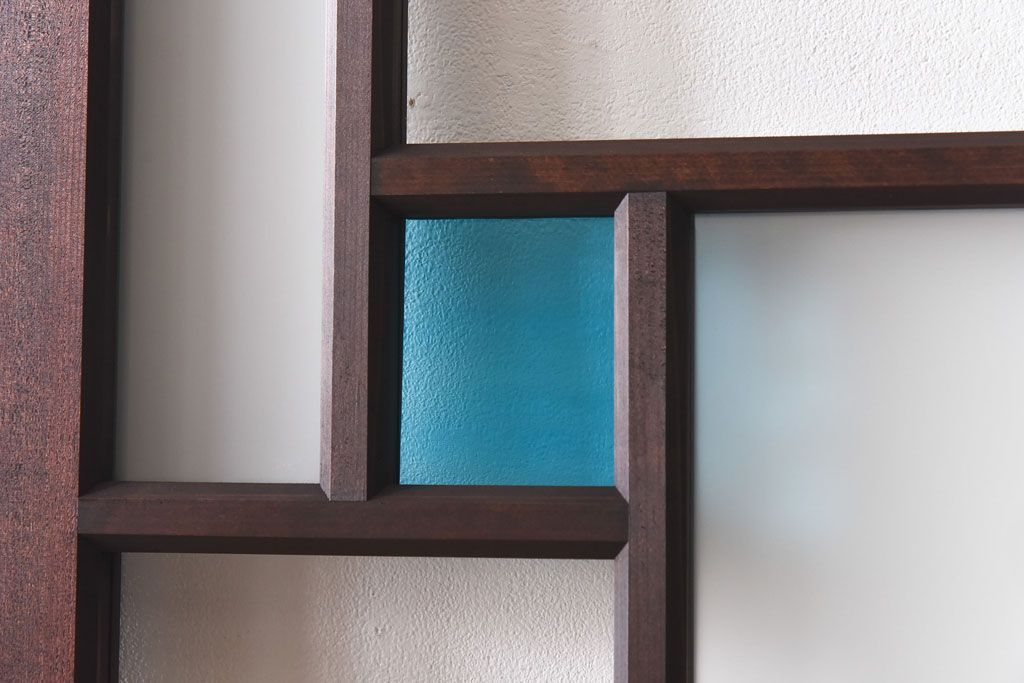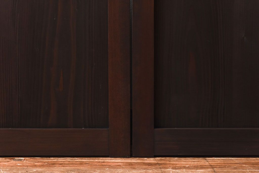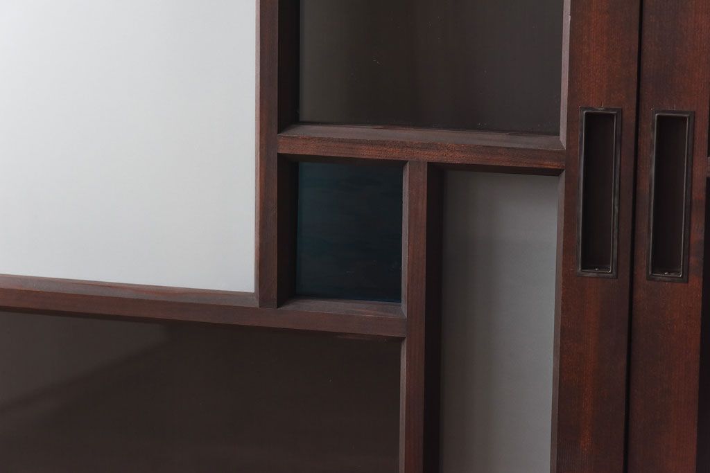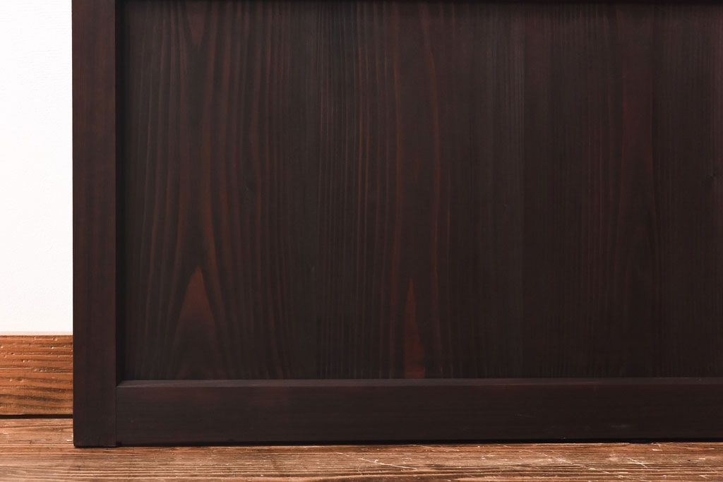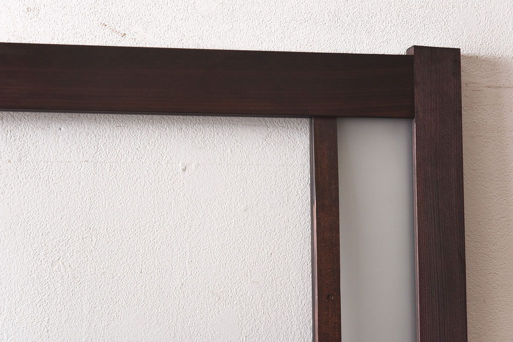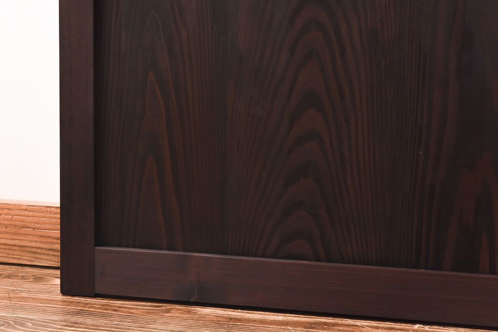 ラフジュ工房オリジナル 色ガラスがポイントになったレトロな引き戸(建具、ガラス戸)2枚セット(1)です。 2色の色ガラスがポイントになった 当店オリジナル製作の引き戸2枚セットです。 水色と紫の色ガラスは愛らしさがありながらも 落ち着いた雰囲気も醸し出しています。 日本で馴染みの深い杉材を使用しており、 どこか懐かしさを感じるような 鮮明な木目が魅力的です。 レトロな佇まいながら新品ですので、 店舗でのご使用も安心です。 大正ロマンや和モダンスタイルの空間にいかがでしょうか。 当店オリジナル商品です。古いお品ではありません。色ガラスも現代物です。 1枚目の画像にある建具2枚のうち、左のみ計測致しましたので、そちらをご参考ください。 使用上問題のあるダメージはありません。 ■框サイズ 上60mm/左45mm/右45mm/下60mm ■重量 約10kg(1枚)
