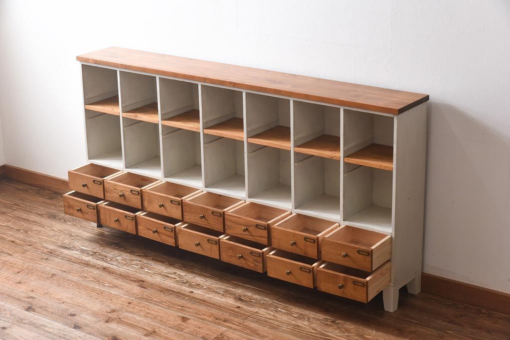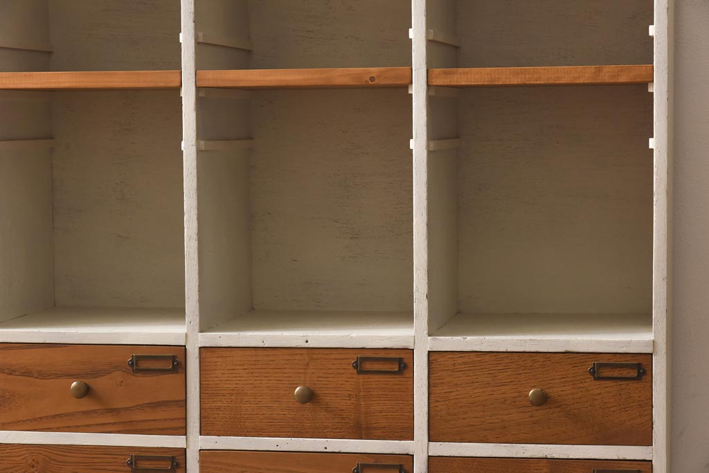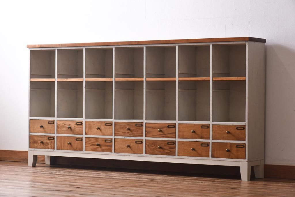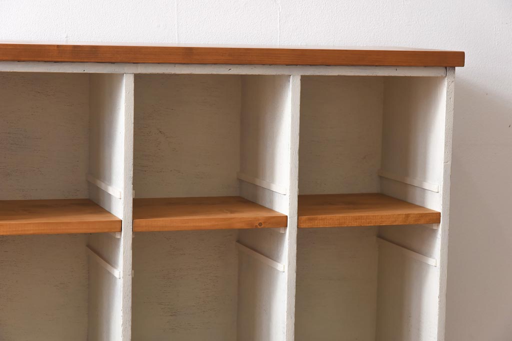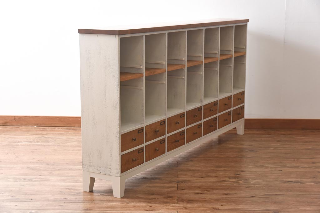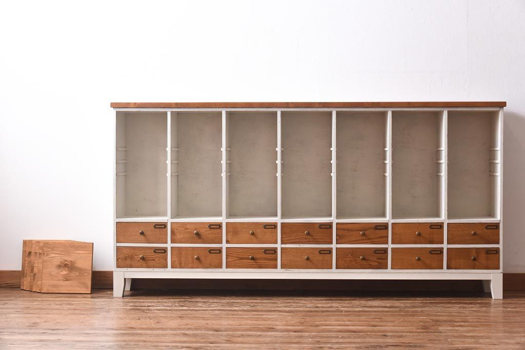 ペイント家具 リメイク品 レトロな雰囲気が可愛らしいロッカー・7列(収納棚、オープンラック、引き出し)