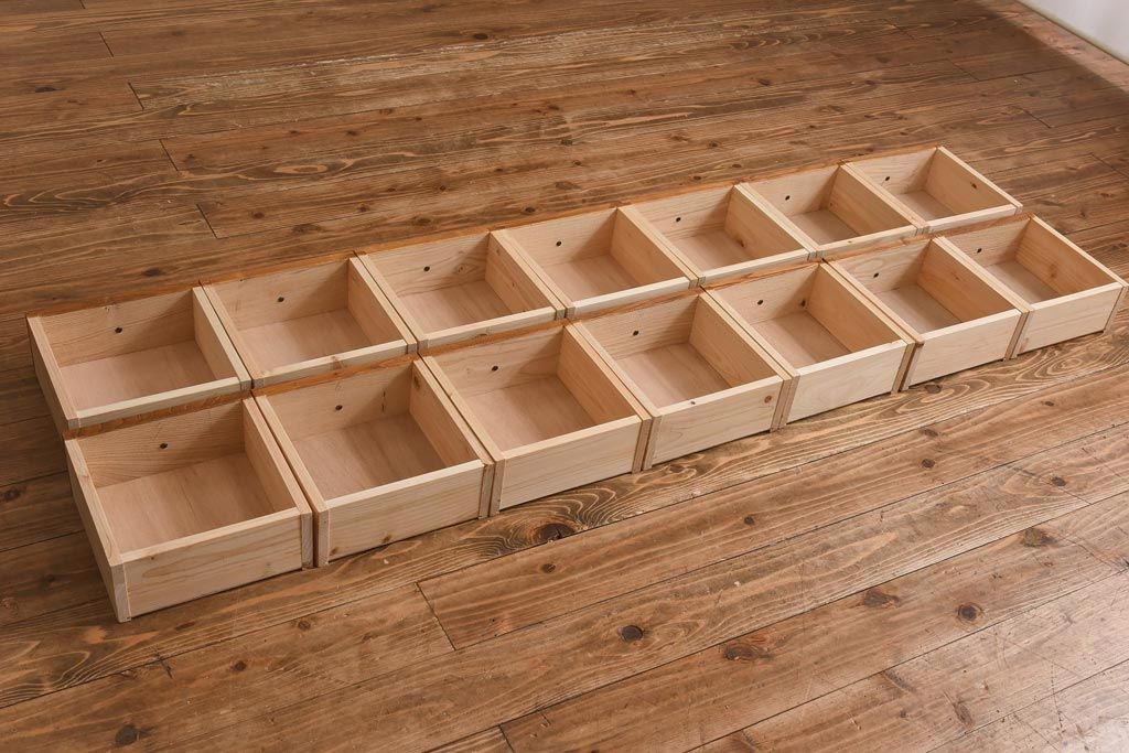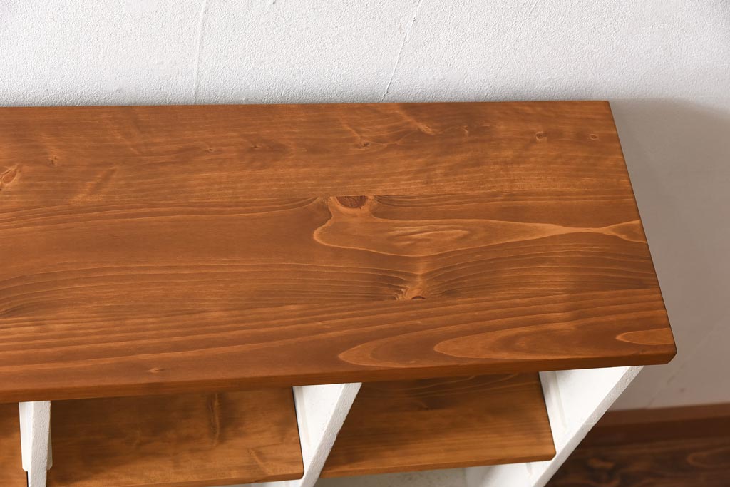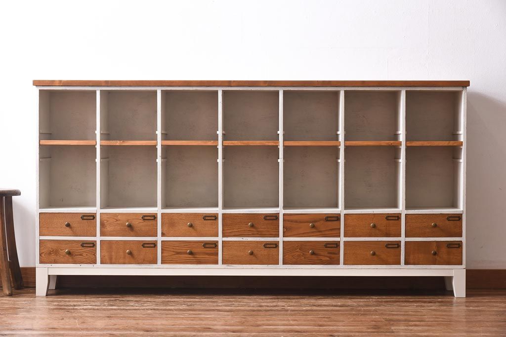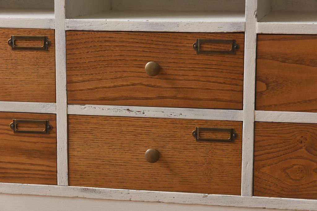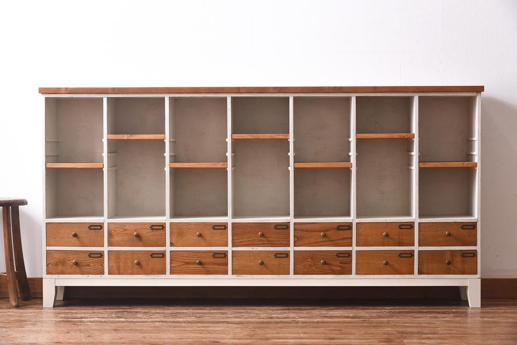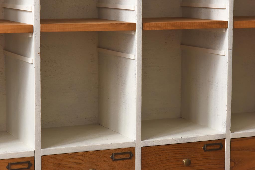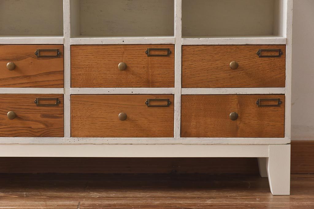 ペイント家具 リメイク品 レトロな雰囲気が可愛らしいロッカー・7列(収納棚、オープンラック、引き出し)