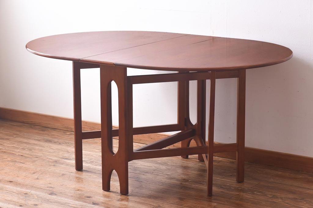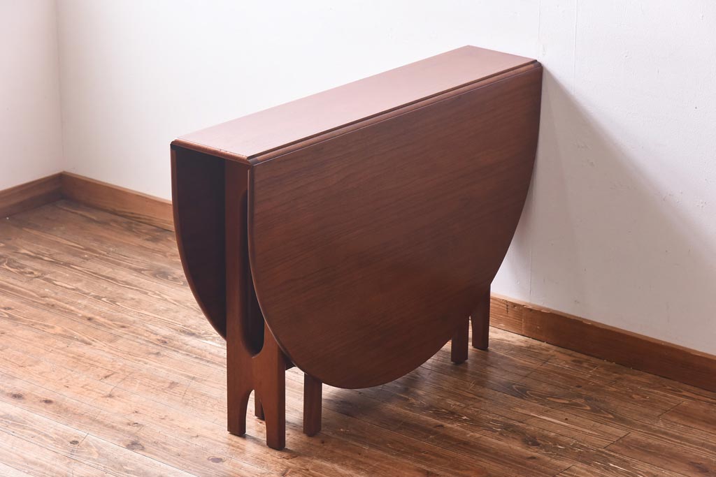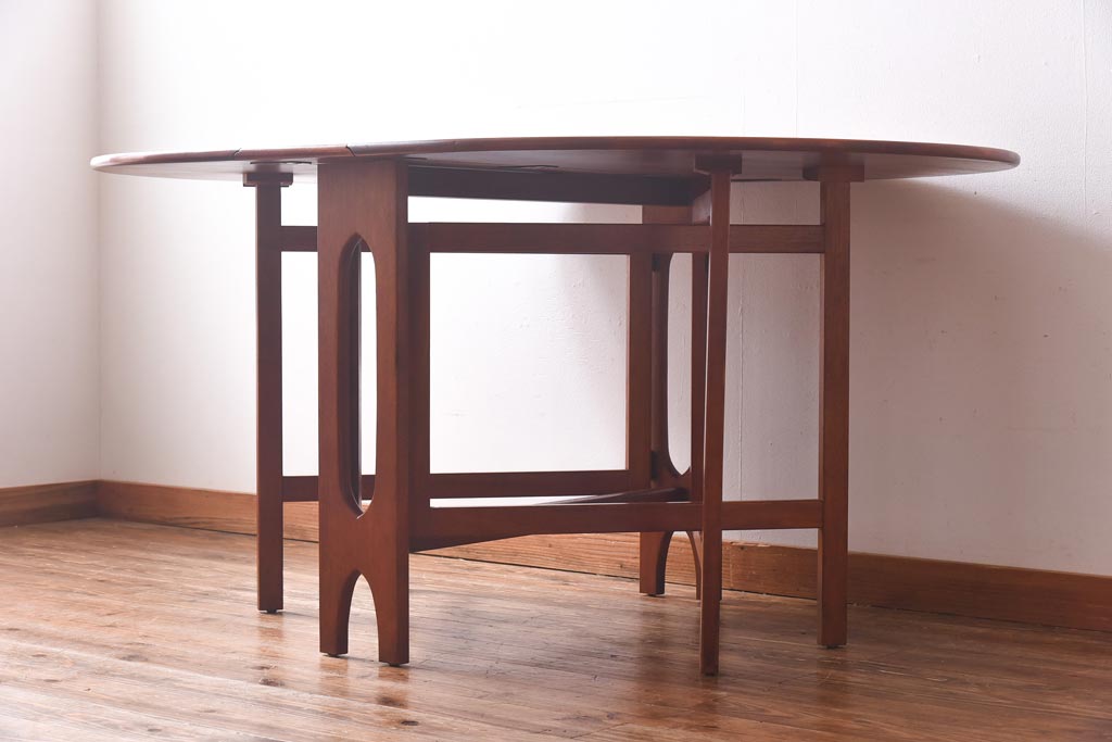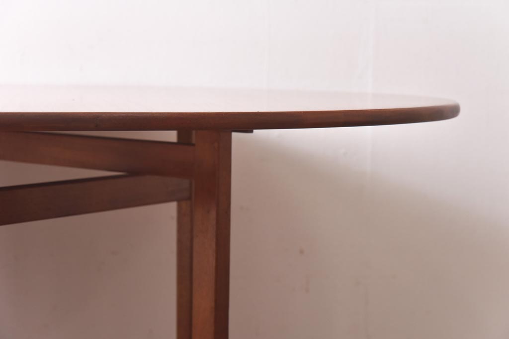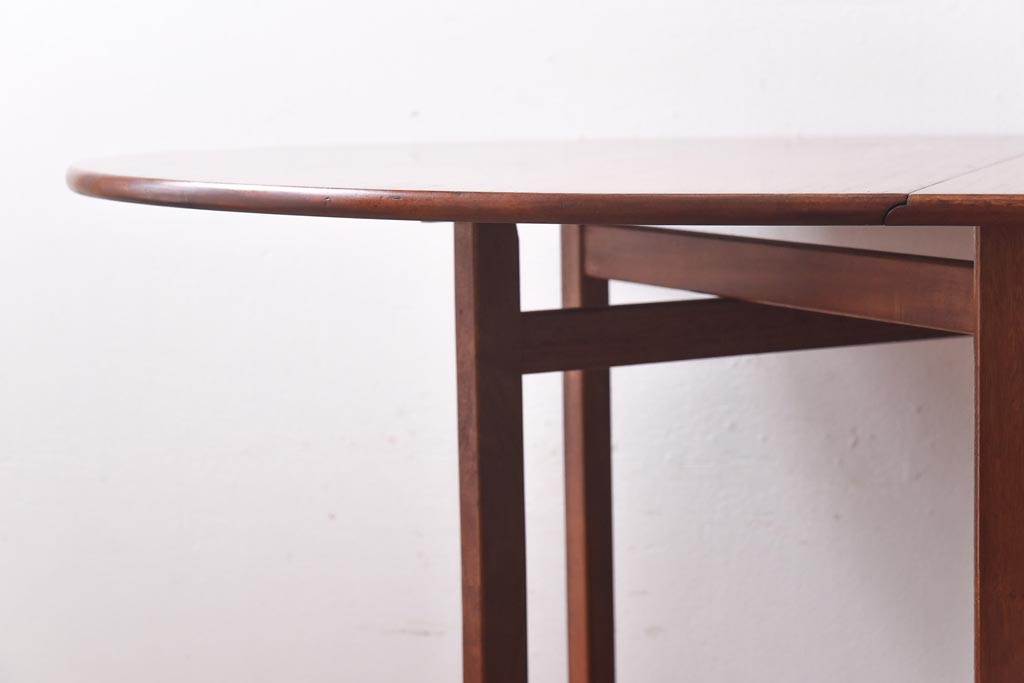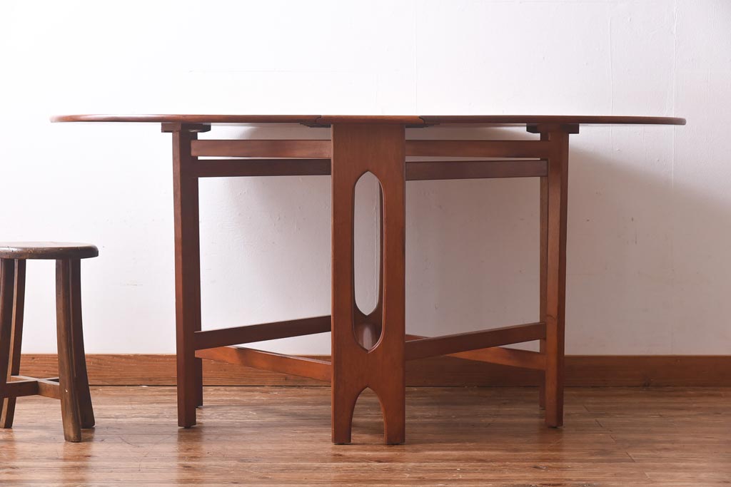 ラフジュ工房> テーブル> 丸テーブル > ビンテージ家具 北欧ヴィンテージ チーク材 脚のデザインが珍しいゲートレッグテーブル(エクステンションテーブル、ダイニングテーブル)