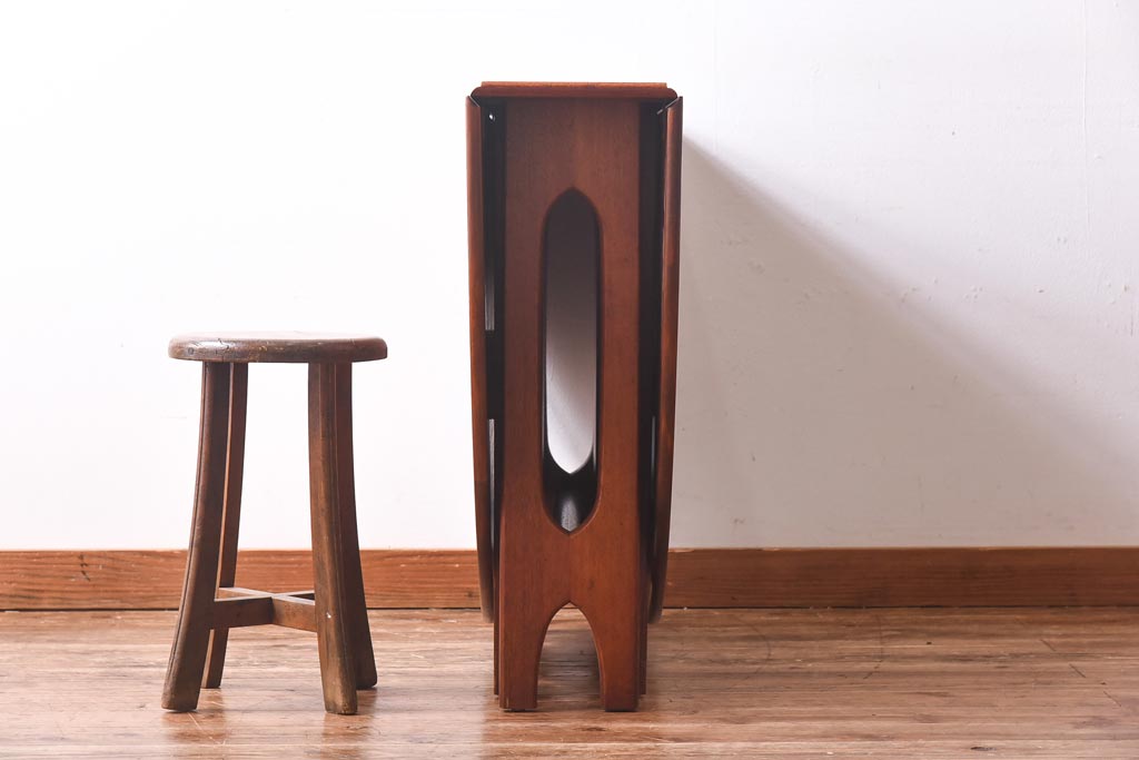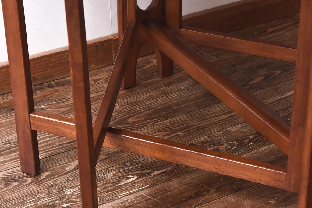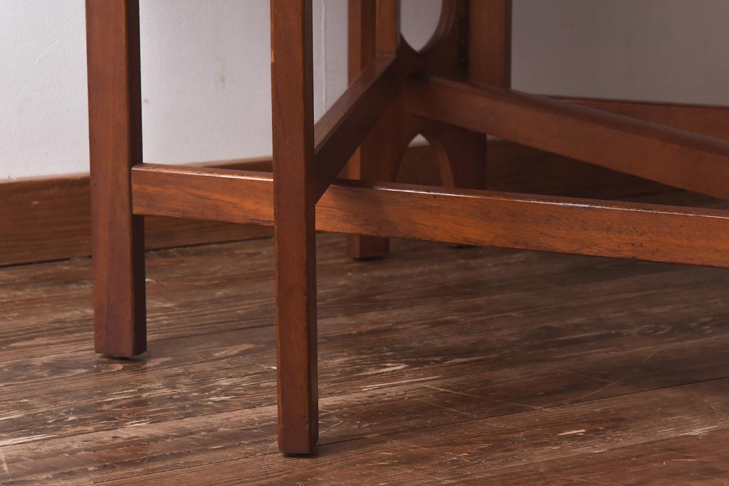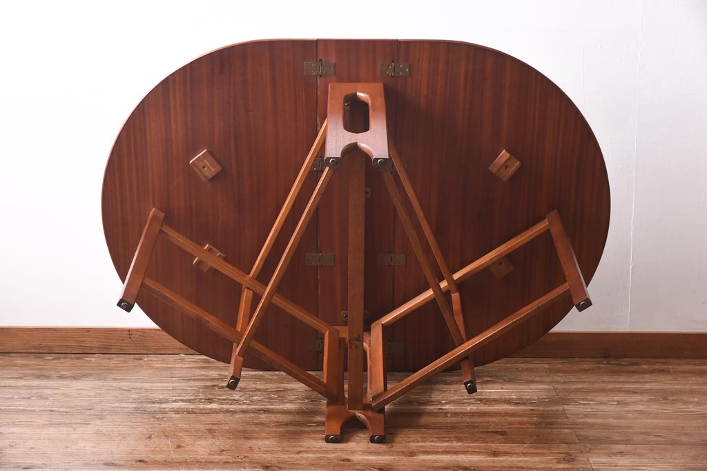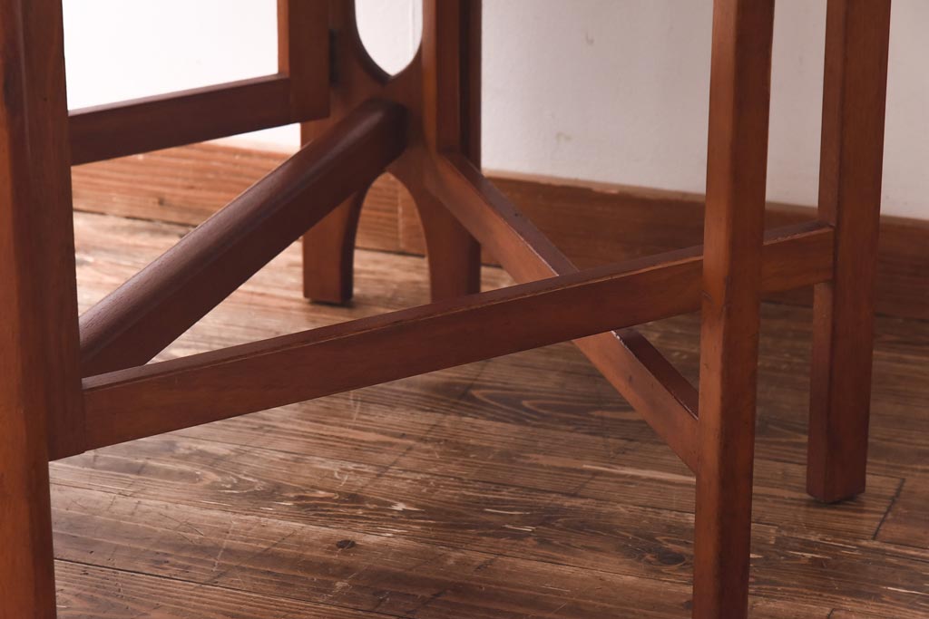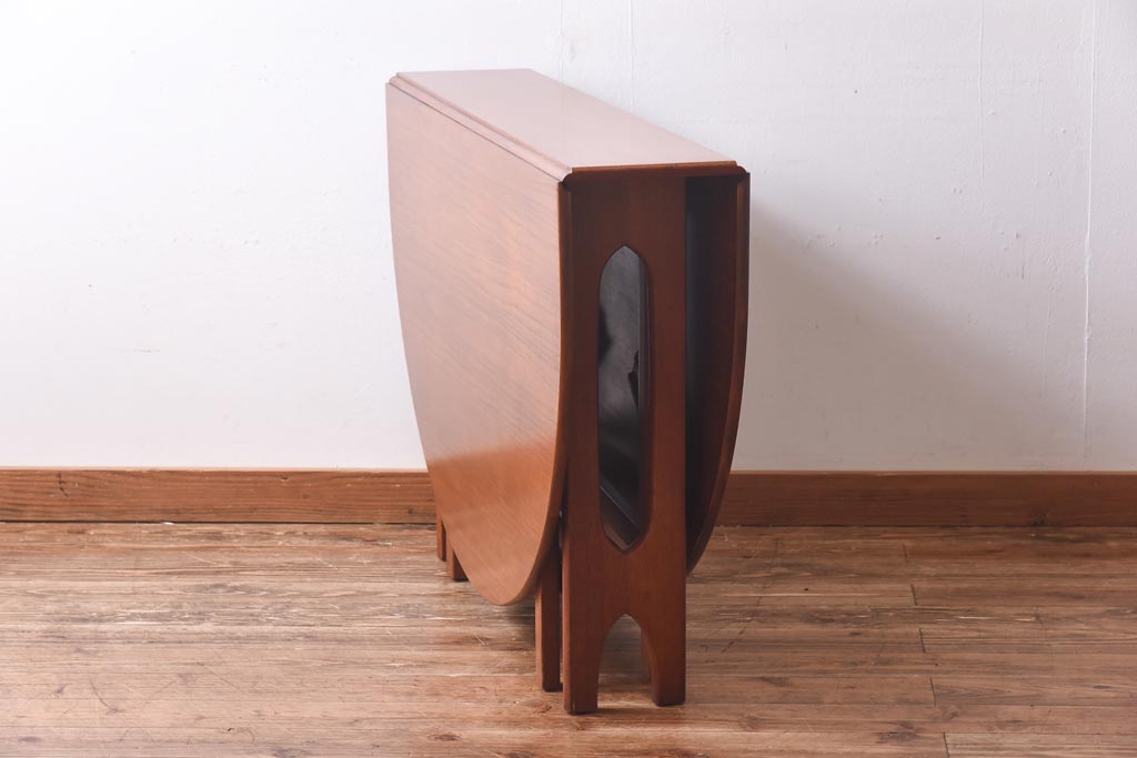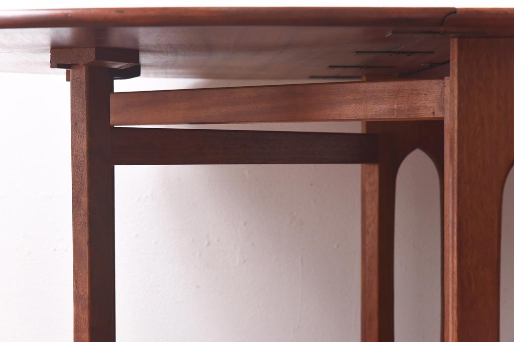 ラフジュ工房> テーブル> 丸テーブル > ビンテージ家具 北欧ヴィンテージ チーク材 脚のデザインが珍しいゲートレッグテーブル(エクステンションテーブル、ダイニングテーブル)