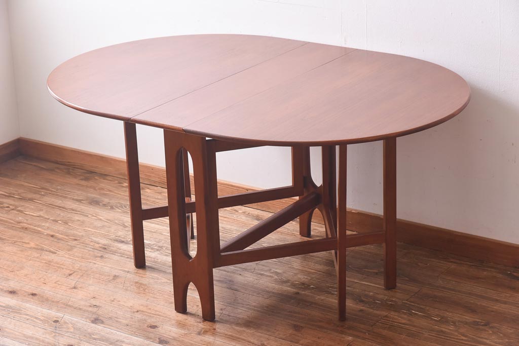 ビンテージ家具 北欧ヴィンテージ チーク材 脚のデザインが珍しいゲートレッグテーブル(エクステンションテーブル、ダイニングテーブル)