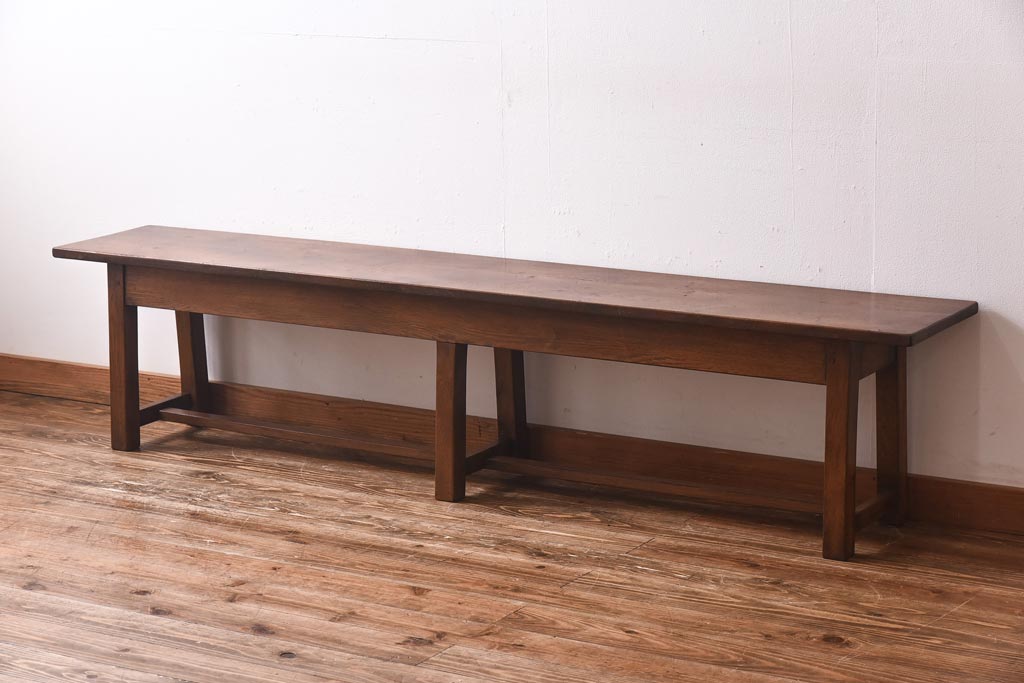 アンティーク雑貨 イギリスヴィンテージ オーク材 こだわりの空間に取り入れたいシンプルな大型ベンチ(長椅子、飾り台、ビンテージ)