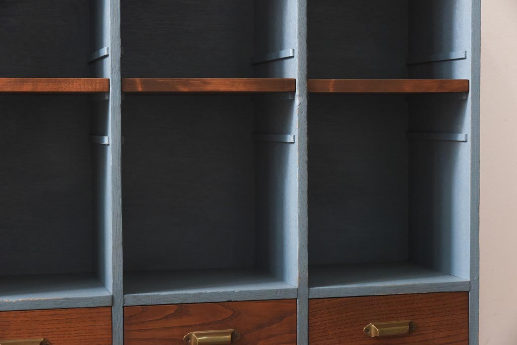 ペイント家具 リメイク品 シックな雰囲気漂う収納棚(ロッカー、オープンラック、引き出し)
