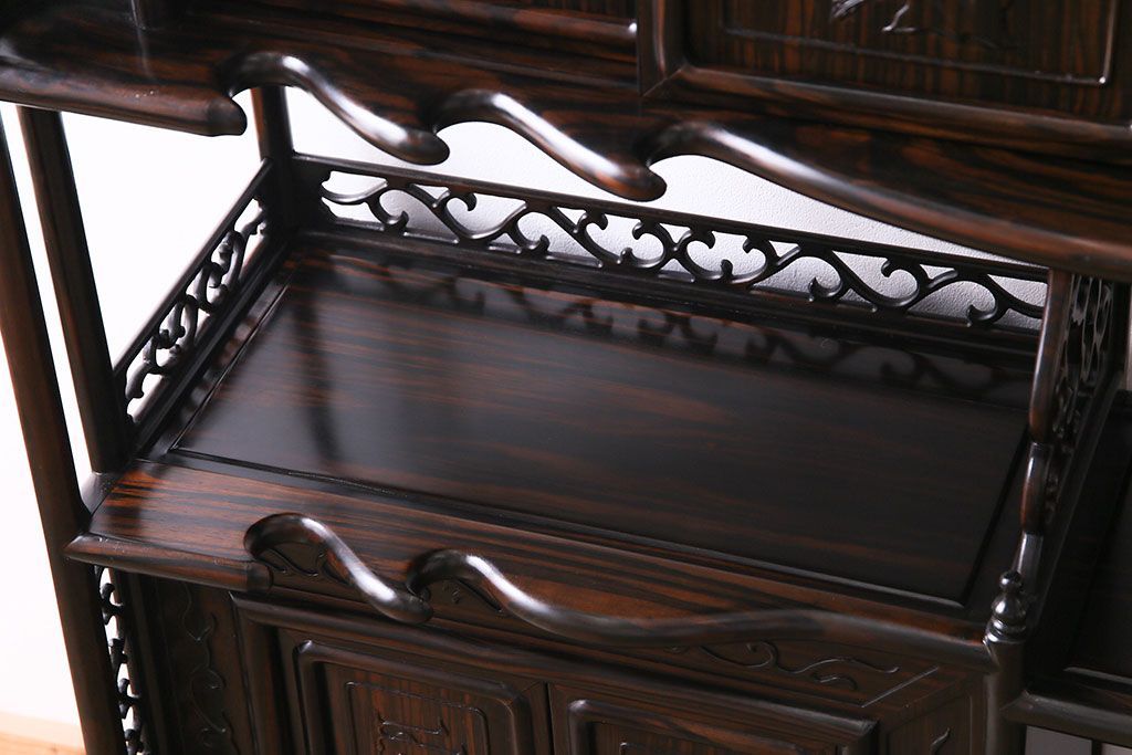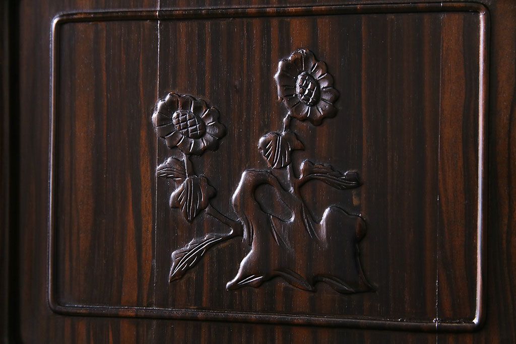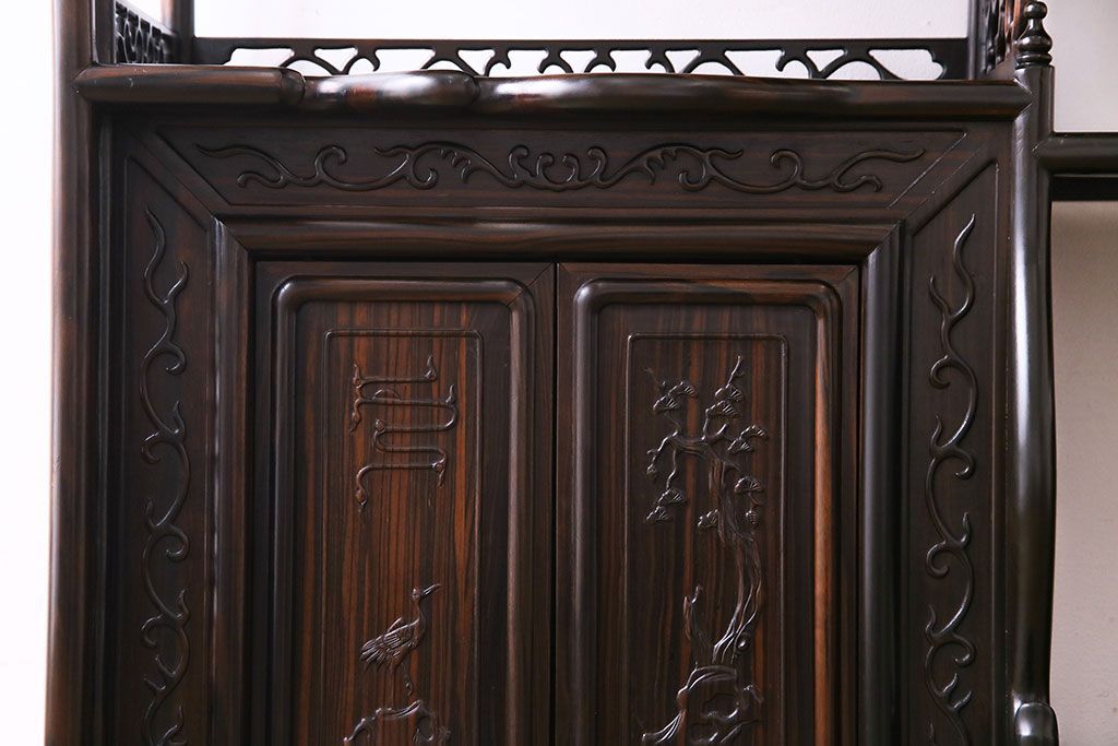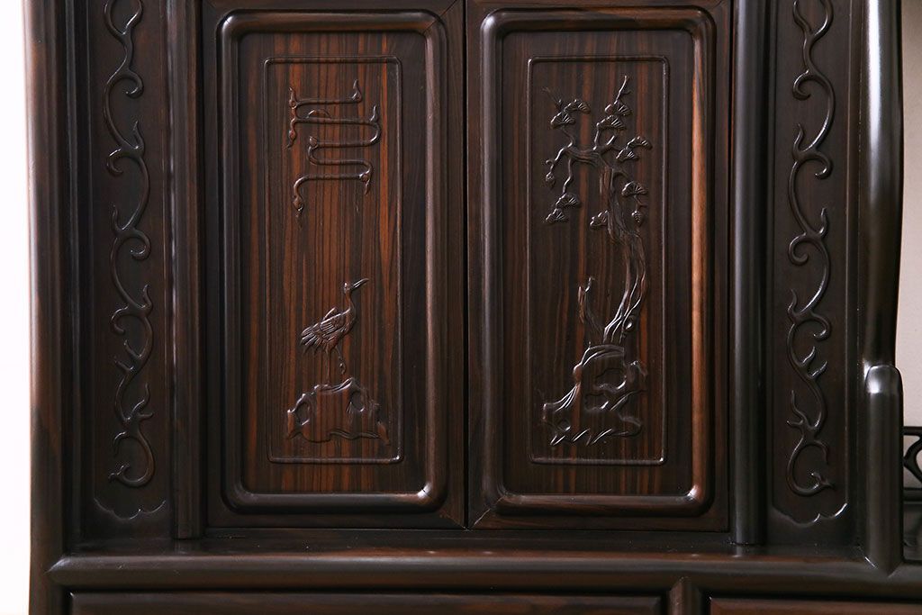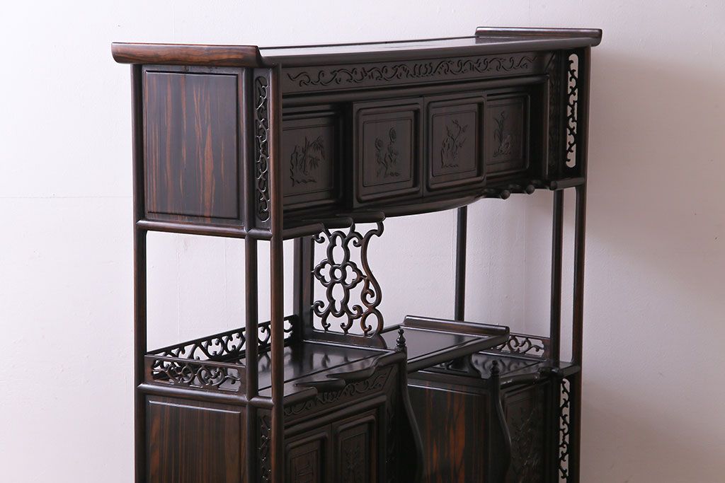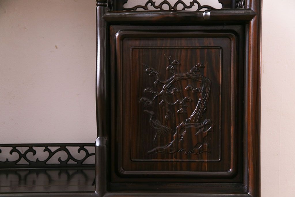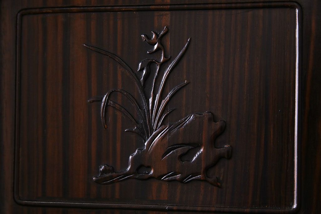 民芸家具 黒檀材 花鳥図 高級感漂う和の空間づくりにおすすめな飾り棚(茶棚、戸棚)