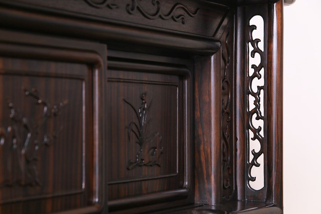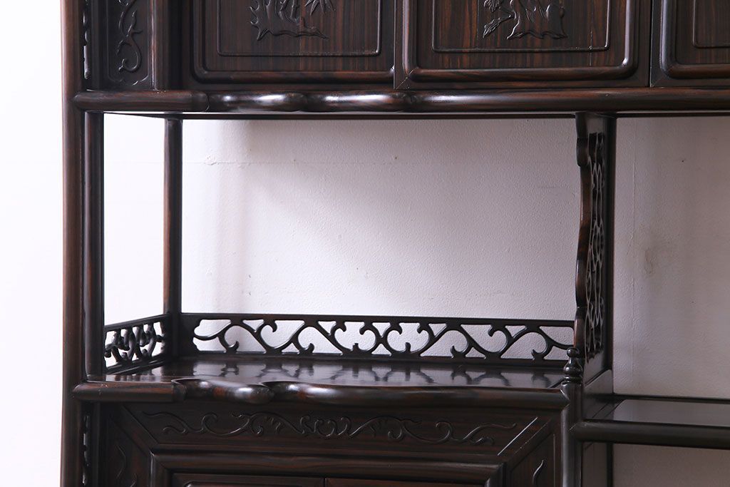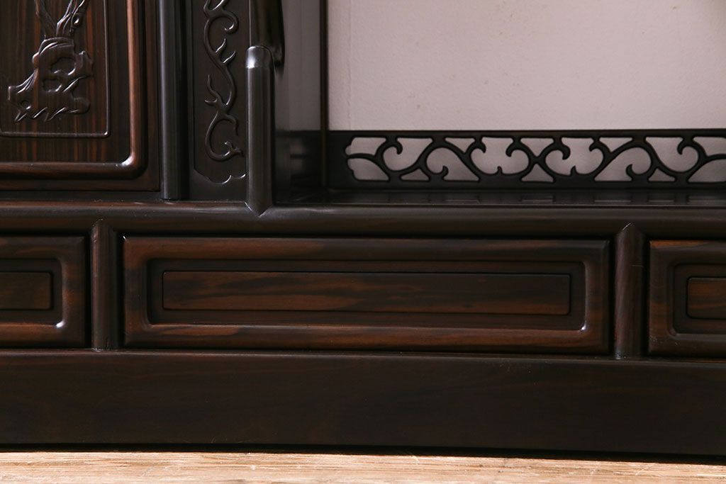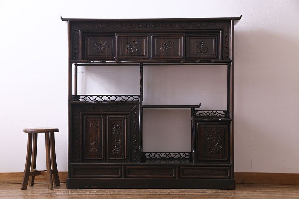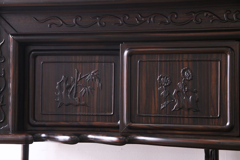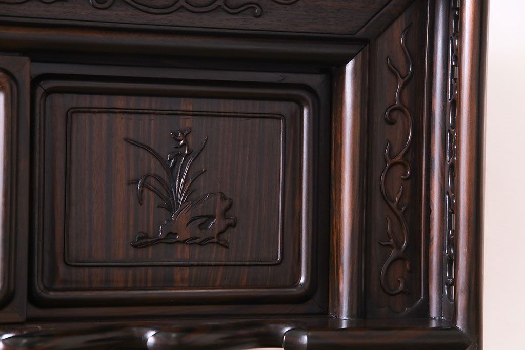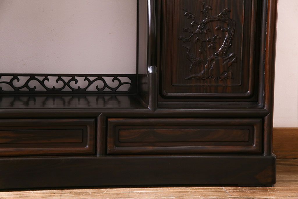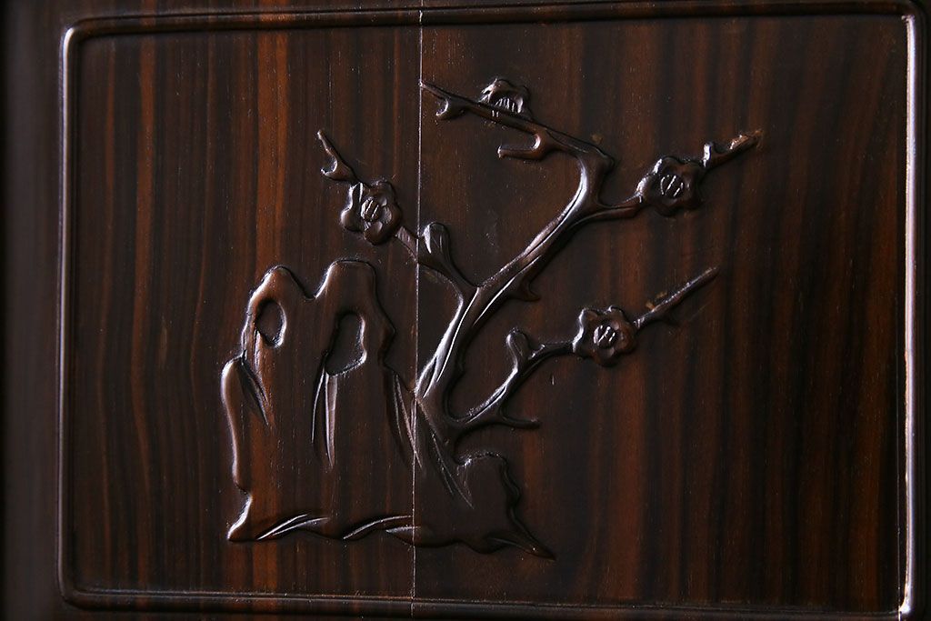 民芸家具 黒檀材 花鳥図 高級感漂う和の空間づくりにおすすめな飾り棚(茶棚、戸棚)