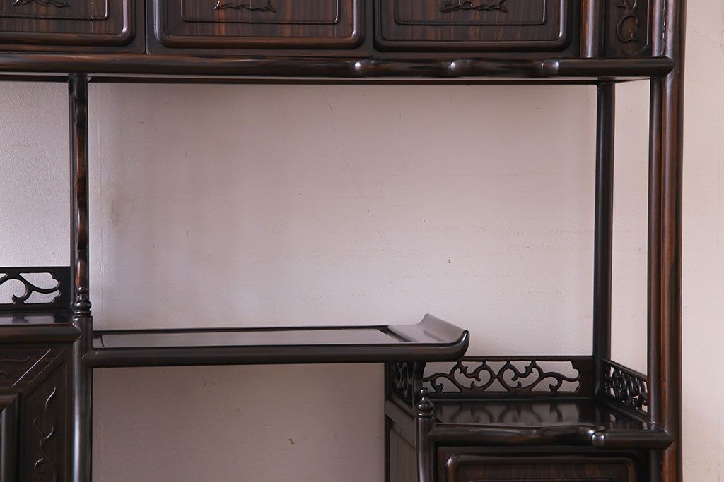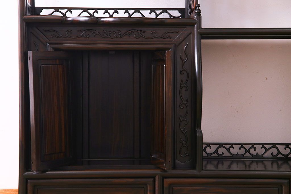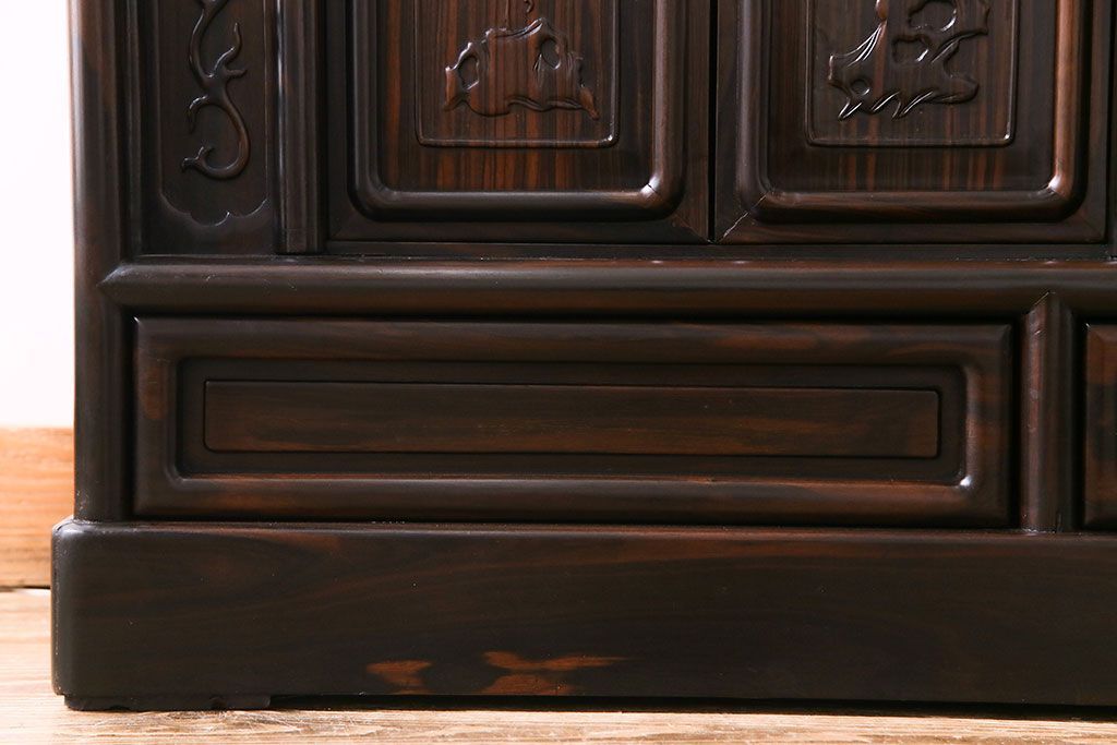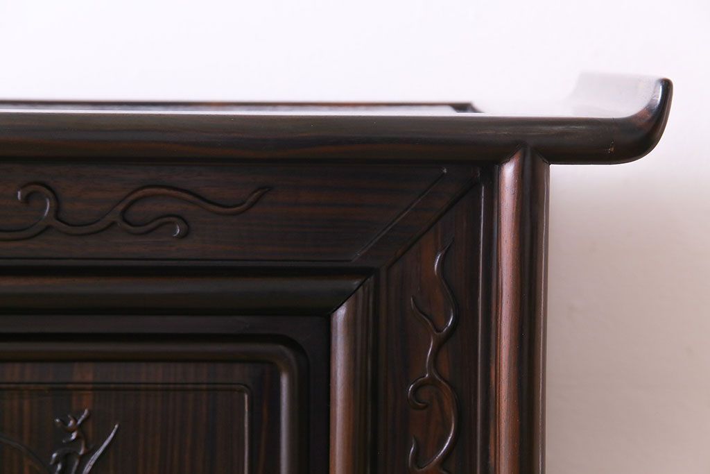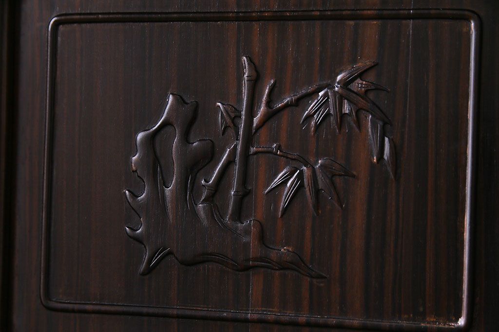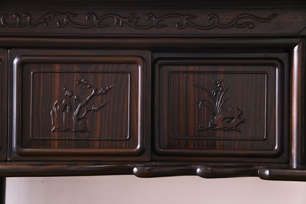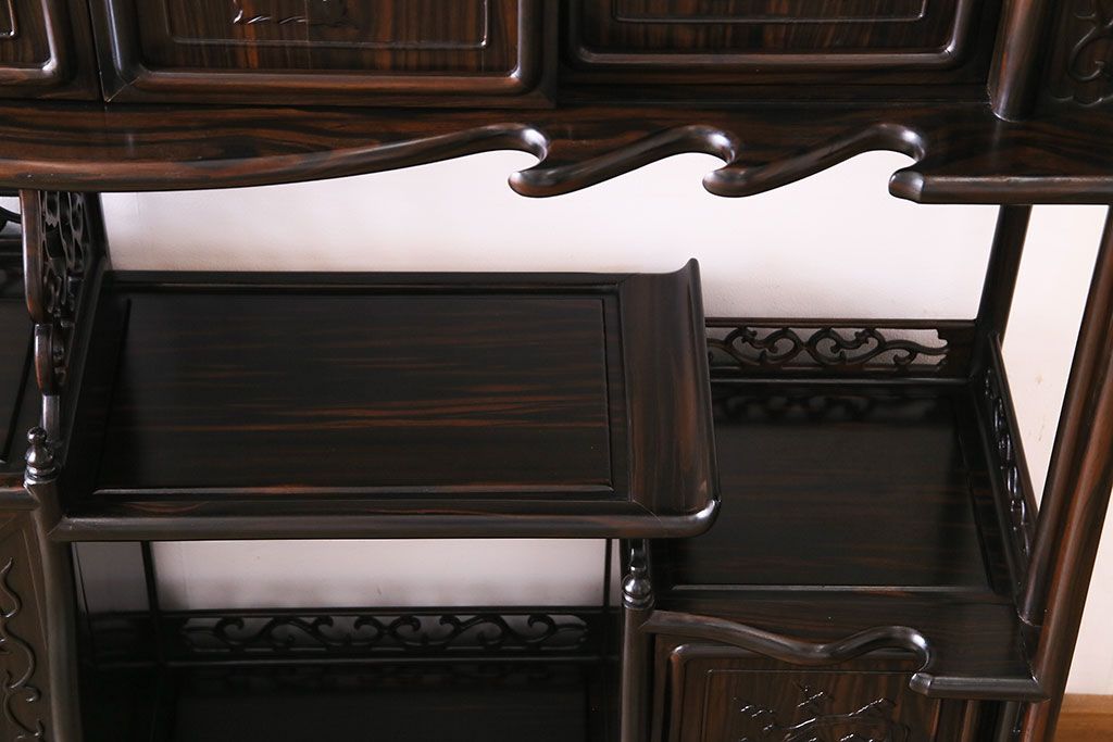 民芸家具 黒檀材 花鳥図 高級感漂う和の空間づくりにおすすめな飾り棚(茶棚、戸棚)