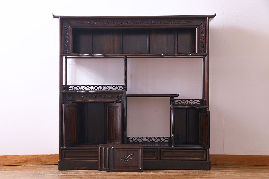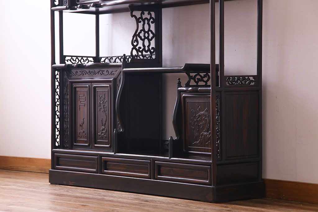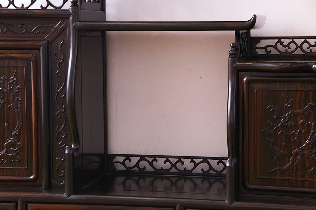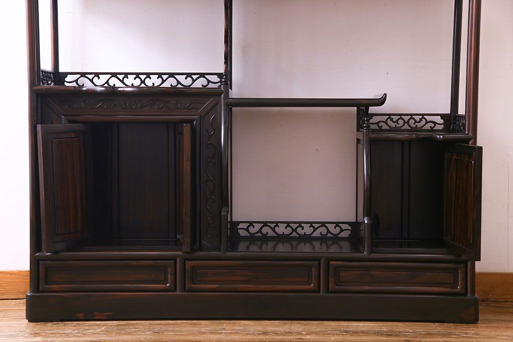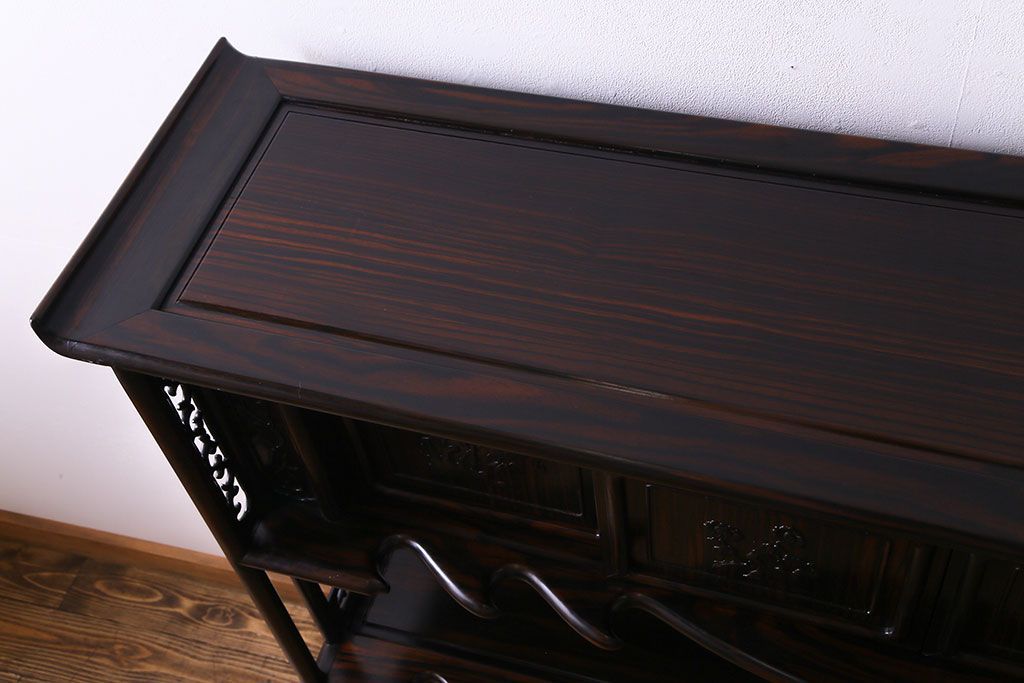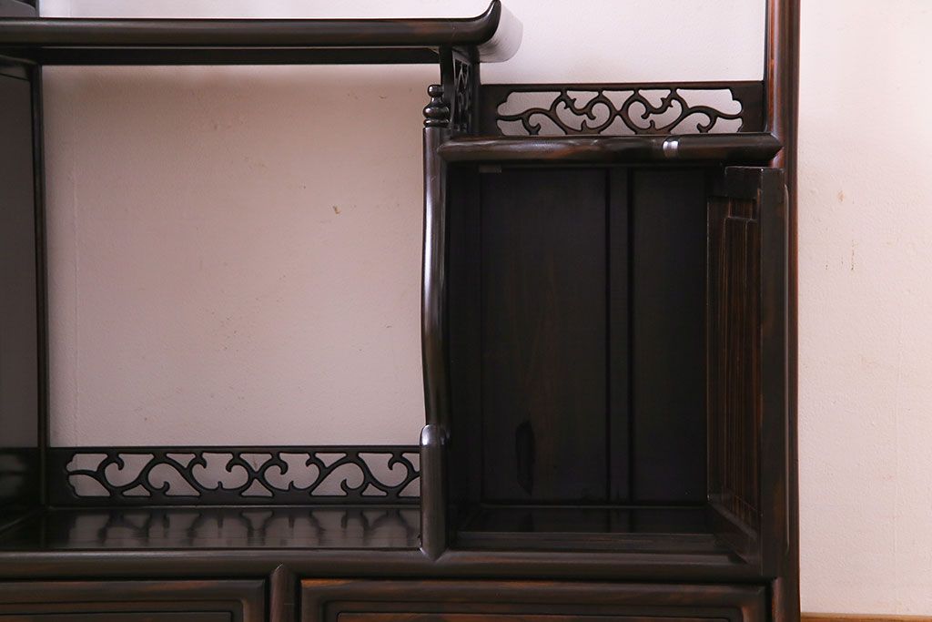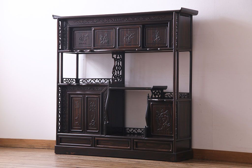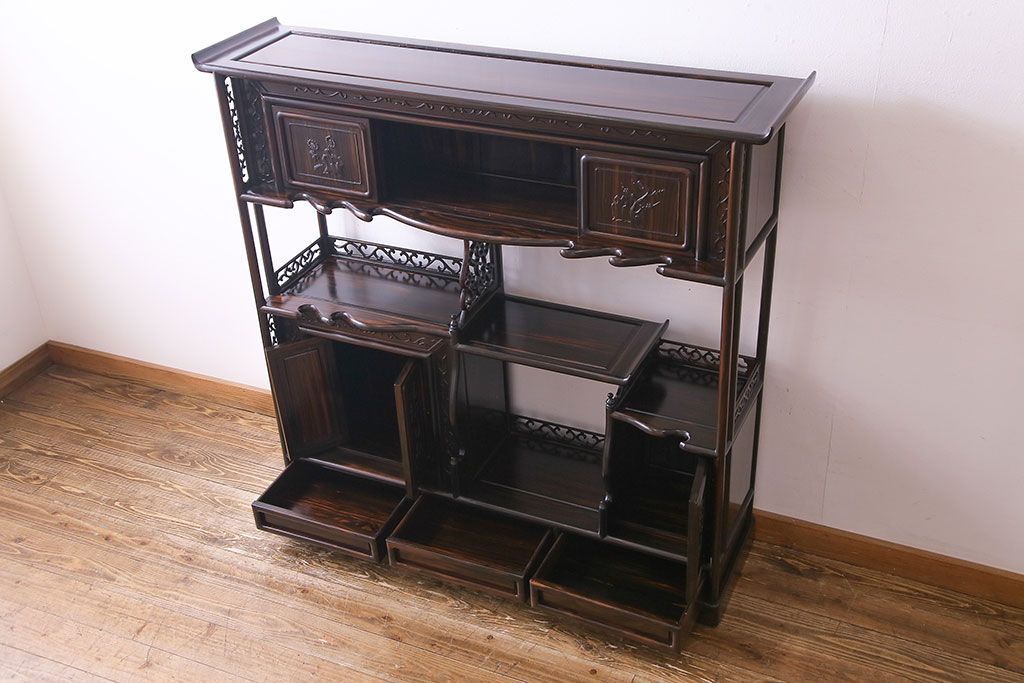 民芸家具 黒檀材 花鳥図 高級感漂う和の空間づくりにおすすめな飾り棚(茶棚、戸棚)