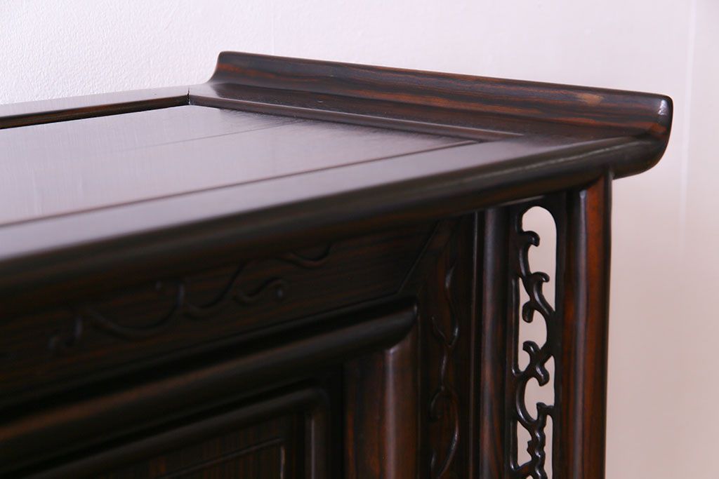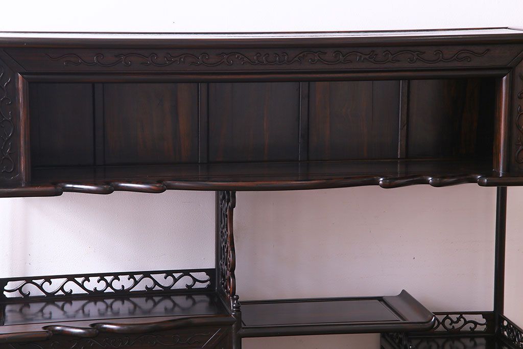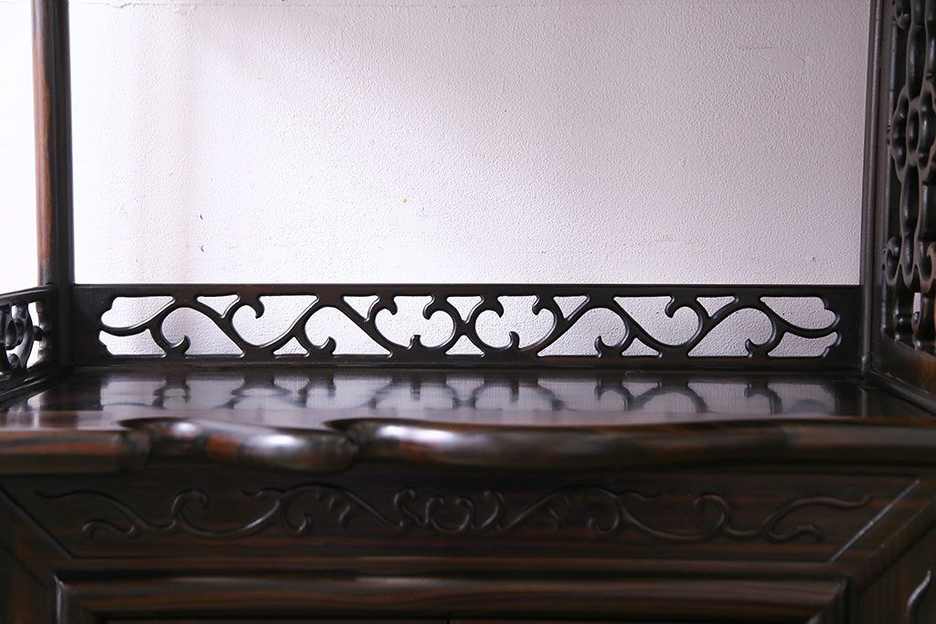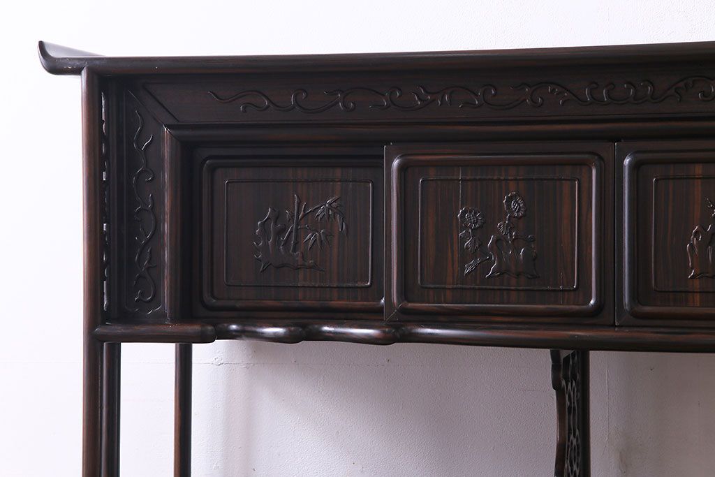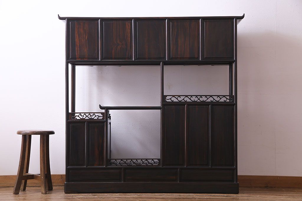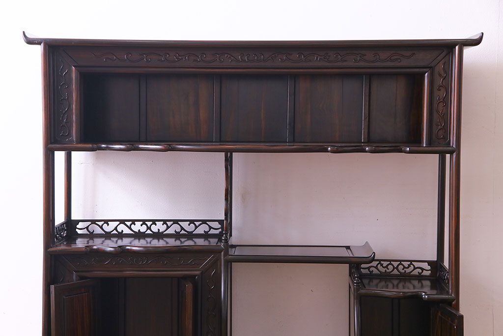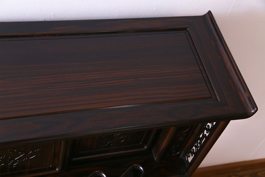 民芸家具 黒檀材 花鳥図 高級感漂う和の空間づくりにおすすめな飾り棚(茶棚、戸棚)
