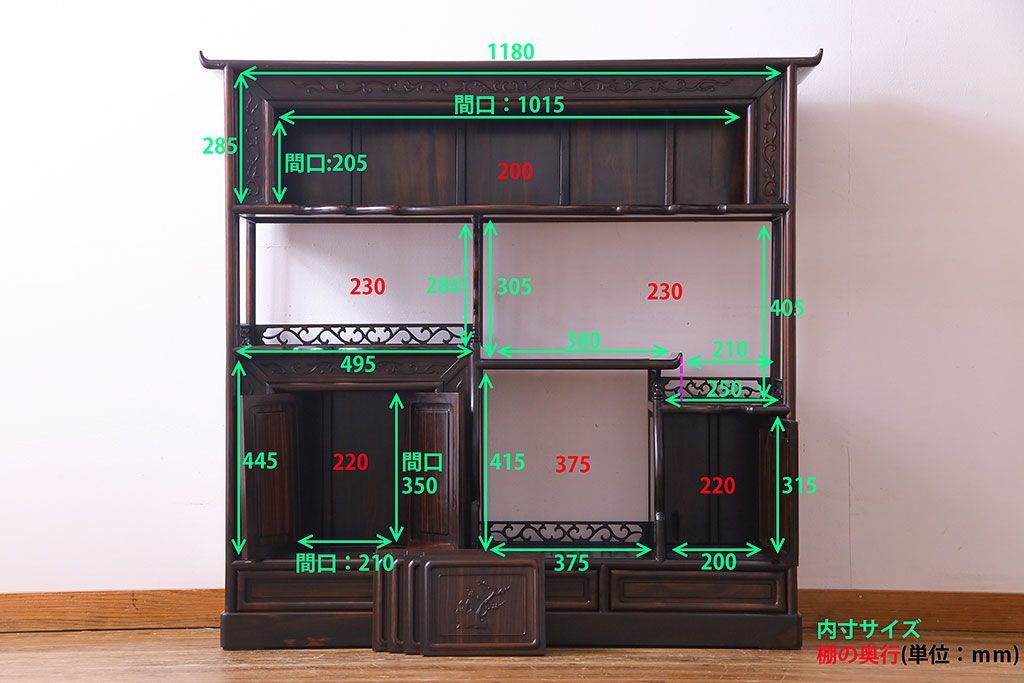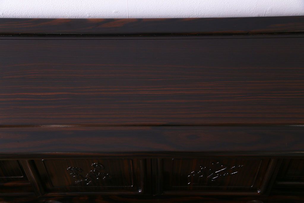 ラフジュ工房> 和箪笥 > 民芸家具 黒檀材 花鳥図 高級感漂う和の空間づくりにおすすめな飾り棚(茶棚、戸棚)
