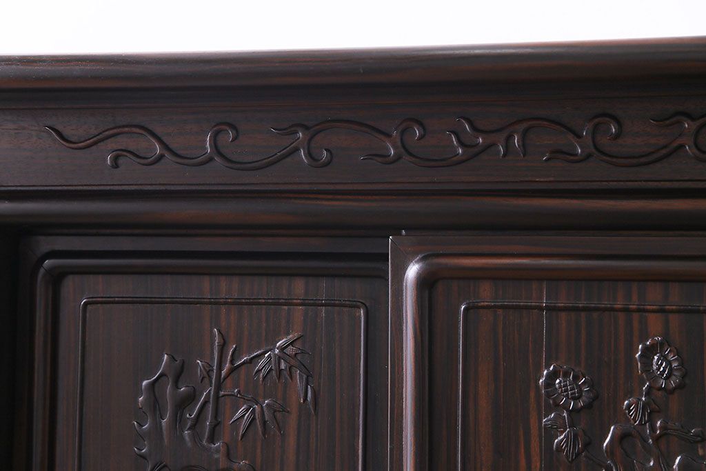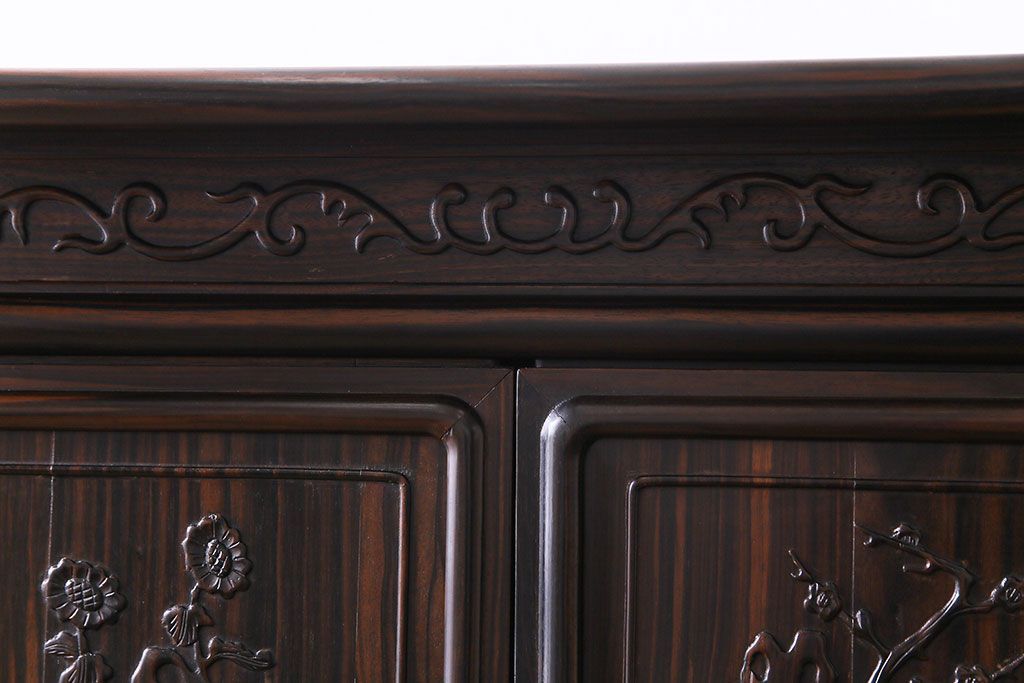 ラフジュ工房> 和箪笥> 茶箪笥・茶棚 > 民芸家具 黒檀材 花鳥図 高級感漂う和の空間づくりにおすすめな飾り棚(茶棚、戸棚)