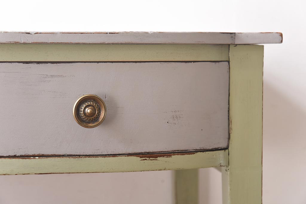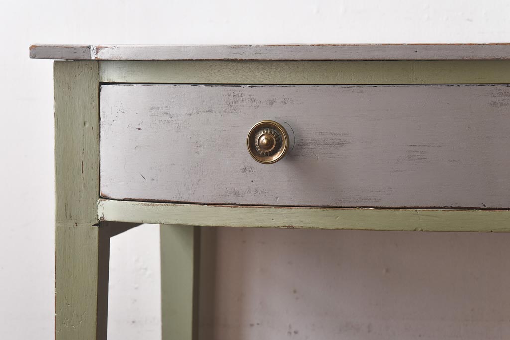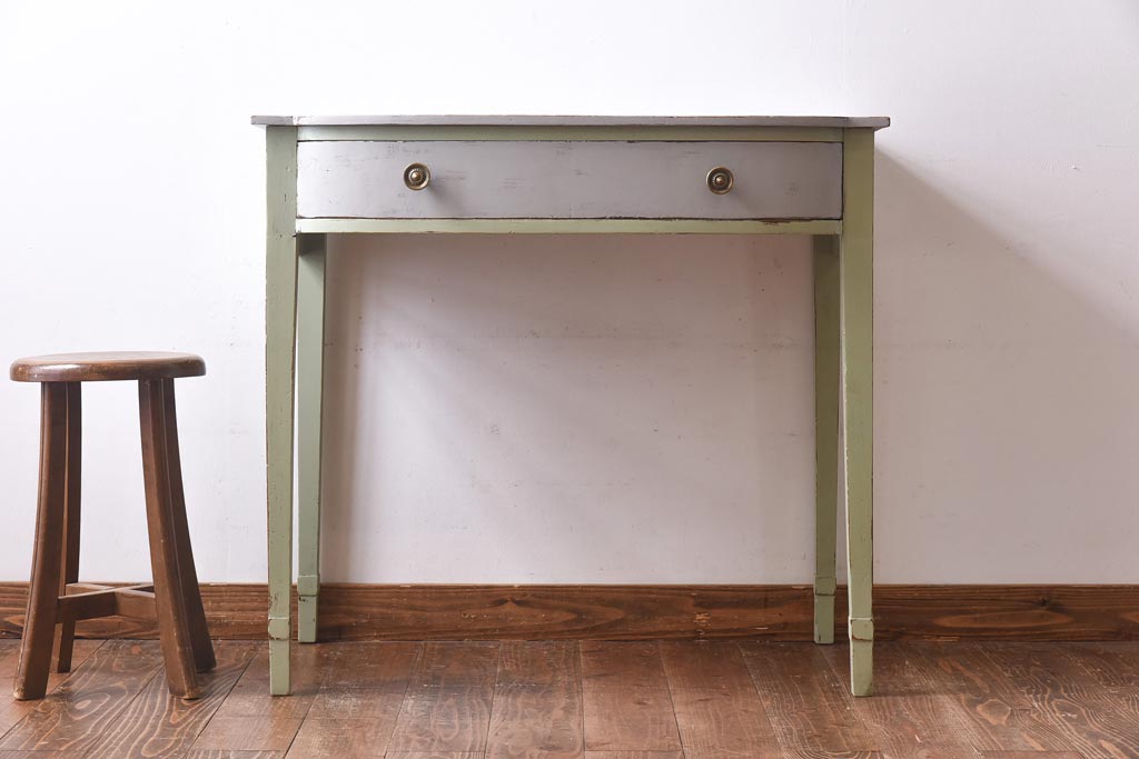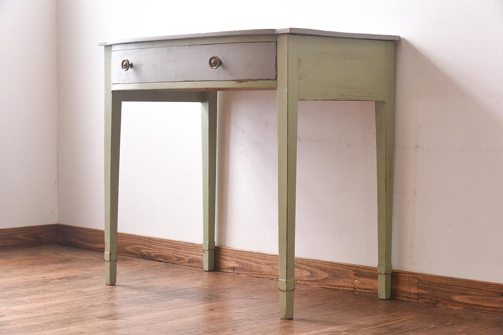 ペイント家具 シャビーなペイントカラーが魅力の小振りなコンソールテーブル(サイドテーブル、飾り台)