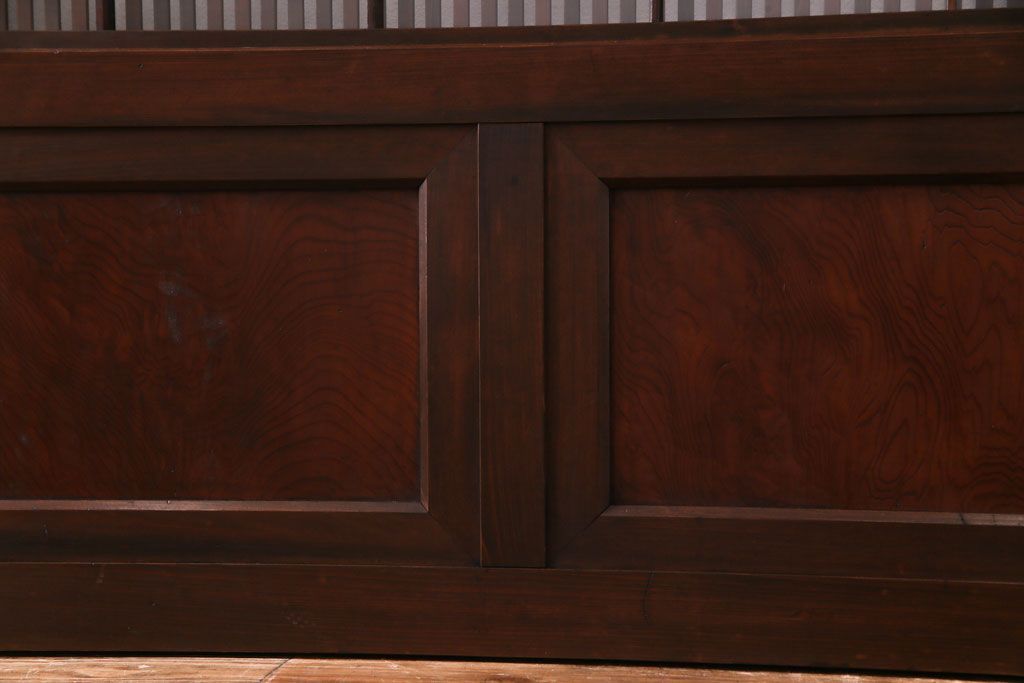 赤みがかったケヤキ材の腰板と、