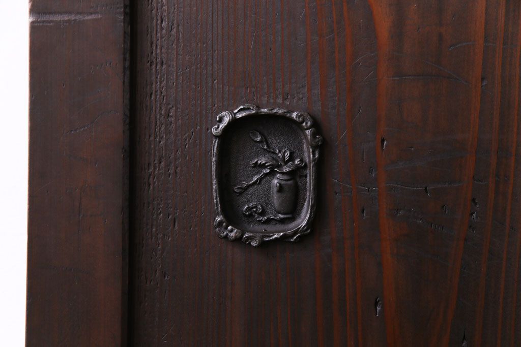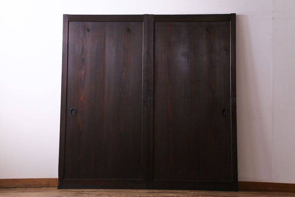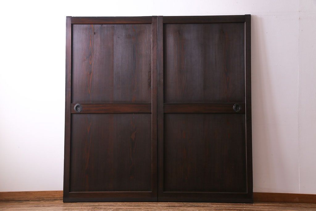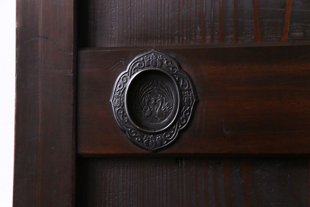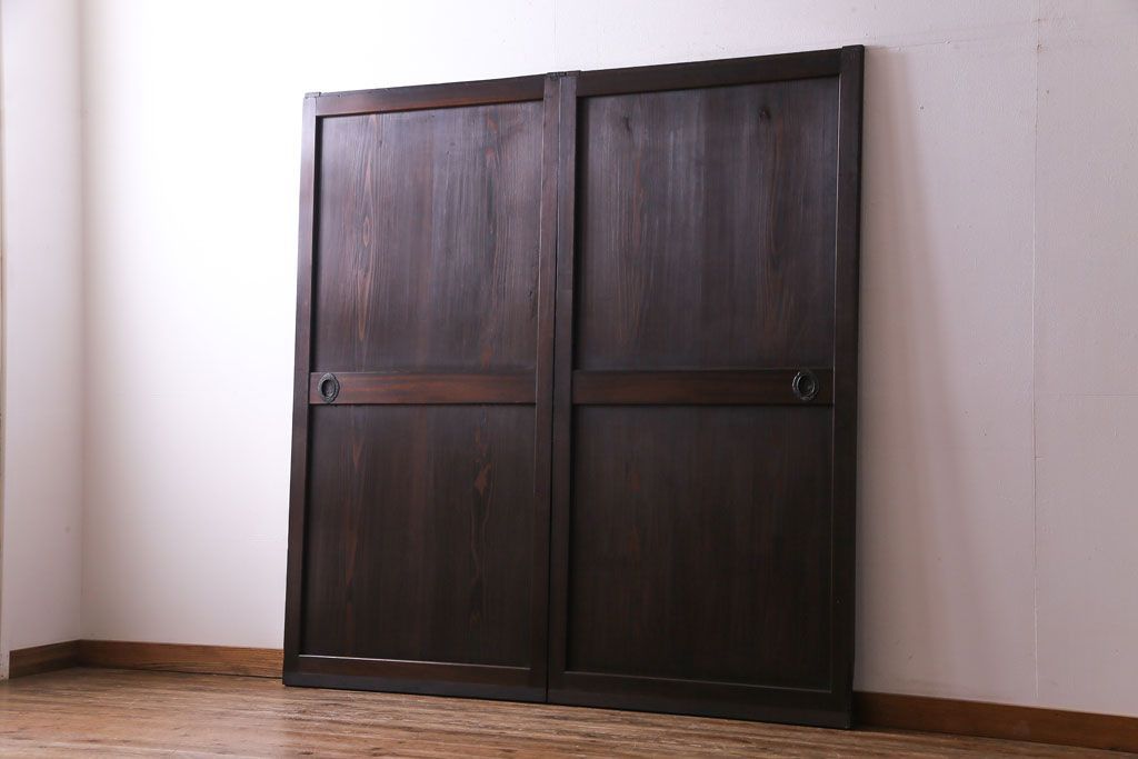 和製アンティーク 引手の意匠がおしゃれな明治期の帯戸(板戸、引き戸)2枚セット