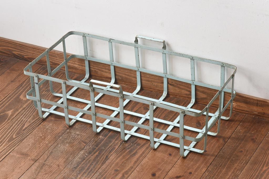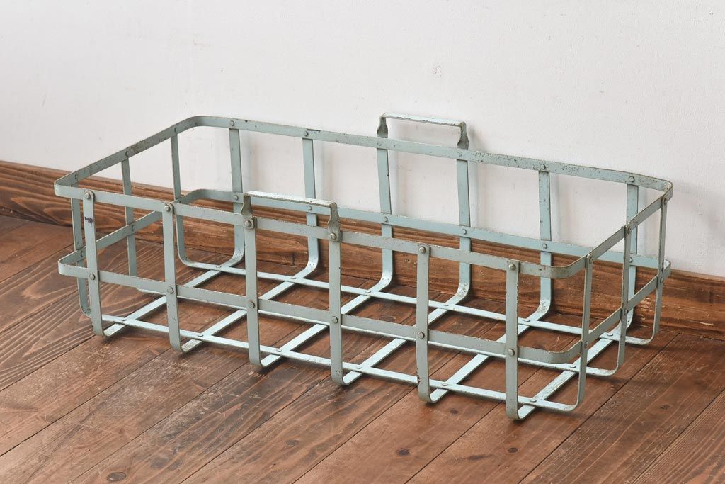 アンティーク雑貨 昭和中期 シャビー質感がお洒落なアイアン製のカゴ(小物入れ、バスケット)(3)