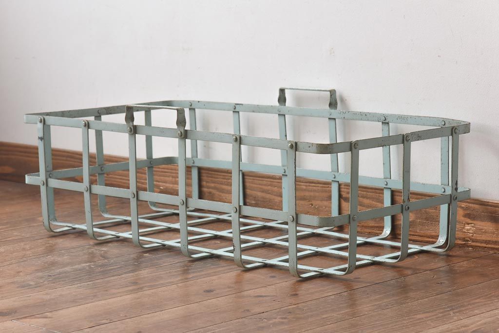 ラフジュ工房> 小物収納・トランク> バスケット > アンティーク雑貨 昭和中期 シャビー質感がお洒落なアイアン製のカゴ(小物入れ、バスケット)(3)