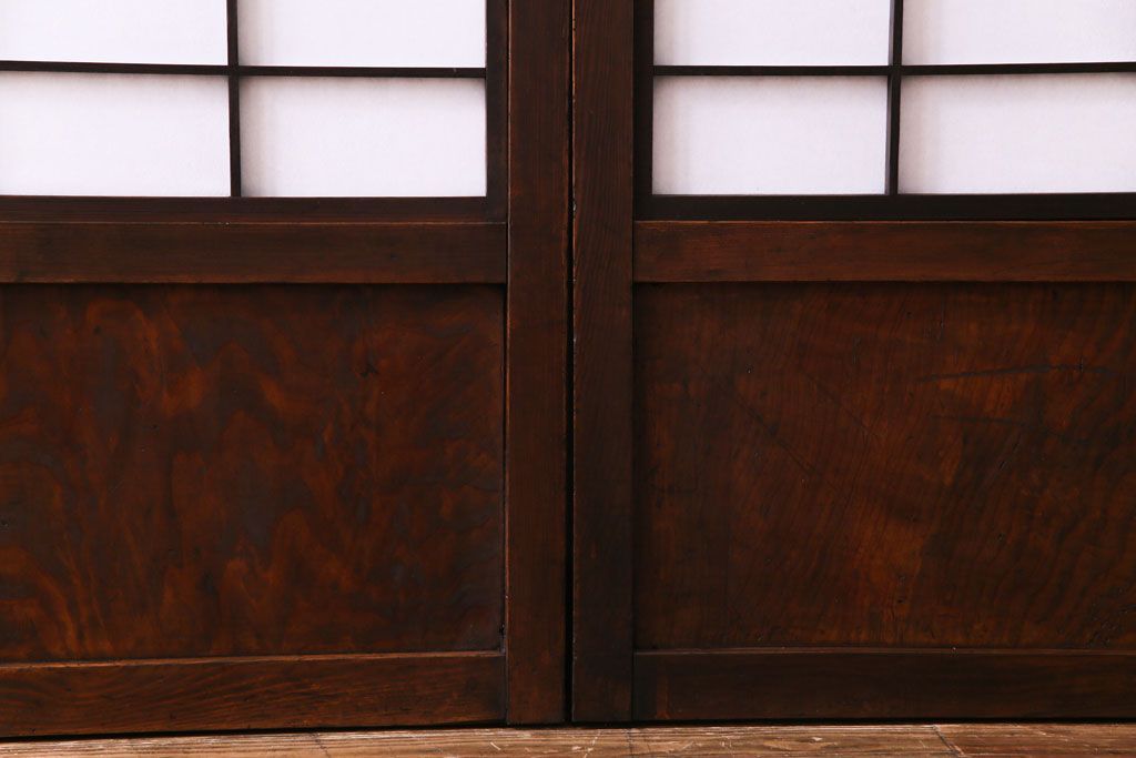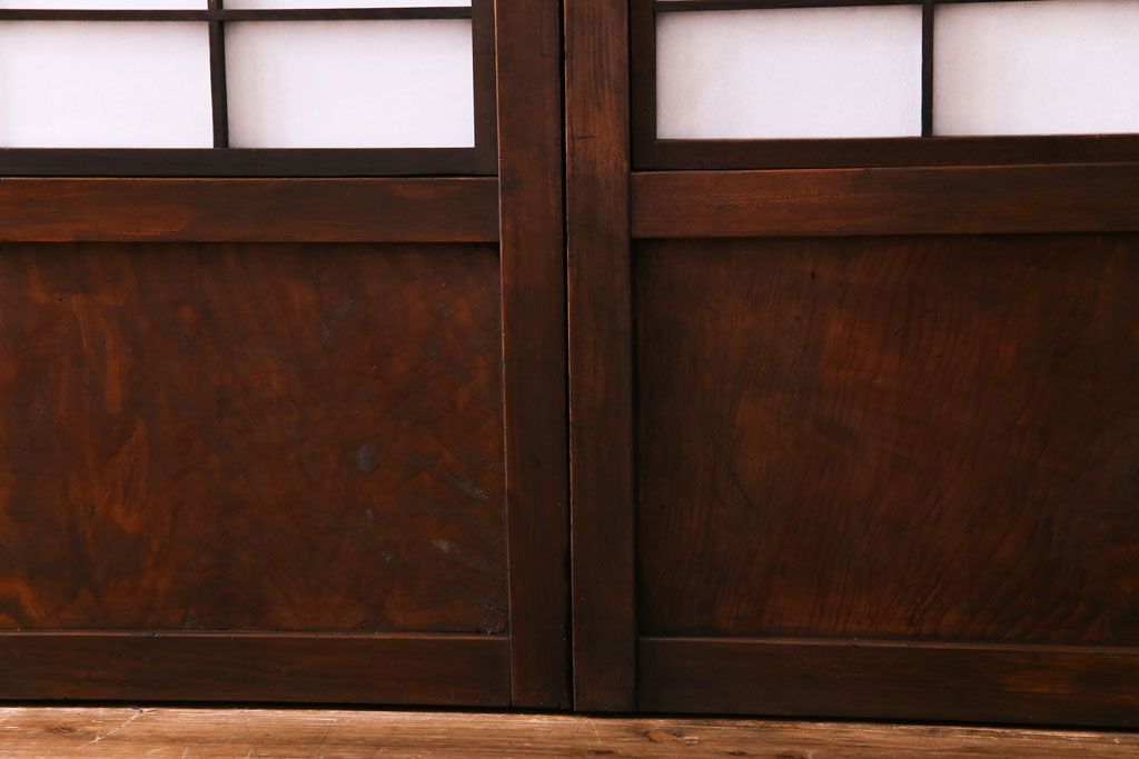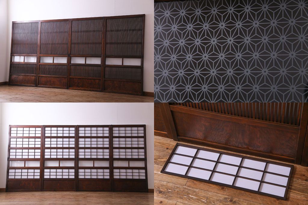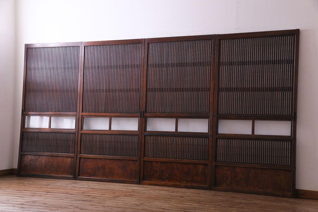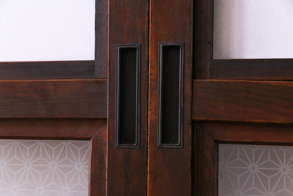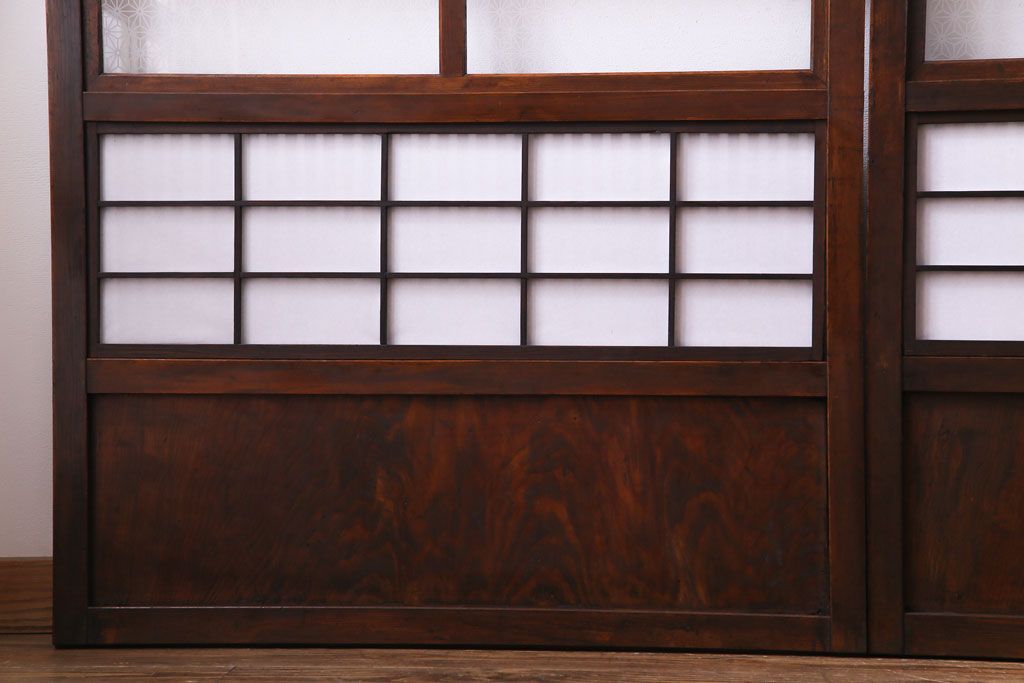 和製アンティーク 裏障子付き 花ガラスが上品な格子戸(ガラス帯戸、引き戸)4枚セット