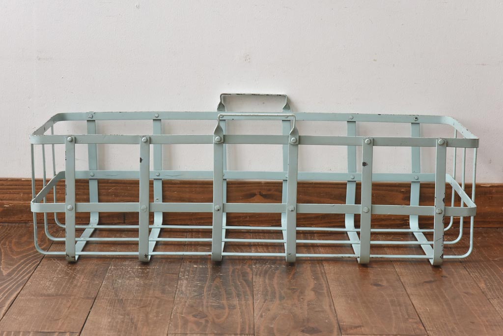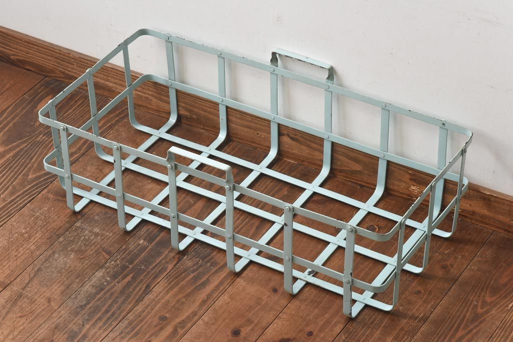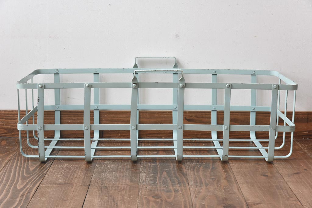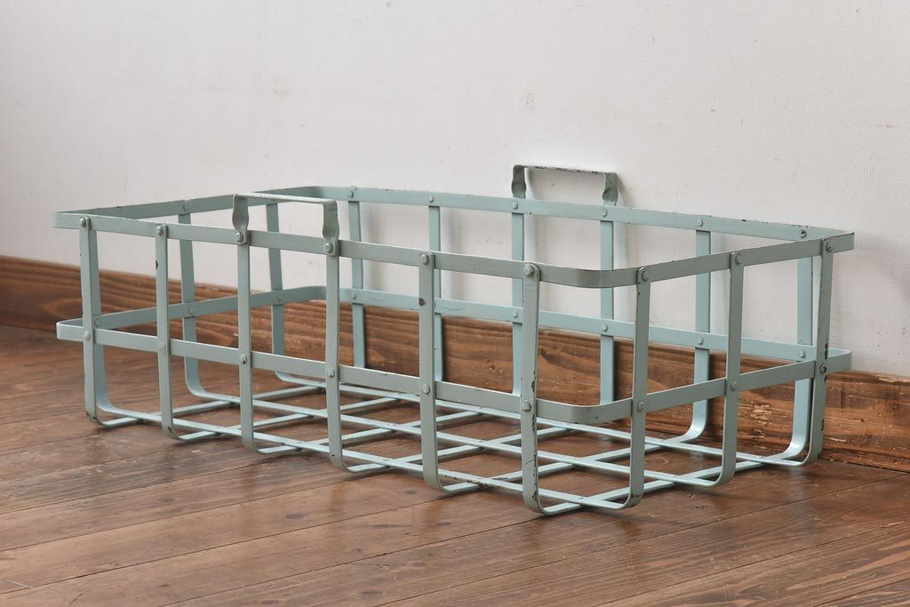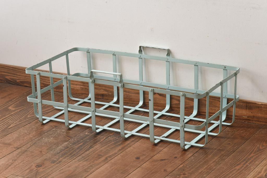 アンティーク雑貨 昭和中期 シャビー質感がお洒落なアイアン製のカゴ(小物入れ、バスケット)(1)