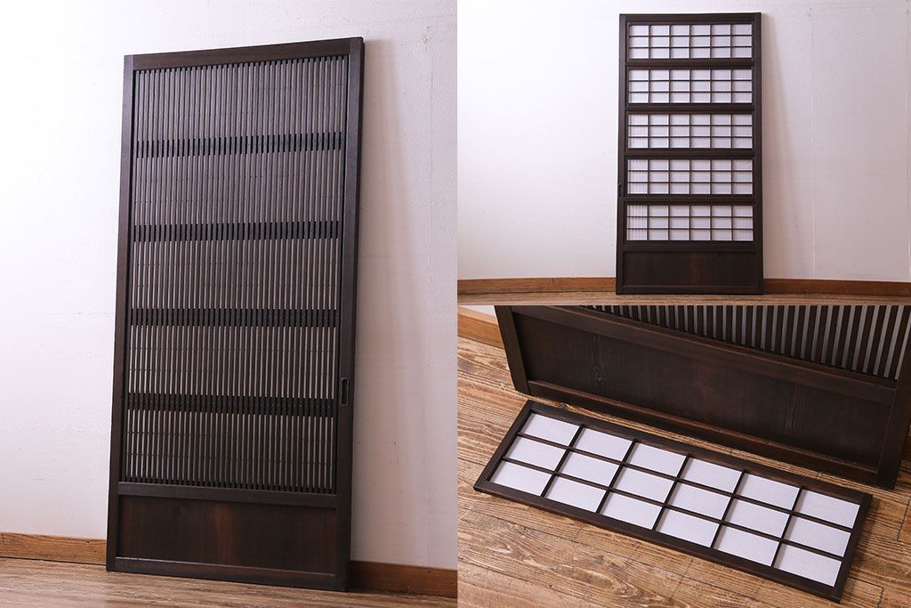 アンティーク モダンな雰囲気漂う裏障子付き格子戸1枚(障子戸、引き戸、建具)