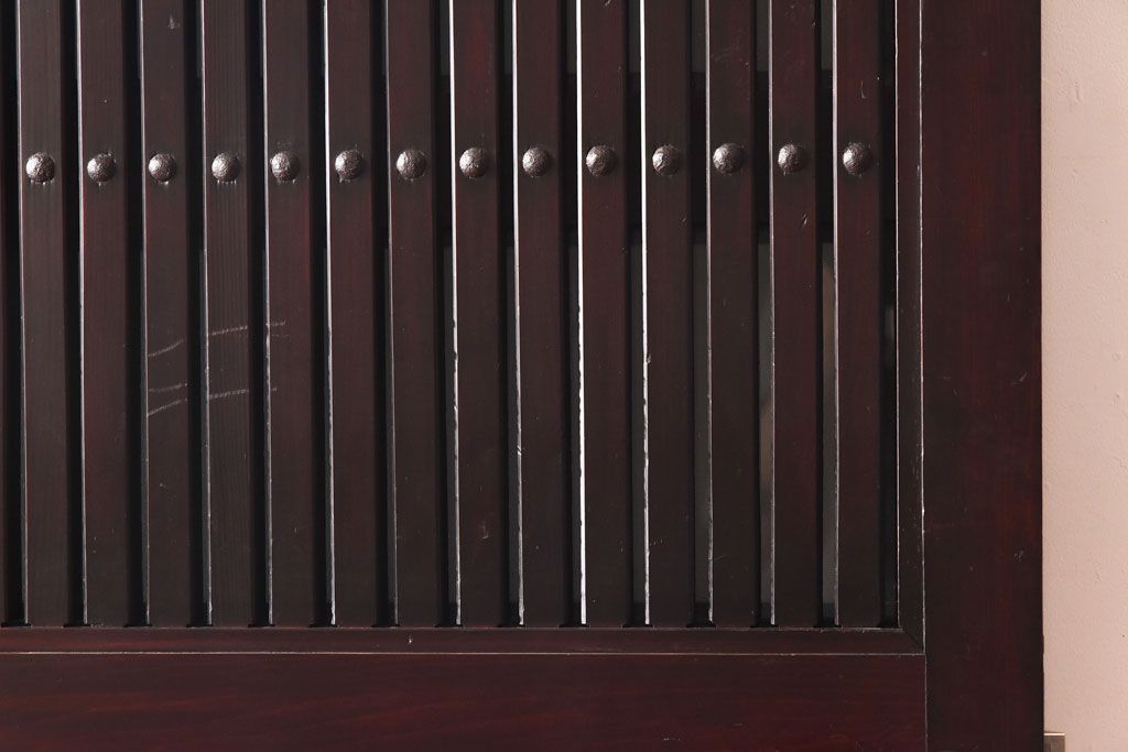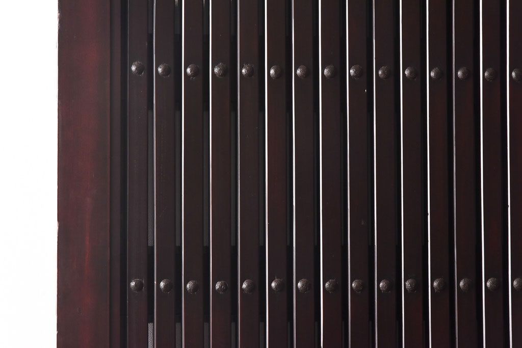 和製アンティーク 明治期 大振り金具が存在感を放つ富山蔵戸リメイクドア(木製扉、建具、玄関戸)です。