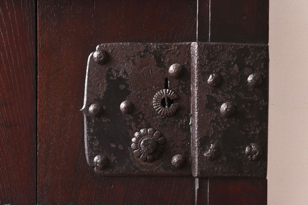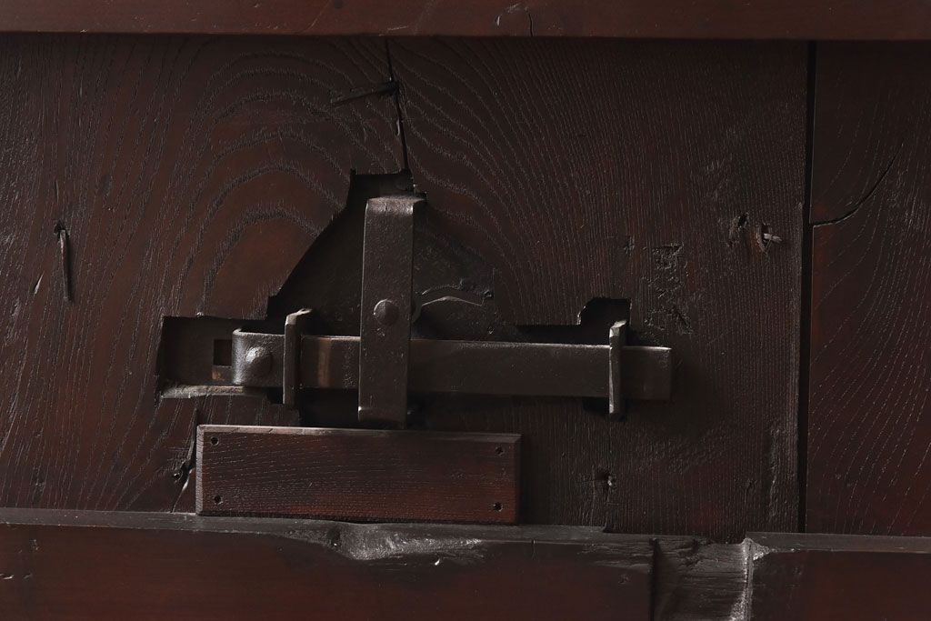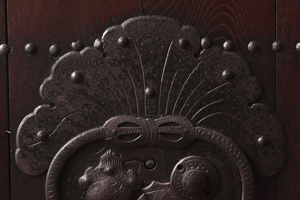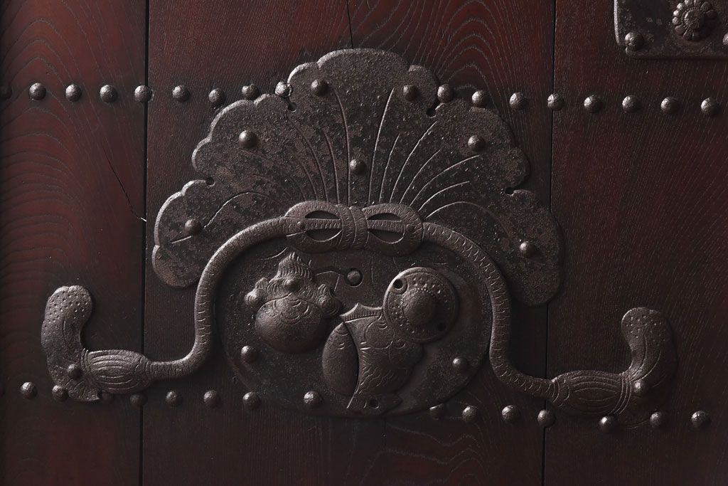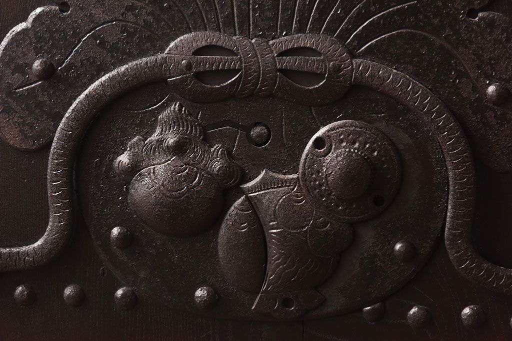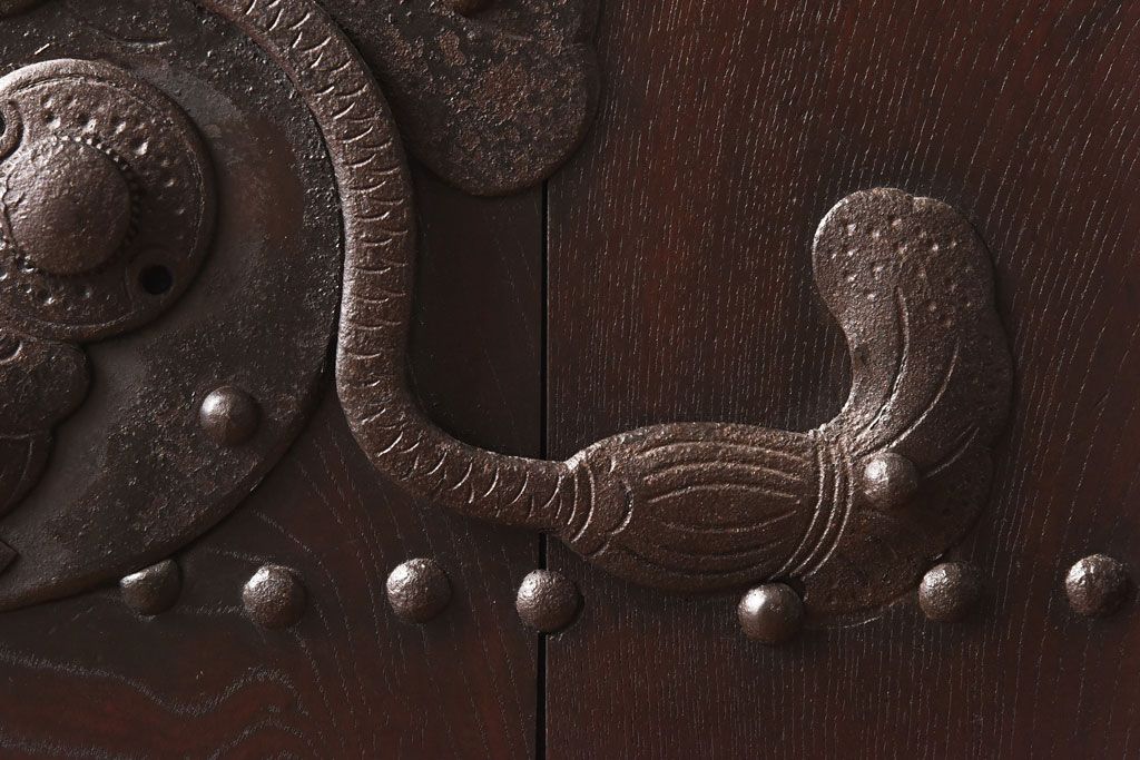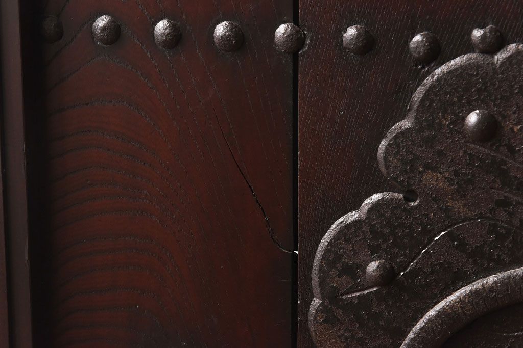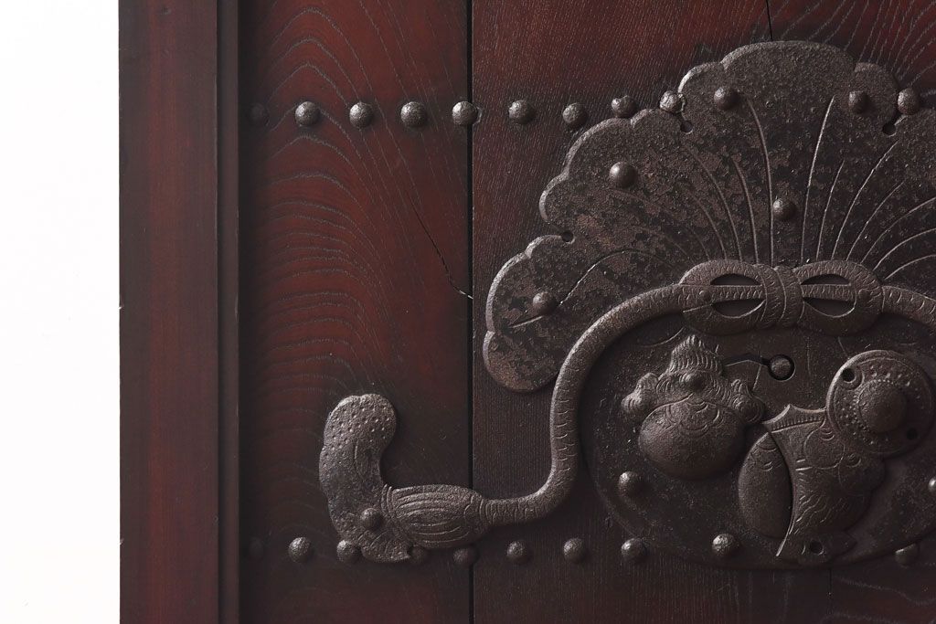 和製アンティーク 明治期 大振り金具が存在感を放つ富山蔵戸リメイクドア(木製扉、建具、玄関戸)
