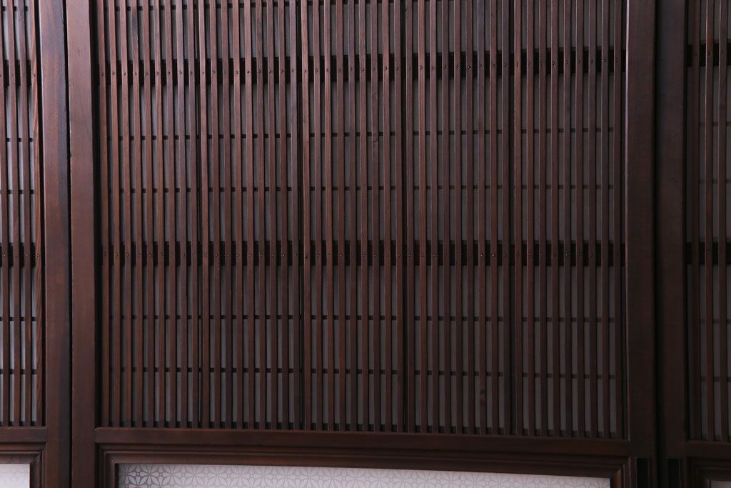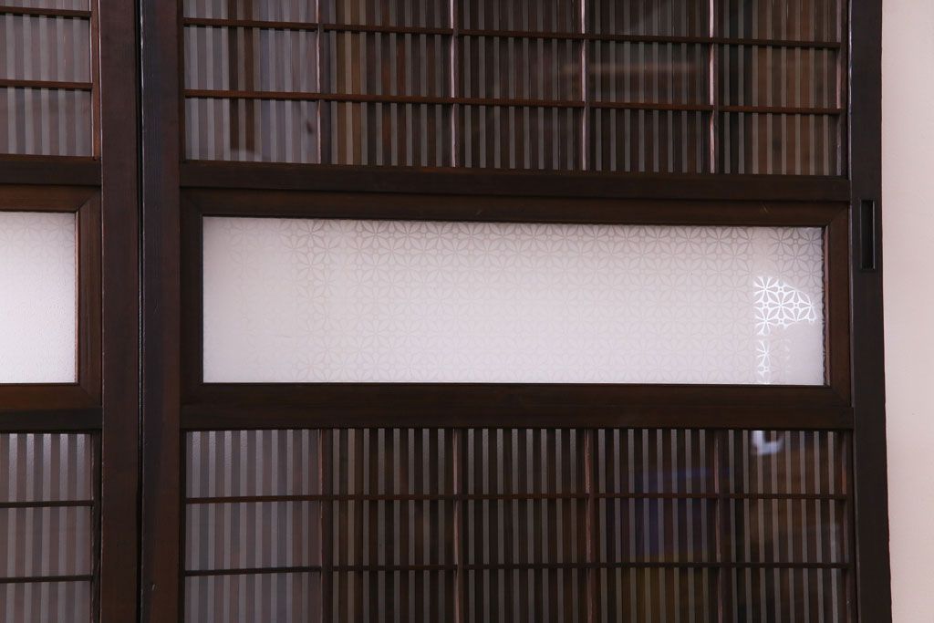 格子の裏面は板ガラスを裏障子の枠で挟み、固定しています。