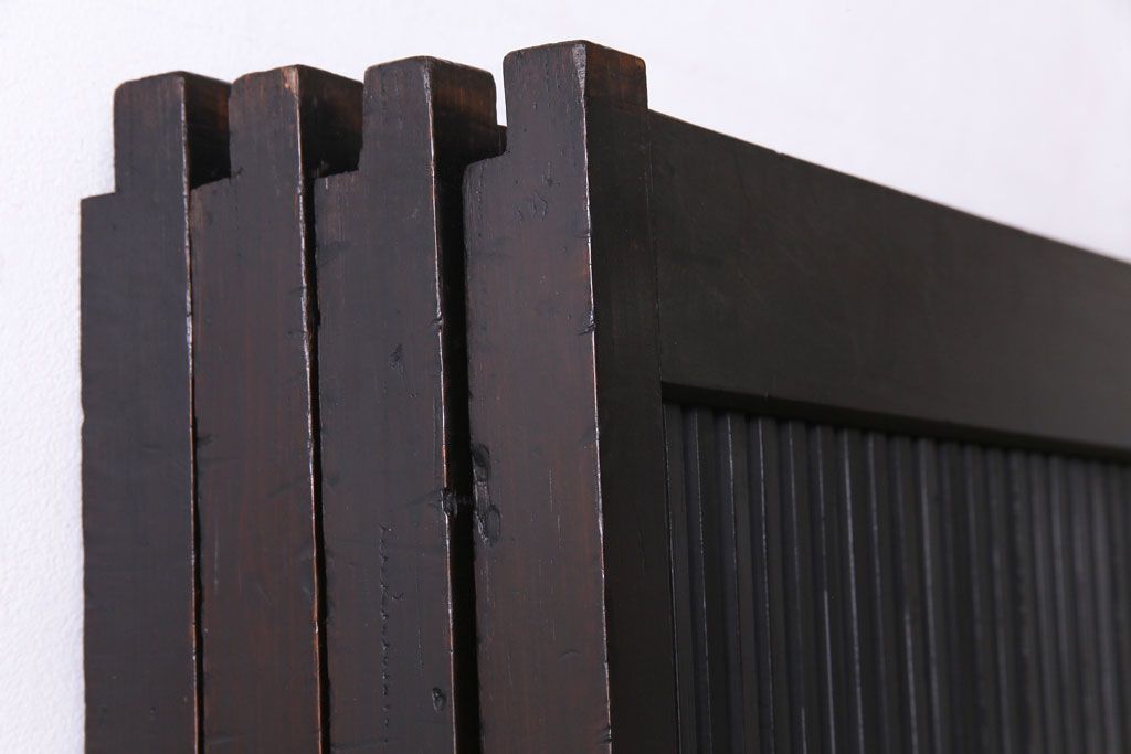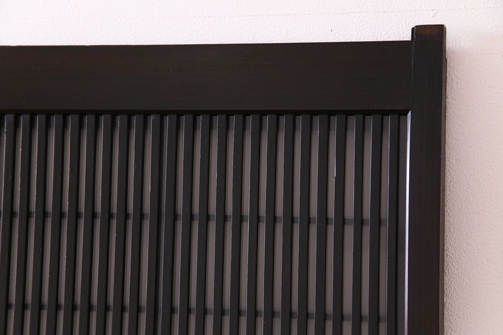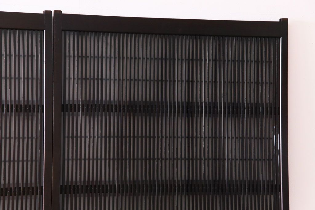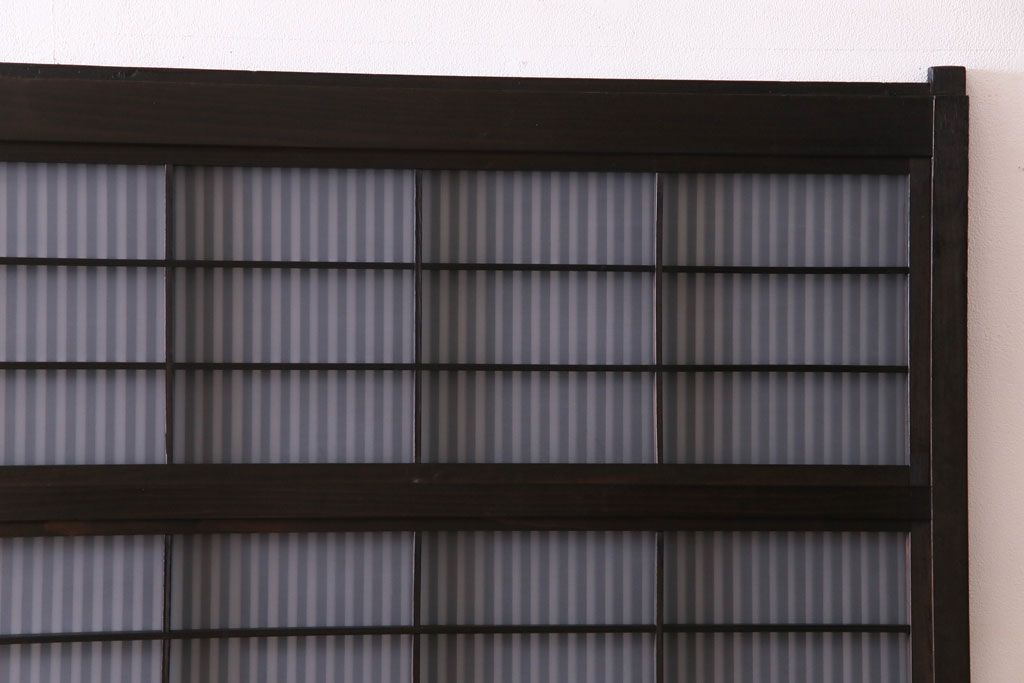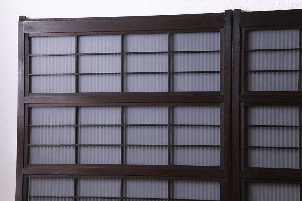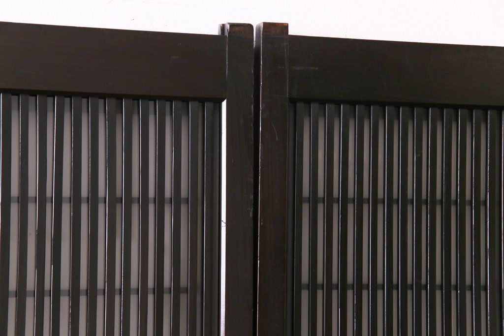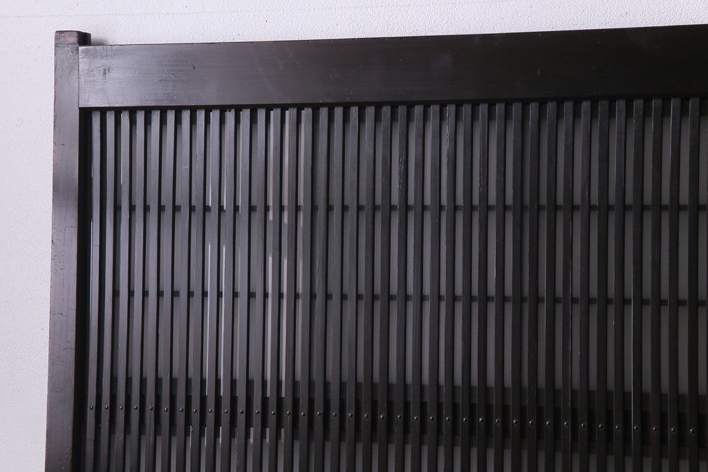 ドア・建具> 格子戸 > 和製アンティーク 板ガラス裏障子留め 濃い色味の細い縦桟が和モダンの雰囲気を漂わせる格子戸(仕切り戸、引き戸、建具)4枚組
