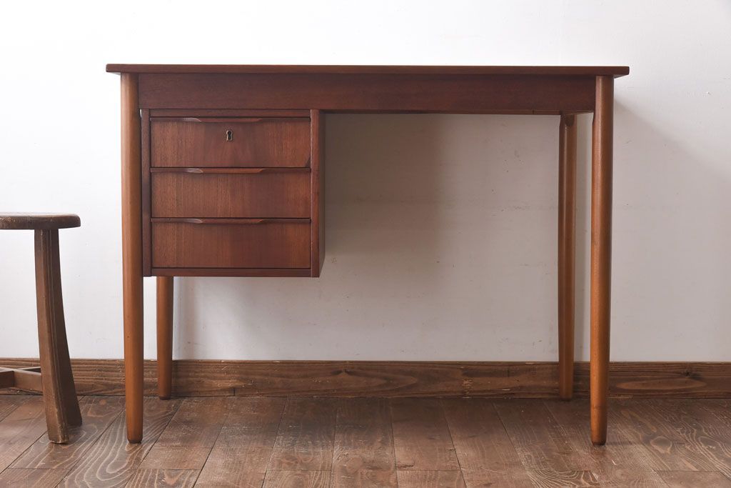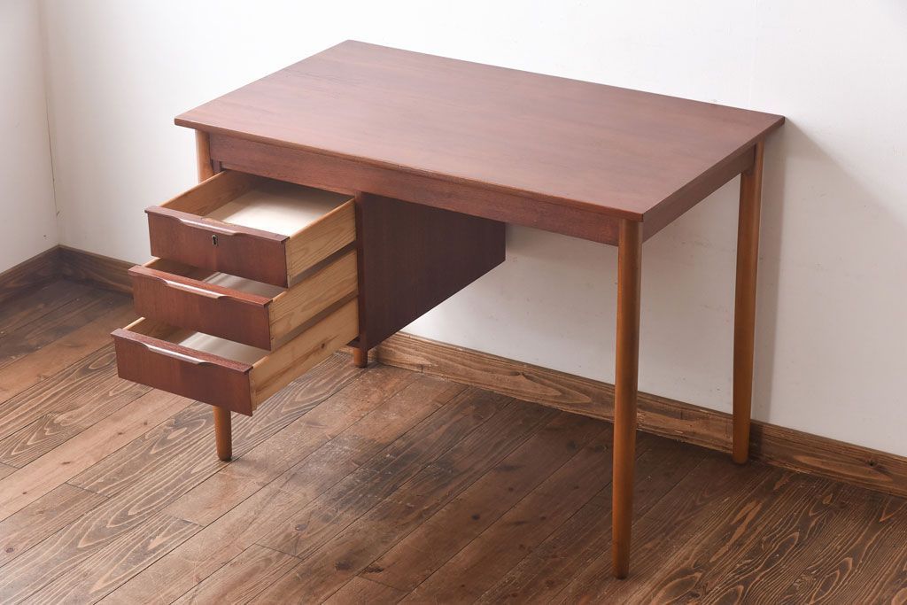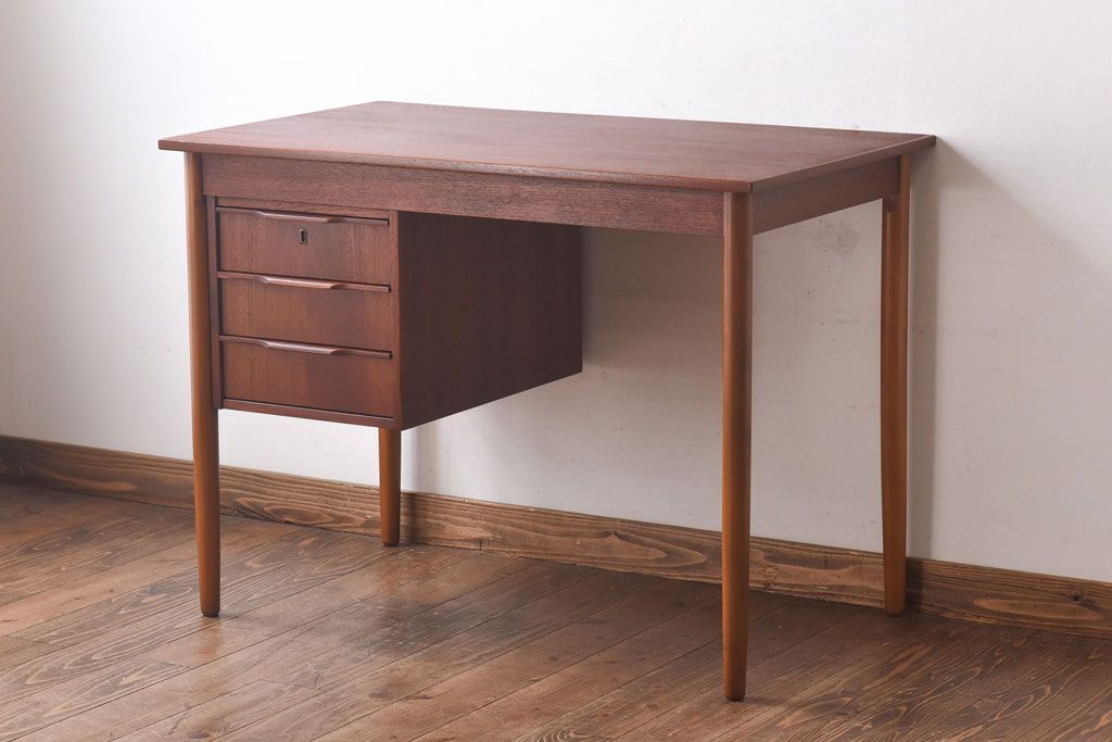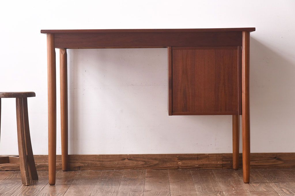 ビンテージ家具 北欧ヴィンテージ チーク材 細身のデザインが空間になじむワークデスク(机、在宅ワーク、在宅用片袖机)