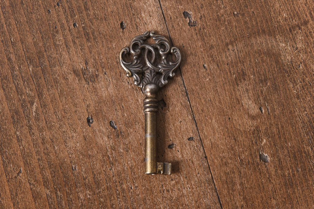 鍵は付属します。画像にありますように、袋に入れお付けします。スムーズに動くように調整していますが、あくまでも古いものや中古品ですので、長期の使用保証は出来かねます。ご購入後不具合が発生した場合は、当店でサポートさせていただきますので、お気軽にご相談くださいませ。