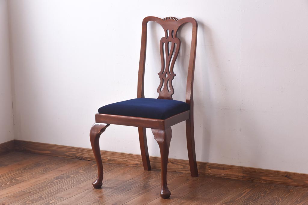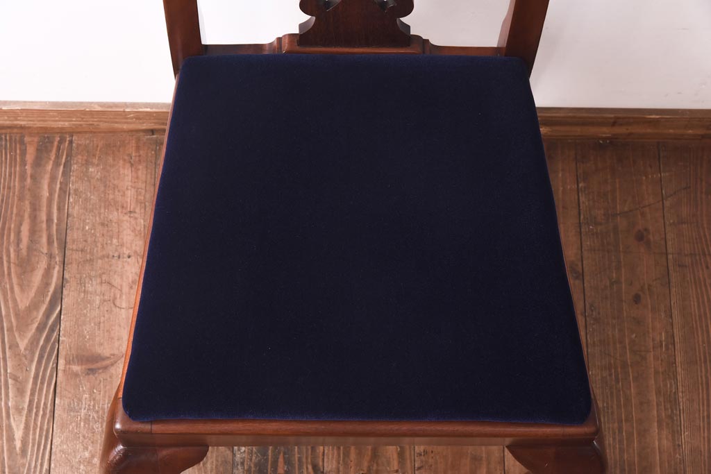アンティーク家具 イギリスアンティーク ウォールナット材 透かし彫りが上品なチェア(椅子、ダイニングチェア、ワークチェア)(2)