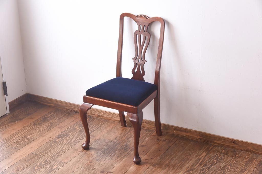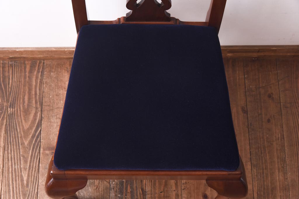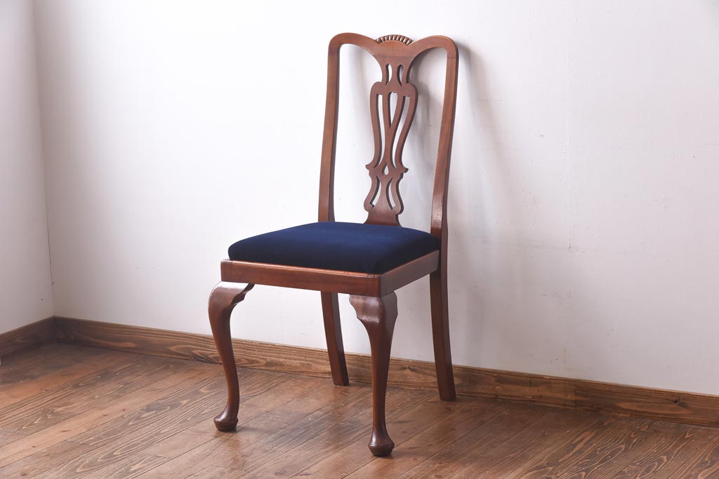 アンティーク家具 イギリスアンティーク ウォールナット材 透かし彫りが上品なチェア(椅子、ダイニングチェア、ワークチェア)(3)