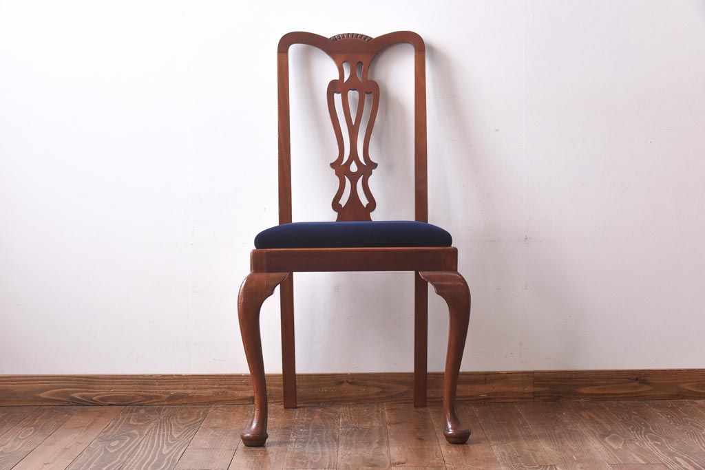 イギリスアンティーク ウォールナット材 透かし彫りが上品なチェア(椅子、ダイニングチェア、ワークチェア)です。