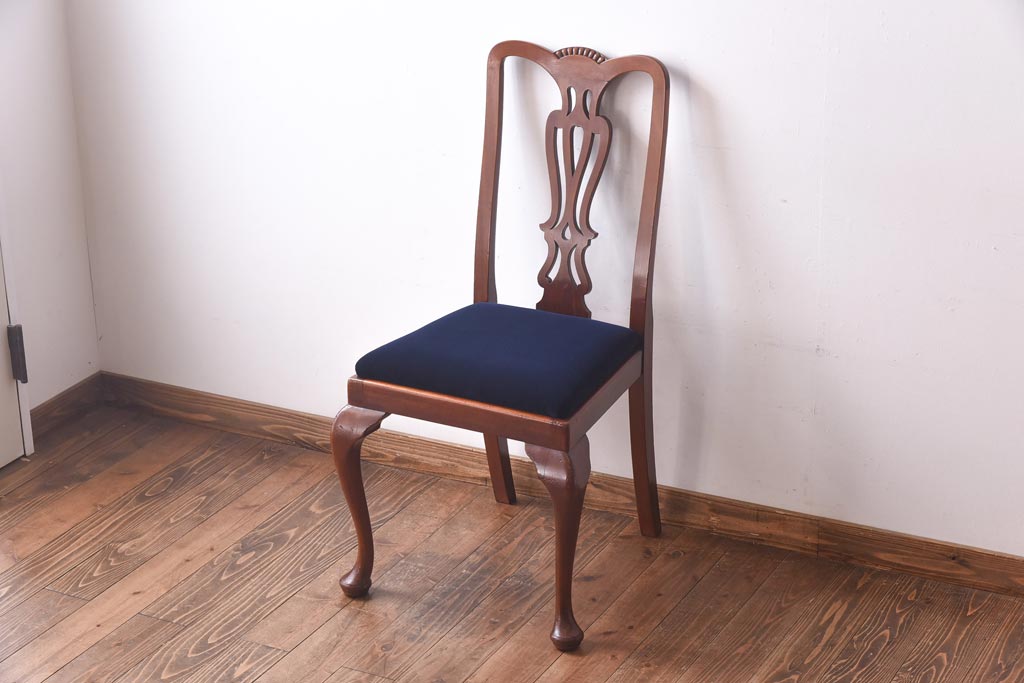 アンティーク家具 イギリスアンティーク ウォールナット材 透かし彫りが上品なチェア(椅子、ダイニングチェア、ワークチェア)