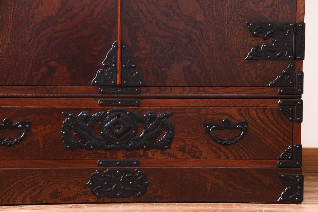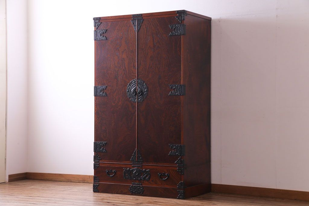 中古 伝統民芸家具 岩谷堂箪笥 存在感を放つ上質なワードローブ(洋服タンス、洋服箪笥)